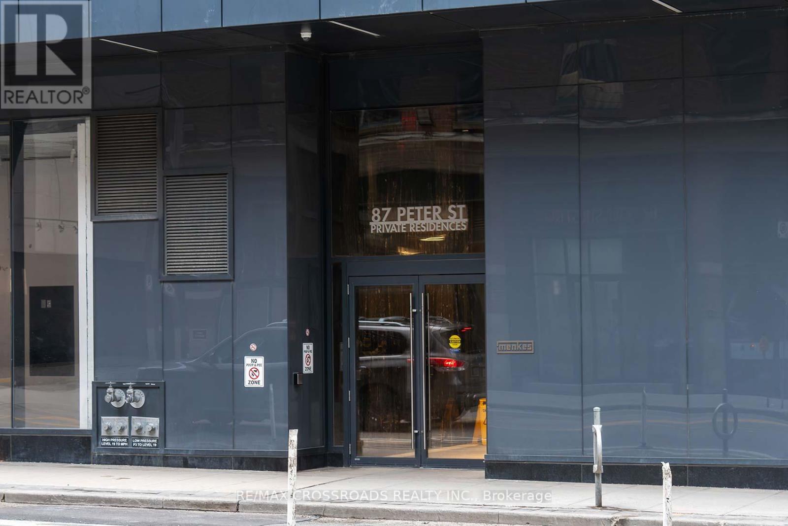 100 Walk score and a 96 bike score! Welcome to 87 Peter Street-an iconic Menkes residence completed in 2018, set in the centre of Toronto's Financial and Entertainment Districts!! This bright and functional 1-bedroom, 1 bathroom suite features a smart open-concept layout, 9' ceilings, floor-to-ceiling windows, and southeast exposure delivering breathtaking city views! Enjoy a large private balcony and low maintenance fees, making this an efficient and comfortable urban home! World-class amenities include a fully equipped fitness centre, yoga studio, spa, sauna, steam room, hot tub, billiards room, movie/media rooms, and 24-hour concierge. Unbeatable location just steps to the CN Tower, Rogers Centre, TIFF, theatres, TTC, subway, shopping, grocery stores, top restaurants and nightlife-with the waterfront minutes away! An ideal opportunity for end-users or investors alike. Location. Lifestyle. Value. Don't miss this exceptional downtown offering! SEE ADDITIONAL REMARKS TO DATA FORM (id:64974)