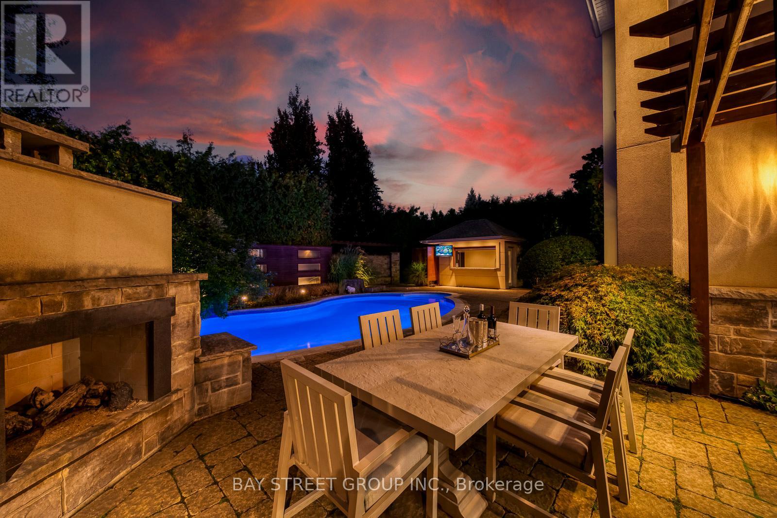 Welcome to this stunning custom-built residence in prestigious Morrison, offering over 5,000 sq. feet of finished living space plus an award winning rear yard oasis and heated double-car garage with pet access to a private enclosed outdoor area. Recently upgraded with fresh paint, brand-new engineered hardwood flooring on the main and second levels, a new Quartz kitchen island, and stylish modern pendants in the foyer and dining room, this home blends timeless elegance with modern convenience. A grand mahogany double door opens to a soaring two-storey foyer with polished marble floors. The formal dining room is enhanced with a tray ceiling and new pendant, while the great room showcases a dramatic two-storey coffered ceiling, gas fireplace, and abundant natural light. Adjacent to it, the spacious home office offers brightness, natural light, and tranquil views of the beautifully landscaped front yard, creating an inspiring space with direct access to the great room. The gourmet kitchen features custom cabinetry, high-end stainless steel appliances, the new Quartz island centerpiece, and a walk-in pantry. Upstairs, the master retreat includes a gas fireplace, walk-in closet, and spa-inspired ensuite with infinity soaker tub. Three additional bedrooms with walk-in closets, two more baths, and a convenient laundry room complete the upper level. The fully finished lower level is designed for entertaining, with a theatre featuring new laminate flooring, a projection screen with surround sound, an exercise room with closet which can be easily changed to a guest bedroom. A dual steam shower in lower bathroom, a wet bar with a granite countertop, and a temperature-controlled wine cellar. Step outside to your private resort-style backyard, featuring a heated salt-water pool with waterfall, cabana with bar and TV mount, built-in gas BBQ oven & fireplace, and professional landscaping. Perfect for entertaining or quiet family enjoyment, this home defines luxury living. (id:64974)