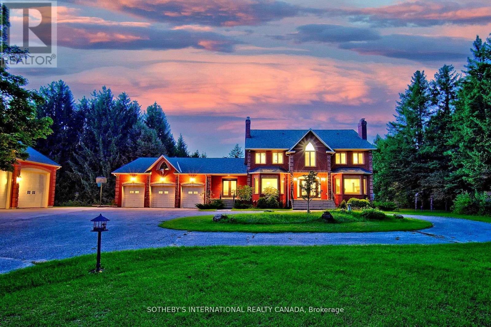 Discovering an extraordinary 10-acre private oasis with luxurious contemporary living at its finest. Enchanted forest surrounds massive table land, providing breathtaking greenery views and ideal setting for outdoor entertaining and large gatherings. Both the primary and secondary buildings are beautifully situated with lush landscapes. With easy access to Uxbridge equestrians, golf courses, ski resorts, fine dinings, optional groceries and shoppings, and fine schools. It also enjoys Markham and Toronto offerings within a 30-min drive. An immensely deep driveway sets seclusion apart from public roads. The tree lined lane and a circular landing gracefully leads an impressive arrival experience. Extensive renovations in 2017 and 2021. (Building #1) Main residence boasts appx 6,500 sf of total living incl 4,400 sf above grade. Main 9 foot ceilings. Popular ground level bedroom with full bath. Plus lower In-law suite. Enormous library/ofce. Fully updated Kitchen, Baths & Laundry. Lavish stone counters, slab surfacing & hardwood floorings. Premium millwork & cabinetry system. A complete set of upscale appliances. Splendid lighting fixtures & chandeliers. Newer Roof. Plenty of newer windows. Main attached garage park appx 6 cars. (Building #2) Detached standing alone additional garage/ workshop building. Appx 2000 sf interior & high appx 15 ft ceilings. An enclosed room, separate furnace, AC, ventilation, moisture barriers, coated flooring, newer roof & drywall, 6 large windows 3 bay doors, 270 AMP/240V e-panels. Ideal for car collectors, workshop pros & man cave champions. The enormous workshop opens to the magnificent outdoor spaces for a wealth of versatile and user friendly possibilities. Private walking trails end with charming gazebo and enlarged decks, inviting relaxing suburb retreats and gorgeous sunset views. For those seeking a perfect blend of tranquility, luxury, and amenity conveniences, this serene sanctuary cultivates endless mindfulness and family growth. (id:64974)