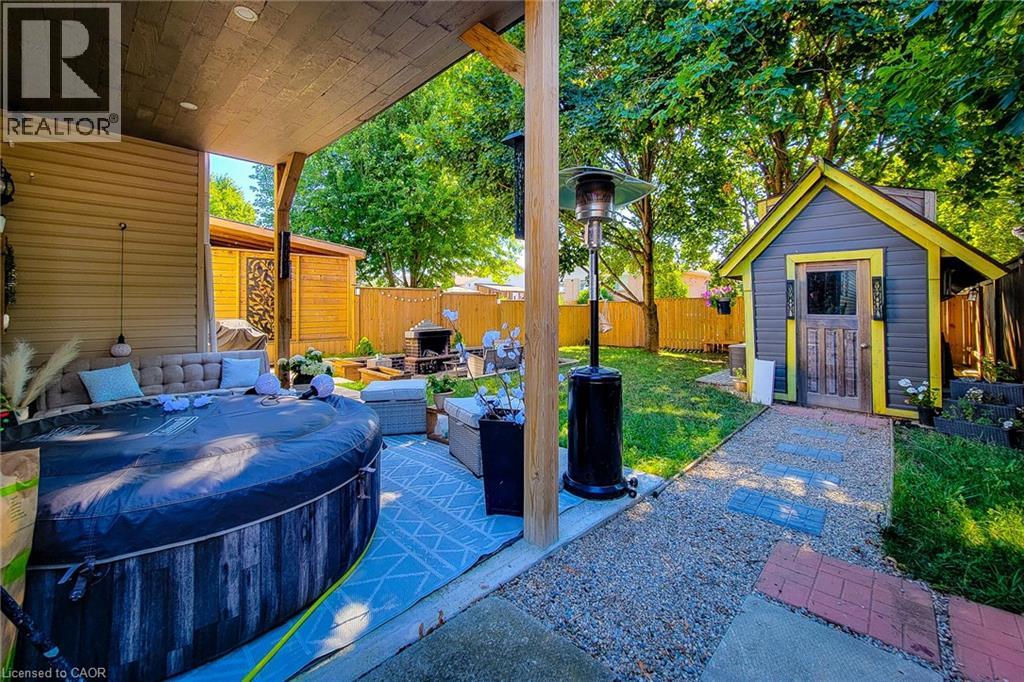 Spacious and well-maintained 2-storey semi-detached home offering just over 2,000 sq ft of finished living space in a family-friendly neighbourhood. The main floor features a bright and open Great Room, a separate dining area, and an eat-in kitchen equipped with stainless steel appliances, tiled backsplash, island, and walk-out to the backyard. Convenient main floor laundry. Upstairs, the primary bedroom offers dual closets, along with two additional bedrooms and a 4pc main bathroom. The finished basement adds valuable living space with a large rec room, additional bedroom, 3pc bathroom, and a versatile den/office that could be used as a fifth bedroom. Enjoy the fully fenced backyard with a spacious deck, patio area with fire pit, and a large shed for added storage. Walking distance to the park and just minutes from schools, shopping, restaurants, and easy highway access. Ideal for growing families or multigenerational living! (id:64974)