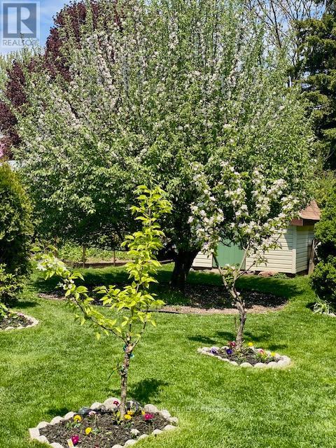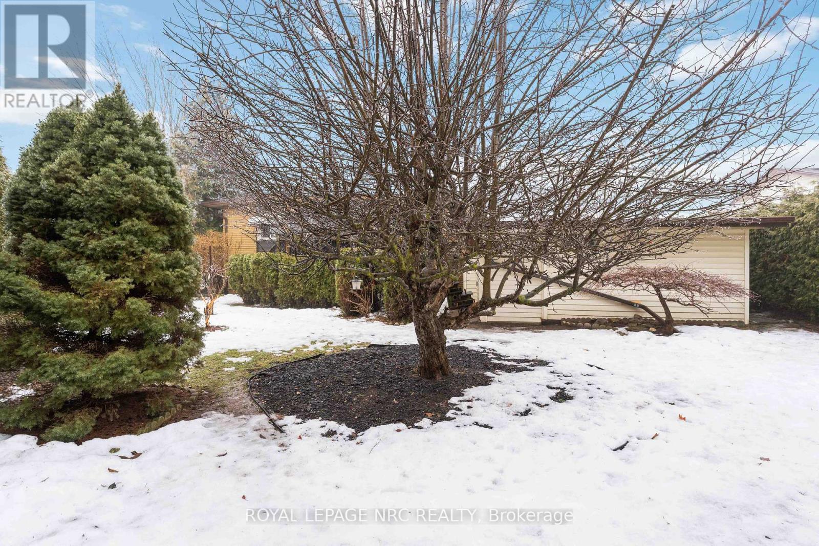 Bright, spacious, and meticulously maintained home on a large, irregular corner lot in a quiet, mature neighbourhood, just a short walk to Cherrywood Acres Public School. Enjoy a private, tree lined backyard with a lovely apple tree. High ceilings and large windows fill the home with natural light. The living room features a beautiful fireplace feature wall and flows nicely from the kitchen, making it perfect for everyday living and entertaining. The kitchen combines classic oak cabinetry with modern updates including quartz countertops and stainless steel appliances. A split bedroom wing, set a few steps up, adds privacy from the main living area. Flexible layout with 3 bedrooms on the main level, while the lower level can easily serve as 2 extra bedrooms or a large family room plus an additional bedroom or multi purpose room, depending on your needs. Additional highlights include an attached garage with a rear workshop area. Roof (2013), windows and doors (2011), furnace (2019), A/C (2019), and brand new luxury vinyl flooring throughout. A fantastic opportunity in a family friendly neighbourhood. (id:64974)