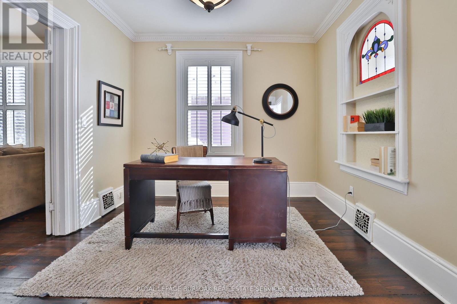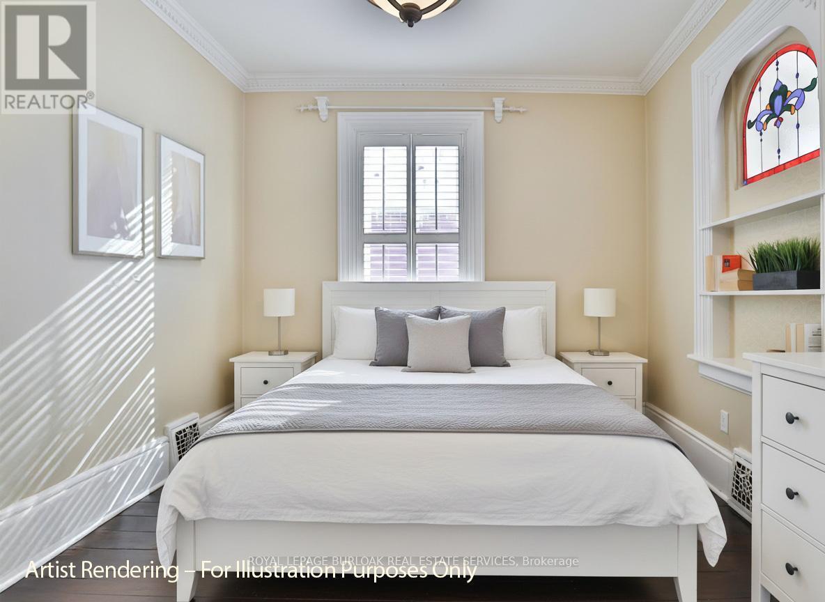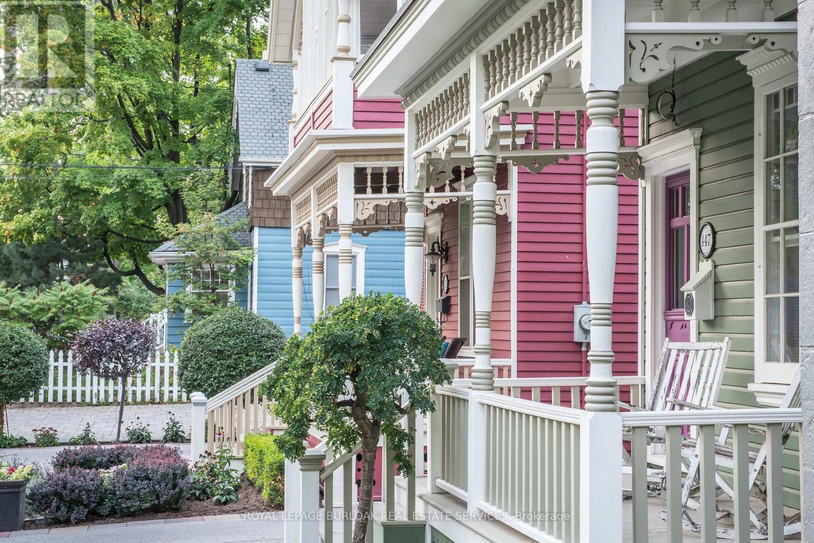 Welcome to a truly historic 1890 character home, set on one of downtown Burlington's most admired streets. Part of an iconic group of 4 cottages inspired by the famed "Painted Ladies," this residence offers a rare opportunity to own a piece of history, protected from future redevelopment, yet flexible for modern living. Directly across from Brock Park, and steps to the lake, downtown shops, cafés, and cultural attractions, the lifestyle is unmatched. Spend mornings and evenings in the enclosed front porch, perfect for people-watching and soaking in the neighbourhood. Inside, timeless style meets thoughtful upgrades. Original baseboards and mouldings, antique pine floors, and 9ft ceilings create warmth and authenticity, while modern comforts include central air, updated 100-amp electrical service, and a beautiful custom kitchen w/ heated ceramic floors, new cabinetry, SS appliances, and a seating area overlooking the side yard. The living room features a gas fireplace, and flows into a highly functional flex space - ideal as a home office today, and easily converted to a dining room or guest Bedroom depending on your lifestyle. A mud room w/ stylish glass block accents adds even more appeal. Upstairs, the primary bedroom is a retreat w/ a fireplace, alongside a luxurious bathroom showcasing Victorian-style fixtures, heated floors w/ custom inlays, plus an additional bedroom perfect for family or guests. Out back, enjoy a private, landscaped outdoor oasis with a large deck, BBQ gas line, spacious partially fenced yard, and custom shed-delivering a cottage-like feel just steps from the lake. The location shines year-round: daily walks along the waterfront, winter skating nearby, and festivals right down the street, complete with two prime parking spots for hosting. A rare blend of heritage, lifestyle, and modern comfort-ideal for growing families, professionals working from home, or anyone drawn to distinctive character living in the heart of downtown Burlington. (id:64974)