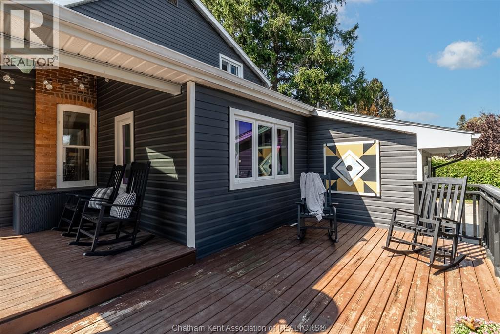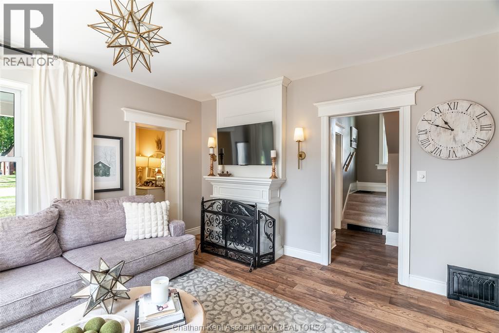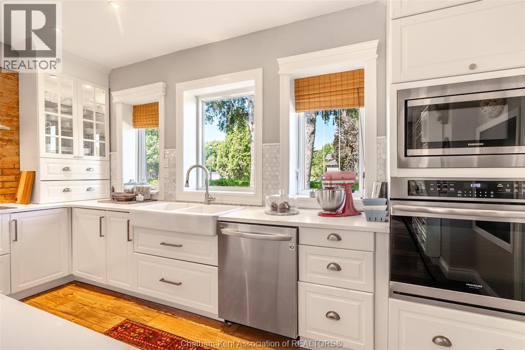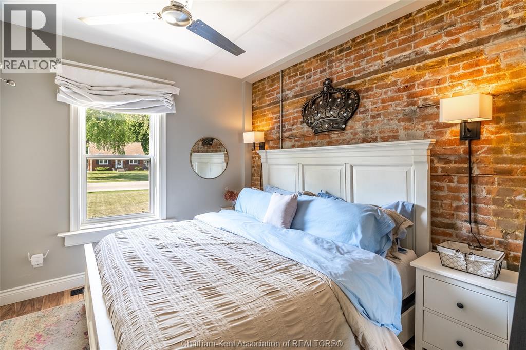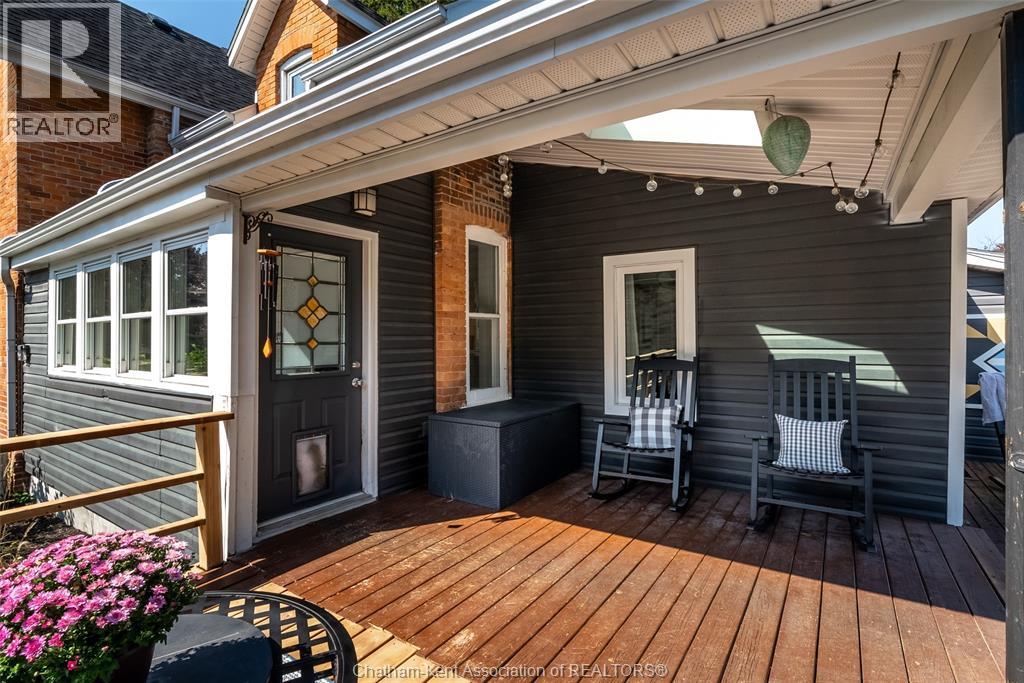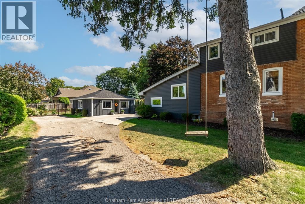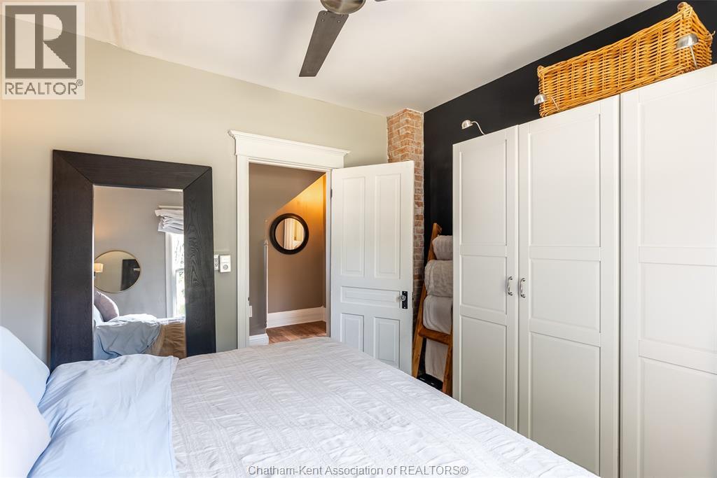Showcasing timeless Victorian charm with thoughtful modern updates, this beautifully renovated 4-bedroom, 1.5-bath home is ideally situated on one of Chatham’s most prestigious streets. Set on a generous corner lot with a tree-lined driveway, the property offers exceptional curb appeal and a warm, welcoming presence. At the heart of the home, the kitchen serves as the central gathering space, featuring quartz countertops, a tiled backsplash, an oversized island, coffee bar, and glass-front cabinetry—perfectly balancing style and functionality. Surrounding this inviting space, the main floor offers a cozy family room, a versatile bedroom, a charming office/library, a convenient 2-piece bath with room to expand to a full bath, and a bright laundry area that opens to a welcoming deck with both sun and shade, while the back entrance provides seamless access to a functional basement mudroom below or the main living space above. Exposed brick throughout the home adds warmth, texture, and timeless character, highlighting its Victorian heritage while complementing the modern updates. Upstairs, three spacious bedrooms are complemented by a luxurious spa-inspired 5-piece bath with a soaker tub and separate shower. The basement offers abundant storage along with practical space for hobbies or tools. Natural light fills the home and extends outdoors to a fenced yard, garden shed, and covered front porch. The converted garage provides a flexible space ideal for additional living, a home office, home gym, or studio, and can easily be restored to a double-car garage. With its perfect blend of character, updates, and versatile living options, this Victorian gem truly has it all. (id:64974)