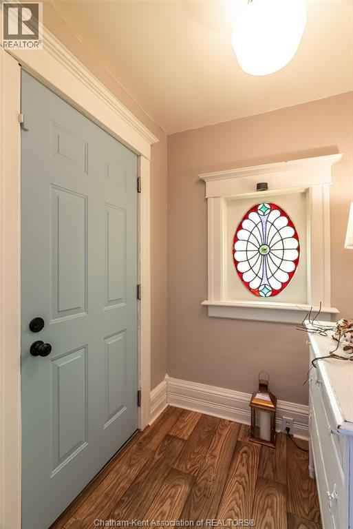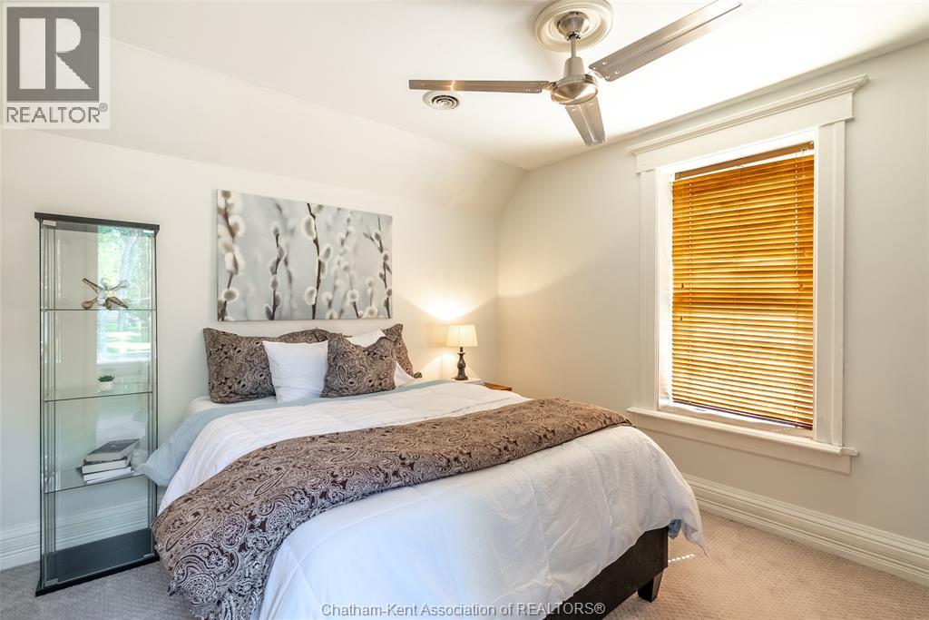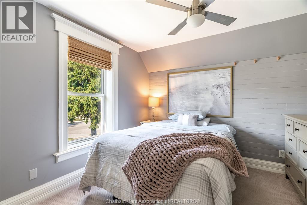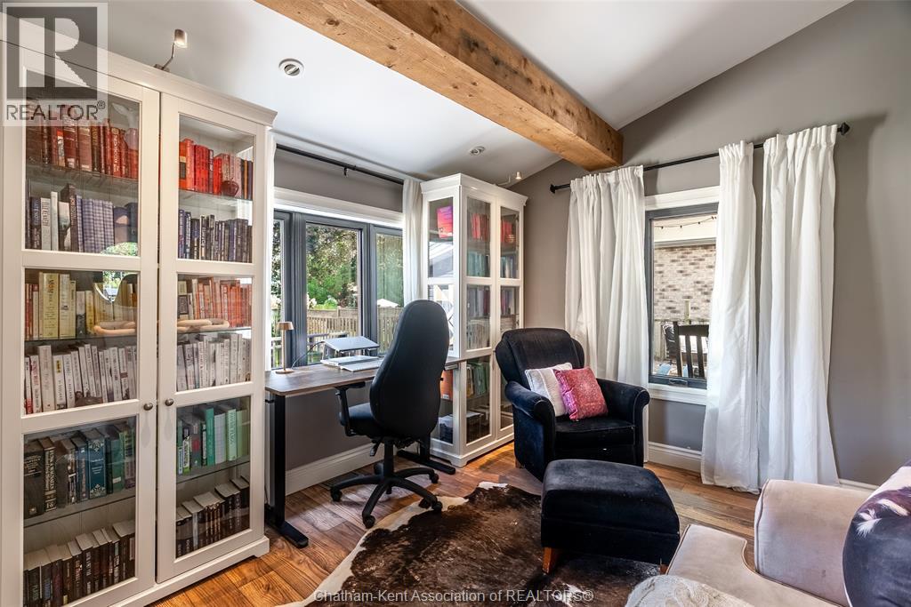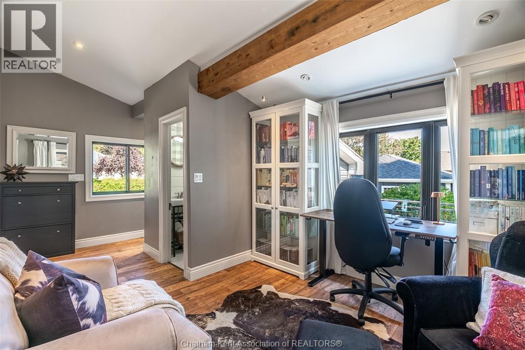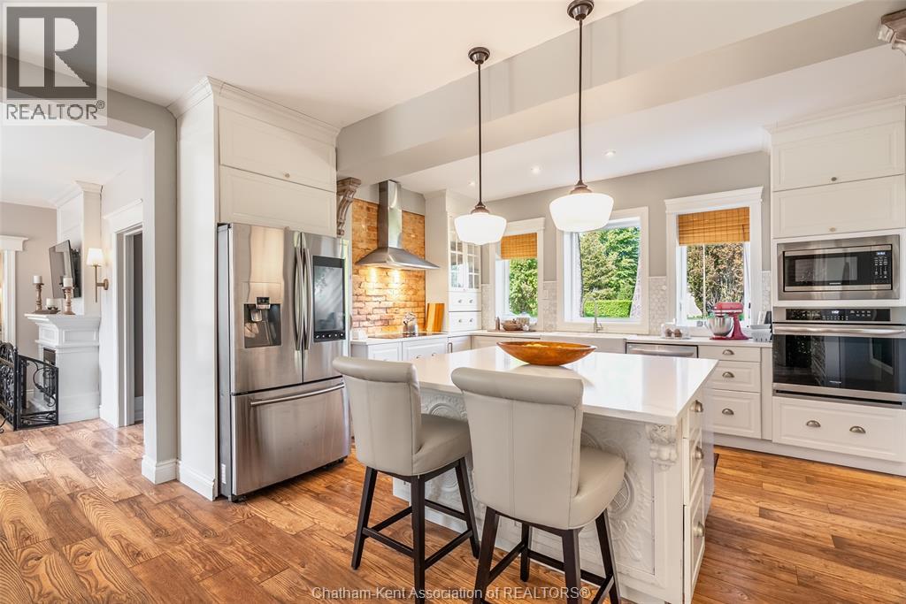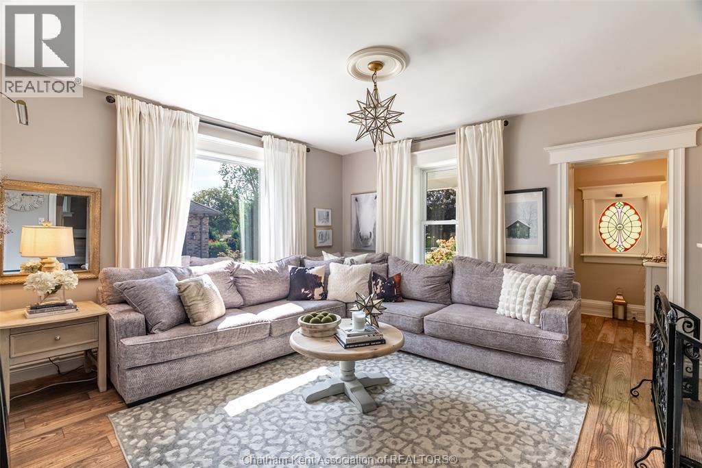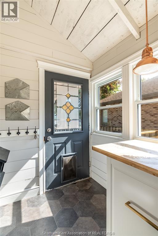 Showcasing timeless Victorian charm with thoughtful modern updates, this beautifully renovated 4-bedroom, 1.5-bath home is ideally situated on one of Chatham’s most prestigious streets. Set on a generous corner lot with a tree-lined driveway, the property offers exceptional curb appeal and a warm, welcoming presence. At the heart of the home, the kitchen serves as the central gathering space, featuring quartz countertops, a tiled backsplash, an oversized island, coffee bar, and glass-front cabinetry—perfectly balancing style and functionality. Surrounding this inviting space, the main floor offers a cozy family room, a versatile bedroom, a charming office/library, a convenient 2-piece bath with room to expand to a full bath, and a bright laundry area that opens to a welcoming deck with both sun and shade, while the back entrance provides seamless access to a functional basement mudroom below or the main living space above. Exposed brick throughout the home adds warmth, texture, and timeless character, highlighting its Victorian heritage while complementing the modern updates. Upstairs, three spacious bedrooms are complemented by a luxurious spa-inspired 5-piece bath with a soaker tub and separate shower. The basement offers abundant storage along with practical space for hobbies or tools. Natural light fills the home and extends outdoors to a fenced yard, garden shed, and covered front porch. The converted garage provides a flexible space ideal for additional living, a home office, home gym, or studio, and can easily be restored to a double-car garage. With its perfect blend of character, updates, and versatile living options, this Victorian gem truly has it all. (id:64974)