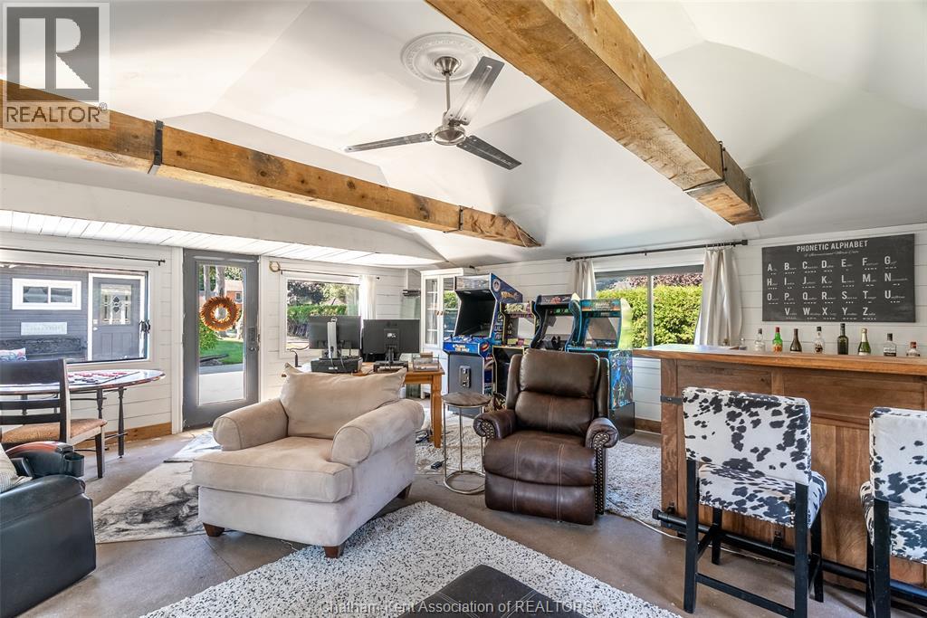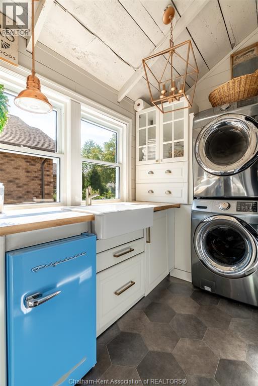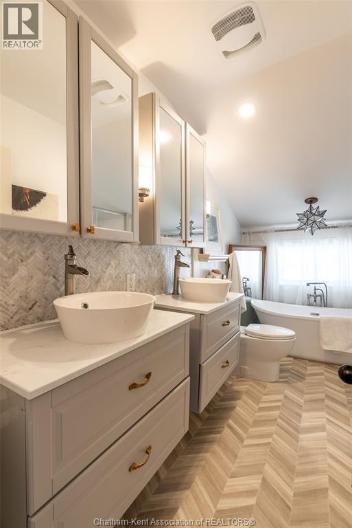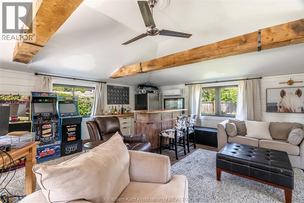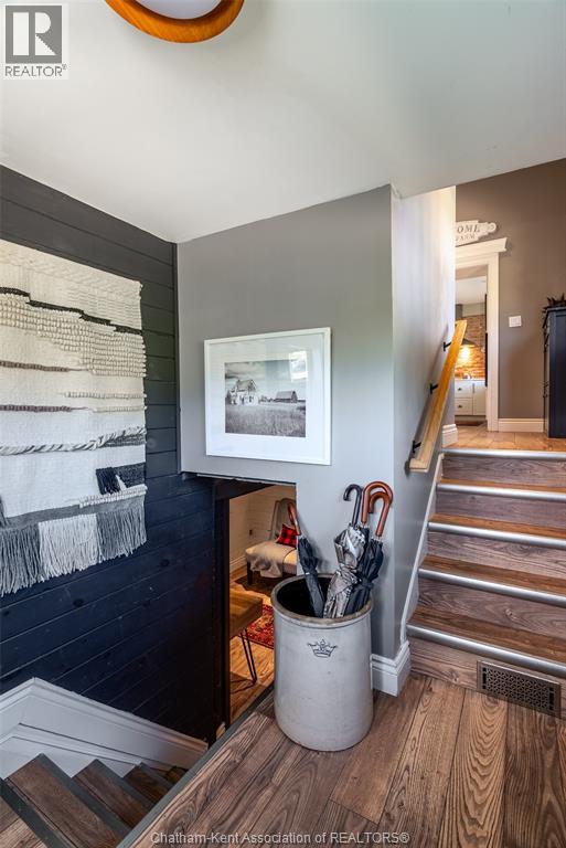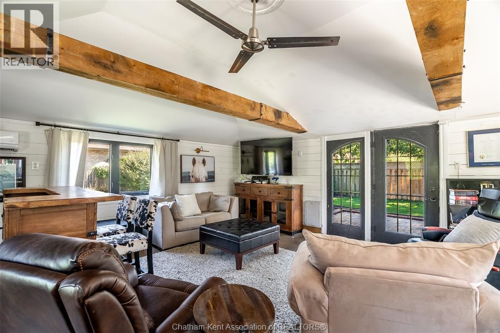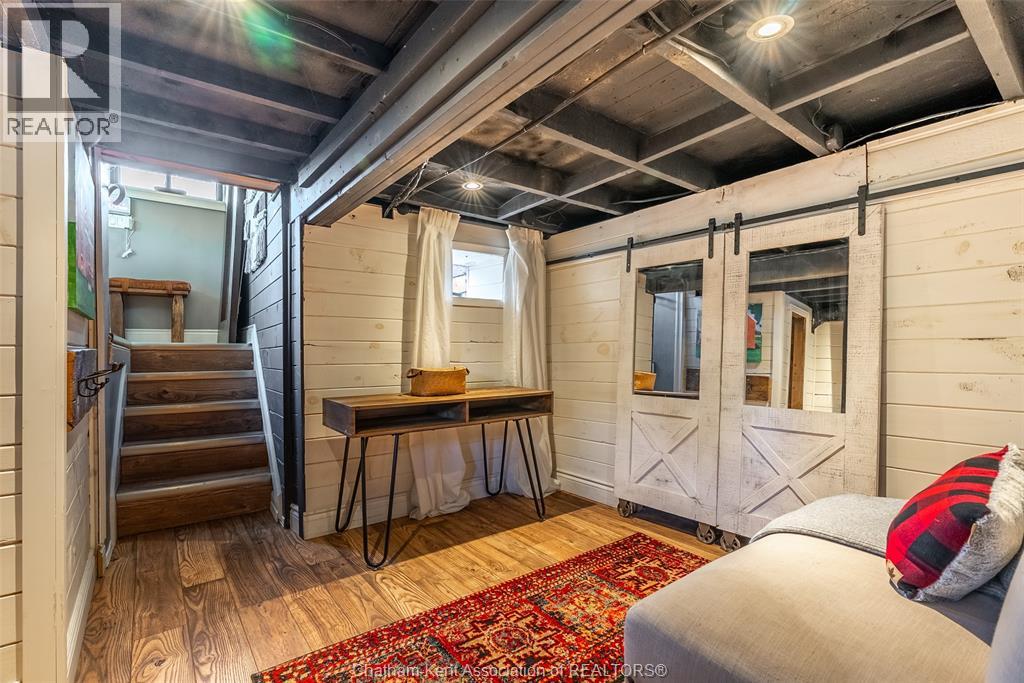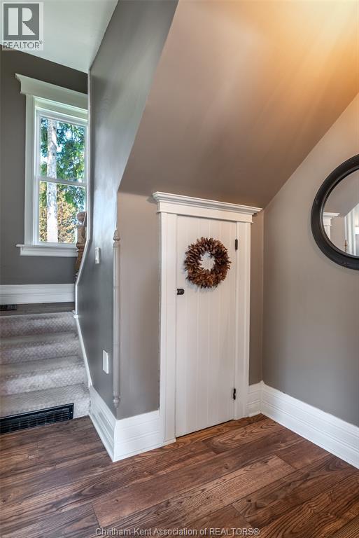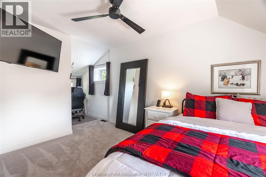 Showcasing timeless Victorian charm with thoughtful modern updates, this beautifully renovated 4-bedroom, 1.5-bath home is ideally situated on one of Chatham’s most prestigious streets. Set on a generous corner lot with a tree-lined driveway, the property offers exceptional curb appeal and a warm, welcoming presence. At the heart of the home, the kitchen serves as the central gathering space, featuring quartz countertops, a tiled backsplash, an oversized island, coffee bar, and glass-front cabinetry—perfectly balancing style and functionality. Surrounding this inviting space, the main floor offers a cozy family room, a versatile bedroom, a charming office/library, a convenient 2-piece bath with room to expand to a full bath, and a bright laundry area that opens to a welcoming deck with both sun and shade, while the back entrance provides seamless access to a functional basement mudroom below or the main living space above. Exposed brick throughout the home adds warmth, texture, and timeless character, highlighting its Victorian heritage while complementing the modern updates. Upstairs, three spacious bedrooms are complemented by a luxurious spa-inspired 5-piece bath with a soaker tub and separate shower. The basement offers abundant storage along with practical space for hobbies or tools. Natural light fills the home and extends outdoors to a fenced yard, garden shed, and covered front porch. The converted garage provides a flexible space ideal for additional living, a home office, home gym, or studio, and can easily be restored to a double-car garage. With its perfect blend of character, updates, and versatile living options, this Victorian gem truly has it all. (id:64974)