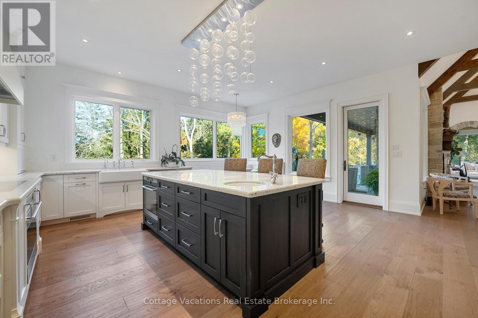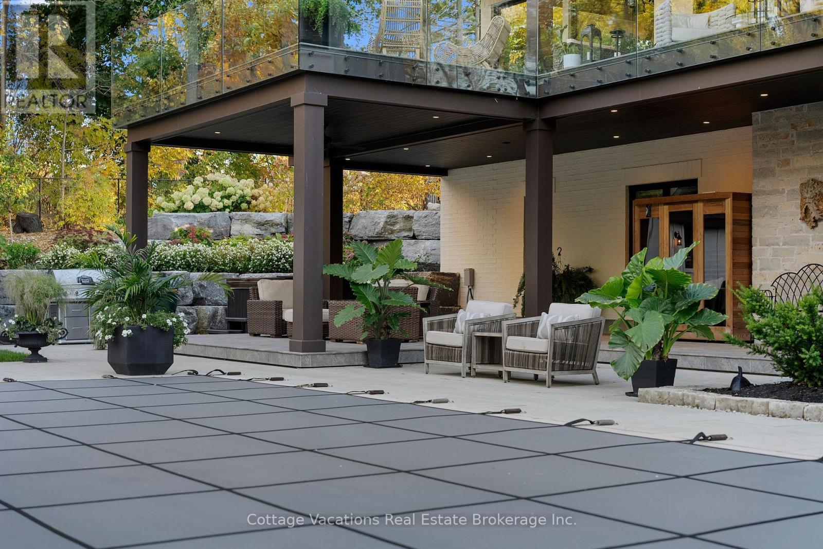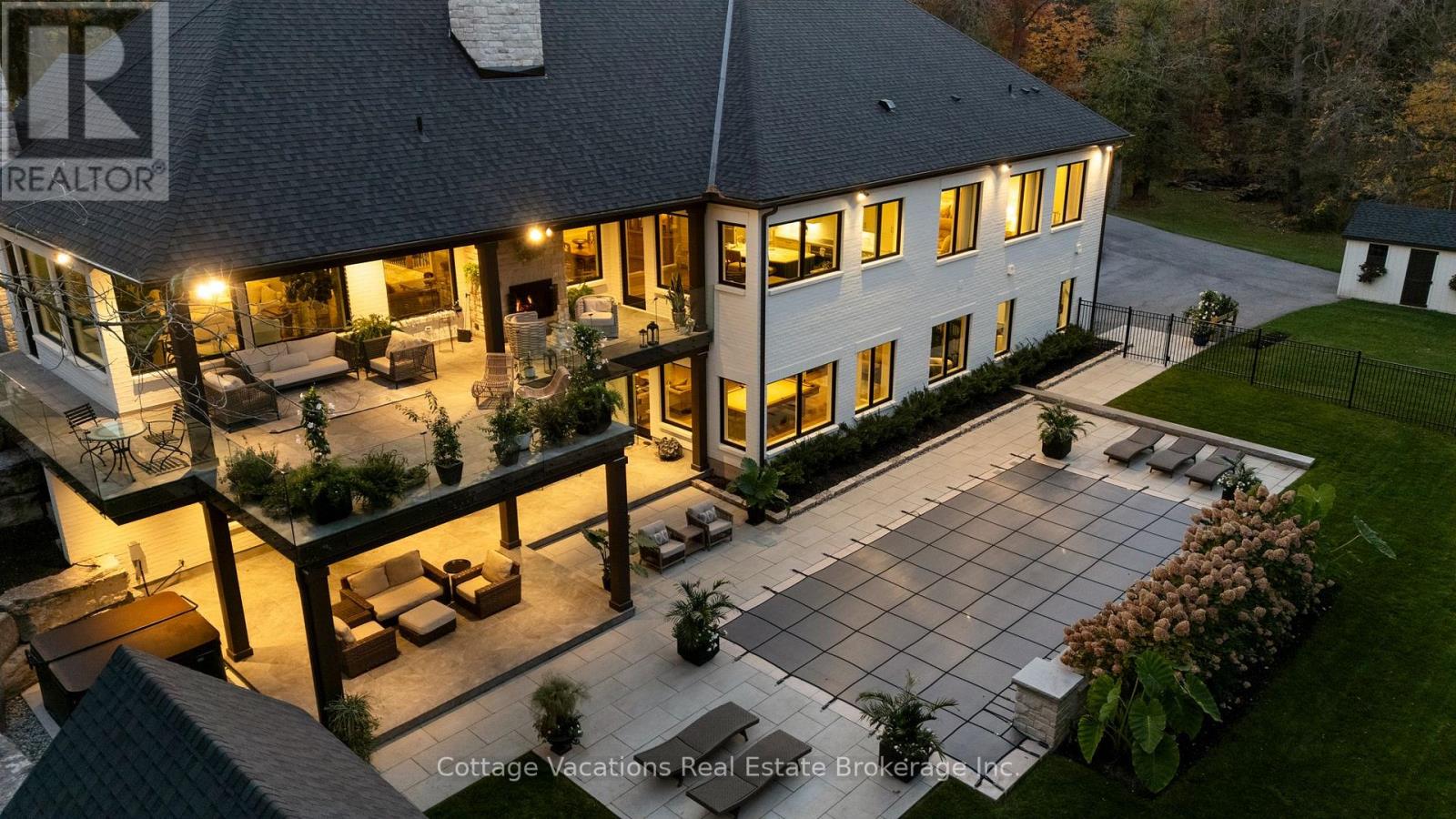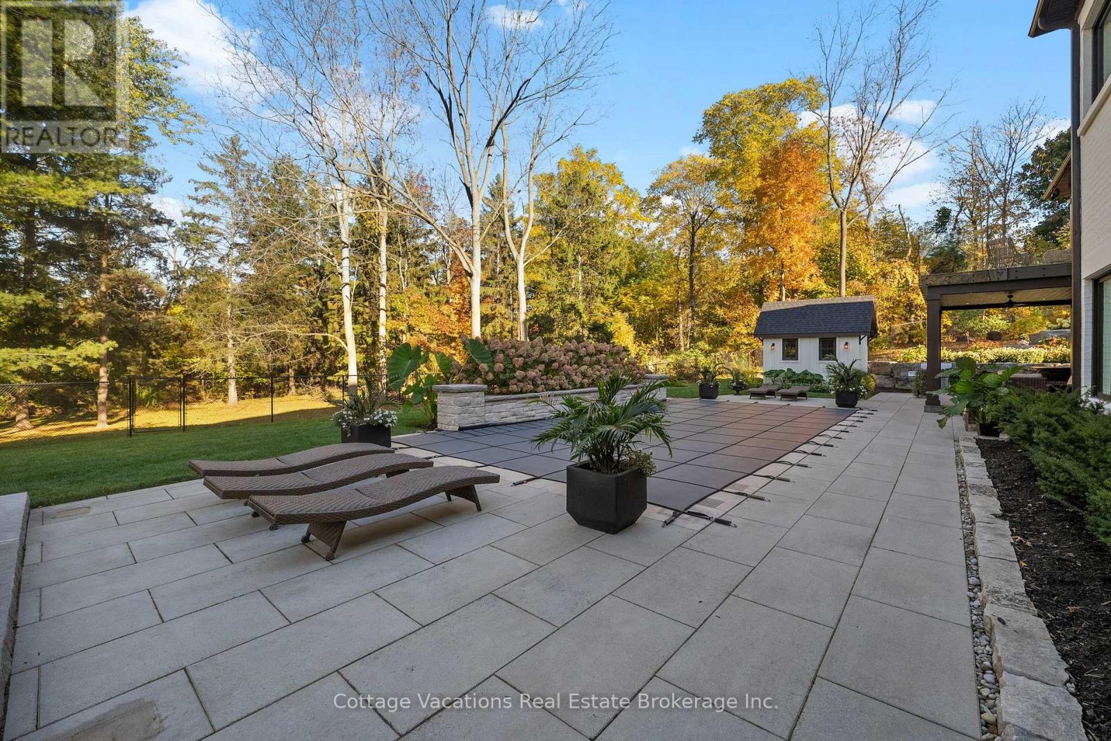 Experience Refined Living In This Exquisite Estate Nestled In The Heart Of Historic Niagara On-The-Lake. Set On Nearly Three Acres Of Lush, Wooded Grounds, This Custom-Built Home Embraces A Modern French Country Aesthetic And Offers Unparalleled Privacy Just Moments From The Lake. Stroll To Nearby Boutiques, Acclaimed Restaurants, Theatres, And Golf Courses, And Enjoy The Vibrant Lifestyle That Makes This Community So Sought-After. Step Through An Impressive Stone Entryway Into A Grand Foyer Illuminated By Sparkling Crystal Chandeliers, Immediately Setting A Tone Of Sophistication. The Formal Living Room Invites Cozy Gatherings Around A Beautiful Cast Stone Gas Fireplace, While The Expansive Great Room Captivates With Vaulted Ceilings, Exposed Beams, And Abundant Natural Light Streaming Through Oversized Windows. A Charming Sunroom Offers A Peaceful Sanctuary For Morning Coffee, And The Upper Deck Complete With A Gas Fireplace Creates A Perfect Backdrop For Intimate Evenings Under The Stars. The Gourmet Kitchen Is Designed To Inspire Culinary Creativity, Featuring Granite Countertops, Premium Appliances Including A Sub-Zero Refrigerator And Wolf Induction Cooktop, And A Generous Walk-In Pantry. The Main-Level Primary Suite Provides A Serene Retreat With Spacious Walk-In Closets And A Spa-Inspired Ensuite Adorned With Luxurious Finishes. The Lower Level Reveals An Entertainers Paradise With A Family Lounge, Direct Access To A Pool Deck, Sauna, Hot Tub, And A Temperature-Controlled Wine Cellar. Four Additional Ensuite Bedrooms Ensure Comfort And Privacy For Family And Guests Alike. Impeccably Landscaped Gardens Surround The Estate, Offering A Stunning Outdoor Setting Ideal For Entertaining Or Quiet Relaxation. This Extraordinary Home Seamlessly Blends Timeless Elegance With Modern Comforts, Making It Truly One Of A Kind In Niagara-On-The-Lake (id:64974)