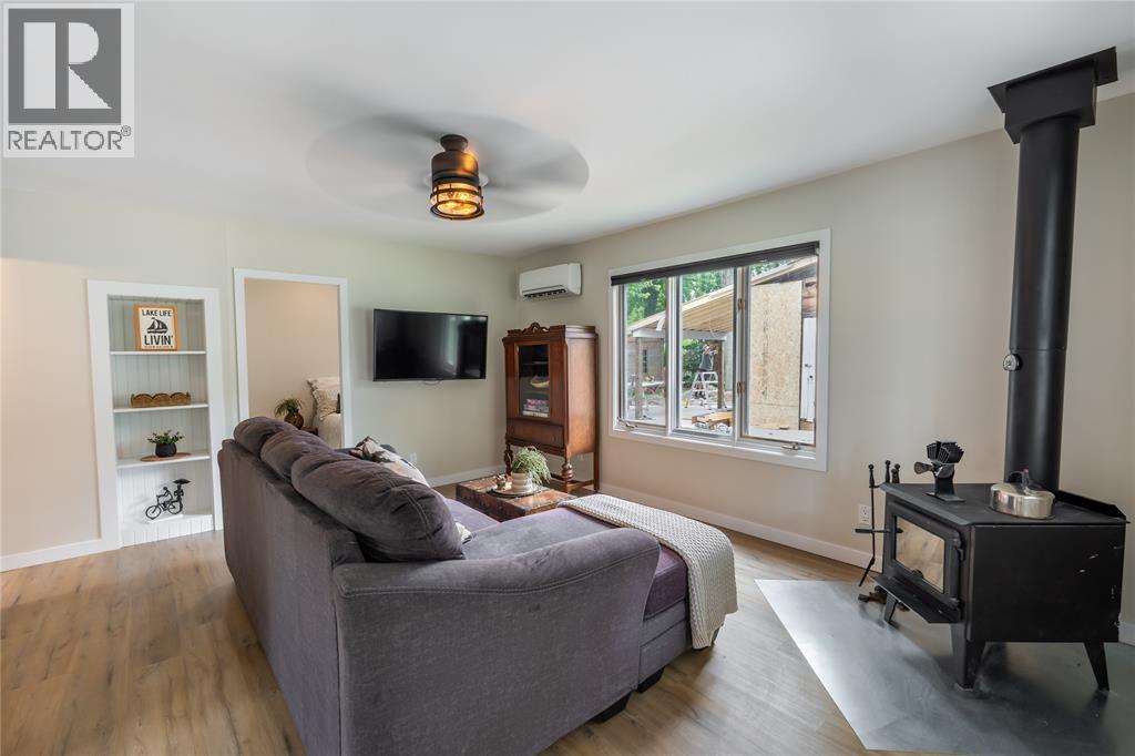 Charming 4-Season Cottage Just Steps from the Beach! This beautifully updated 2 bedroom, 1 bathroom cottage offers the perfect blend of comfort, style, and lakeside charm. Located directly across the road from a stunning sandy beach with public access, this fully furnished, year-round getaway has been thoughtfully renovated throughout. Enjoy a brand new kitchen with all new appliances, plus fresh flooring, trim, and paint that give the space a bright, modern feel. The cozy living area features a wood-burning fireplace—perfect for chilly winter evenings. The enclosed porch is ideal for morning coffee, board games, or relaxing on rainy days. Stay comfortable in any season with efficient ductless A/C and heating units. Outside, a large deck offers room to entertain or unwind, an outdoor shower for sandy toes, while the firepit is perfect for summer nights under the stars. A generously sized shed adds great storage. Just 10 minutes to Forest for shopping and amenities, and only 30 minutes to Grand Bend or Sarnia. A truly move-in ready retreat by the lake—ideal as a year-round home, weekend escape, or income-generating rental! (id:64974)