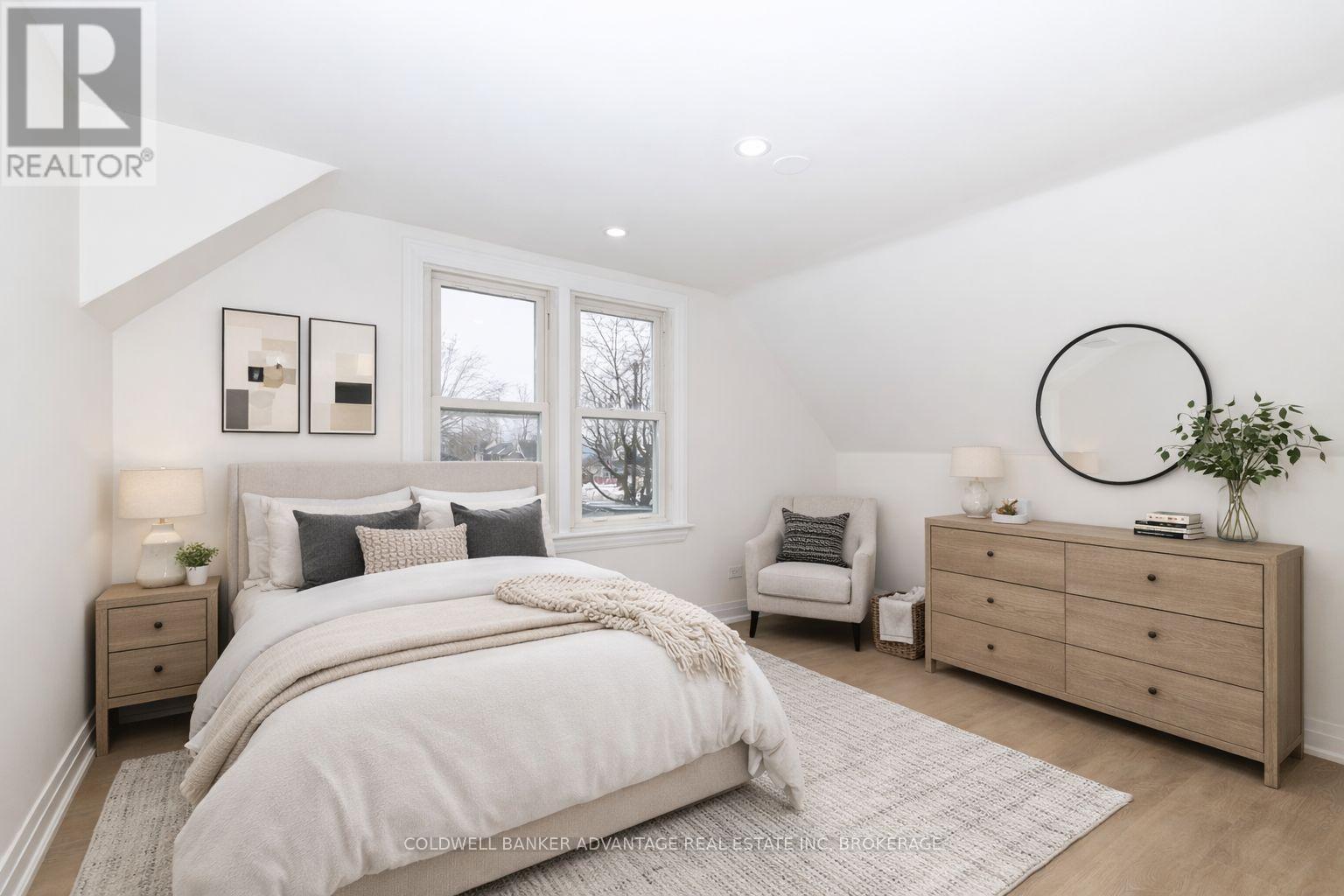 Step inside this fully renovated, top-to-bottom 4-bedroom, 2.5-bath home offering 1440 sq ft above grade on a spacious 62' x 111' lot with a detached garage. The main floor features a bright living room with a beautiful fireplace, an updated kitchen, one bedroom, and a convenient 2-piece bath. The second level offers three bedrooms and a modern 4-piece bathroom. The finished basement provides excellent additional living space with a family room/games room area, laundry, and another updated 4-piece bath. Located close to shopping, groceries, and everyday conveniences, this move-in ready home delivers exceptional value and style. Some photos virtually staged. (id:64974)