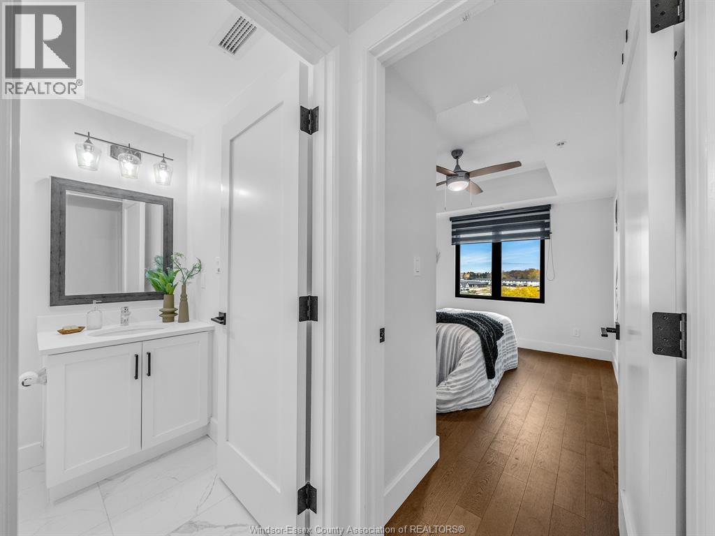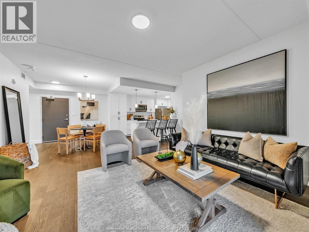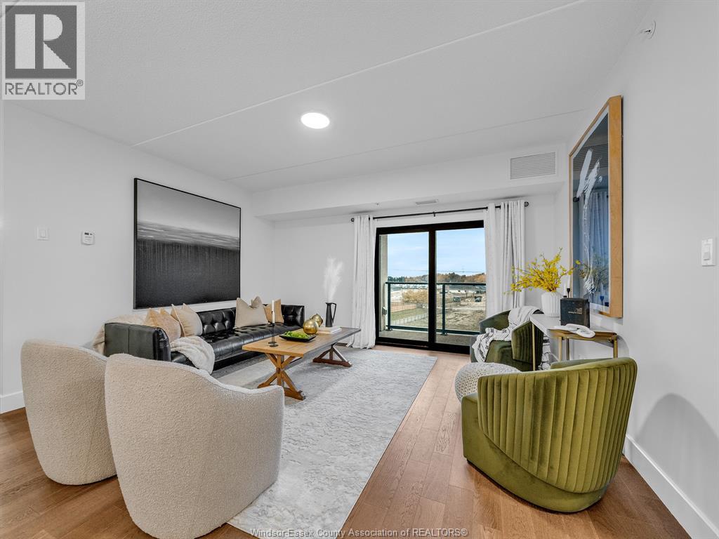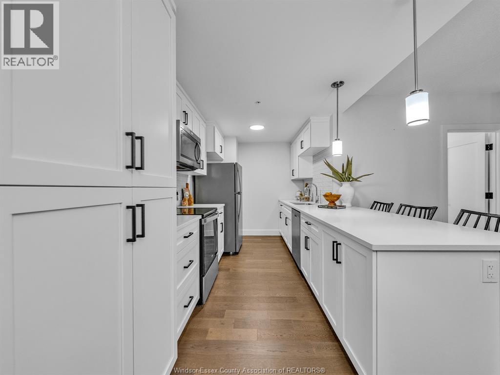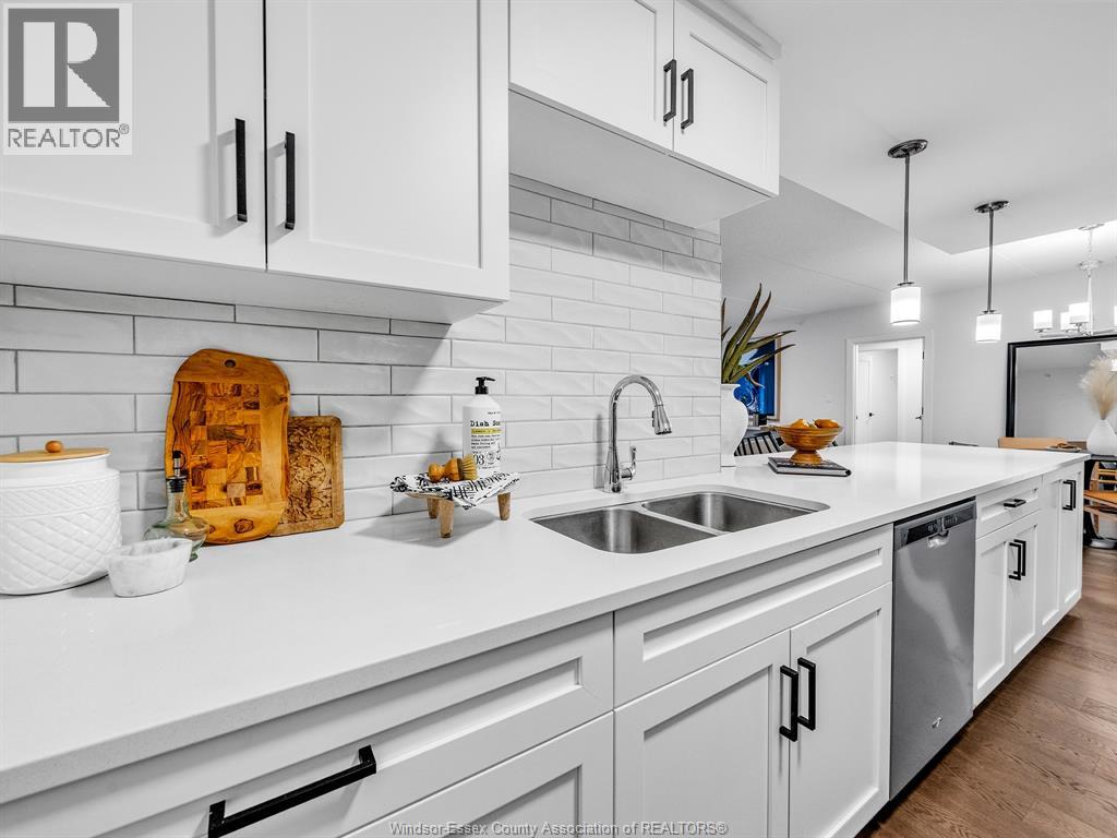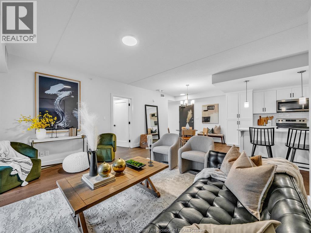 Welcome to Huron Shores where modern design meets convenience and comfort. This stunning 2 bedroom, 2 full bath condo, built in 2020, offers stylish open-concept living with high-end finishes throughout. The bright and airy layout features a spacious kitchen with beautiful cabinetry, stainless steel appliances, and a generous eat-on island, perfect for entertaining or casual dining. The open living and dining area flows seamlessly, ideal for today's modern lifestyle. The primary suite includes a luxurious ensuite bath and a walk-in closet, providing the perfect private retreat. The second bedroom and full bath offer excellent space for guests, family, or a home office. Enjoy the benefits of newer construction, energy efficiency, and stress-free condo living in a desirable community. Conveniently located near shopping, restaurants, walking trails, the 401, University of Windsor, St. Clair College, and the U.S. border crossing, you'll have everything you need just minutes away. Join this lifestyle of easy carefree living at Huron Shores, where comfort and convenience come together beautifully! (id:64974)