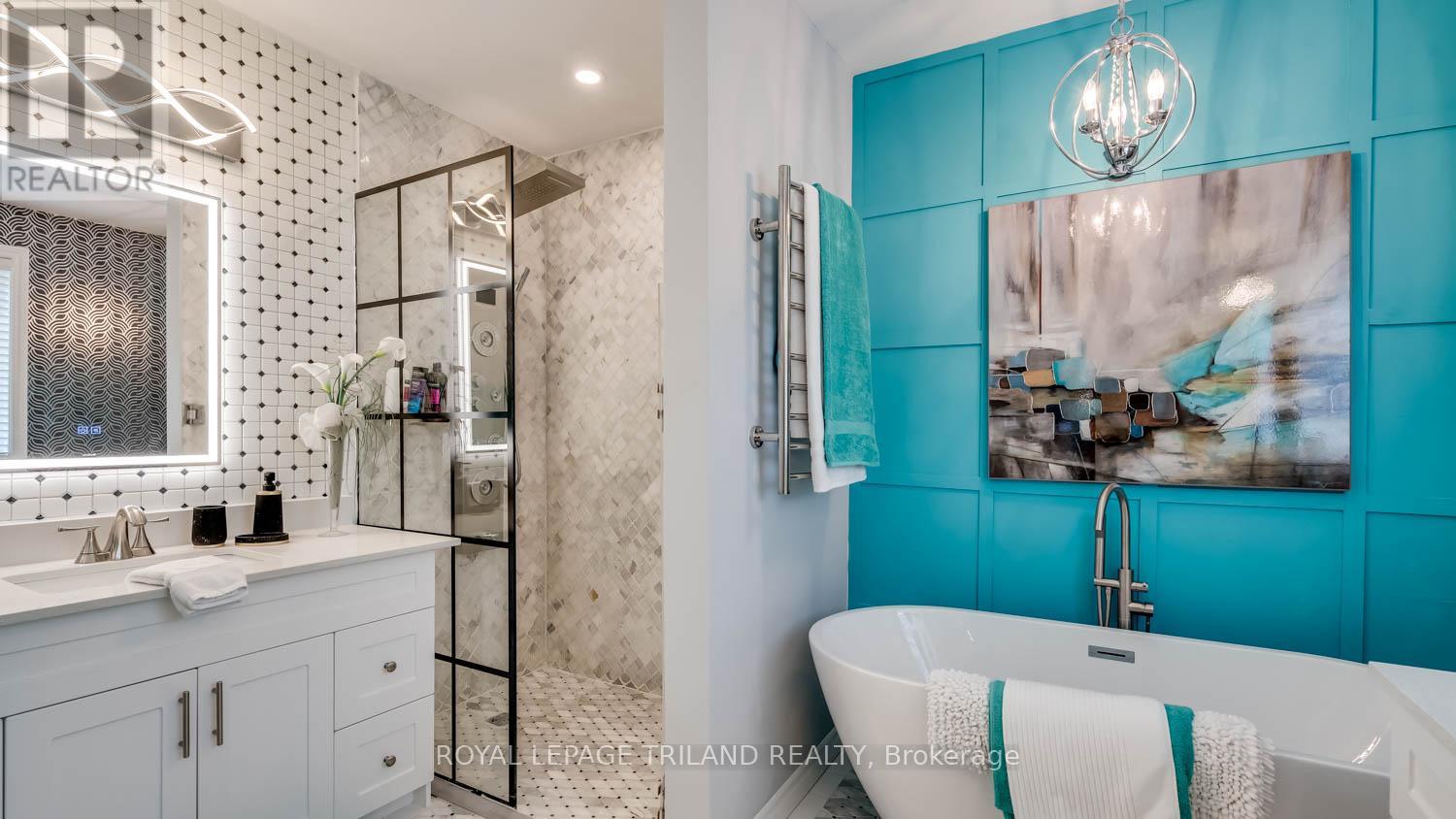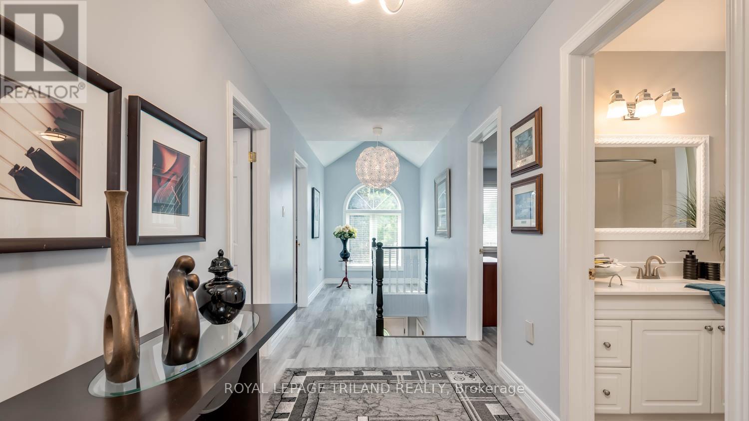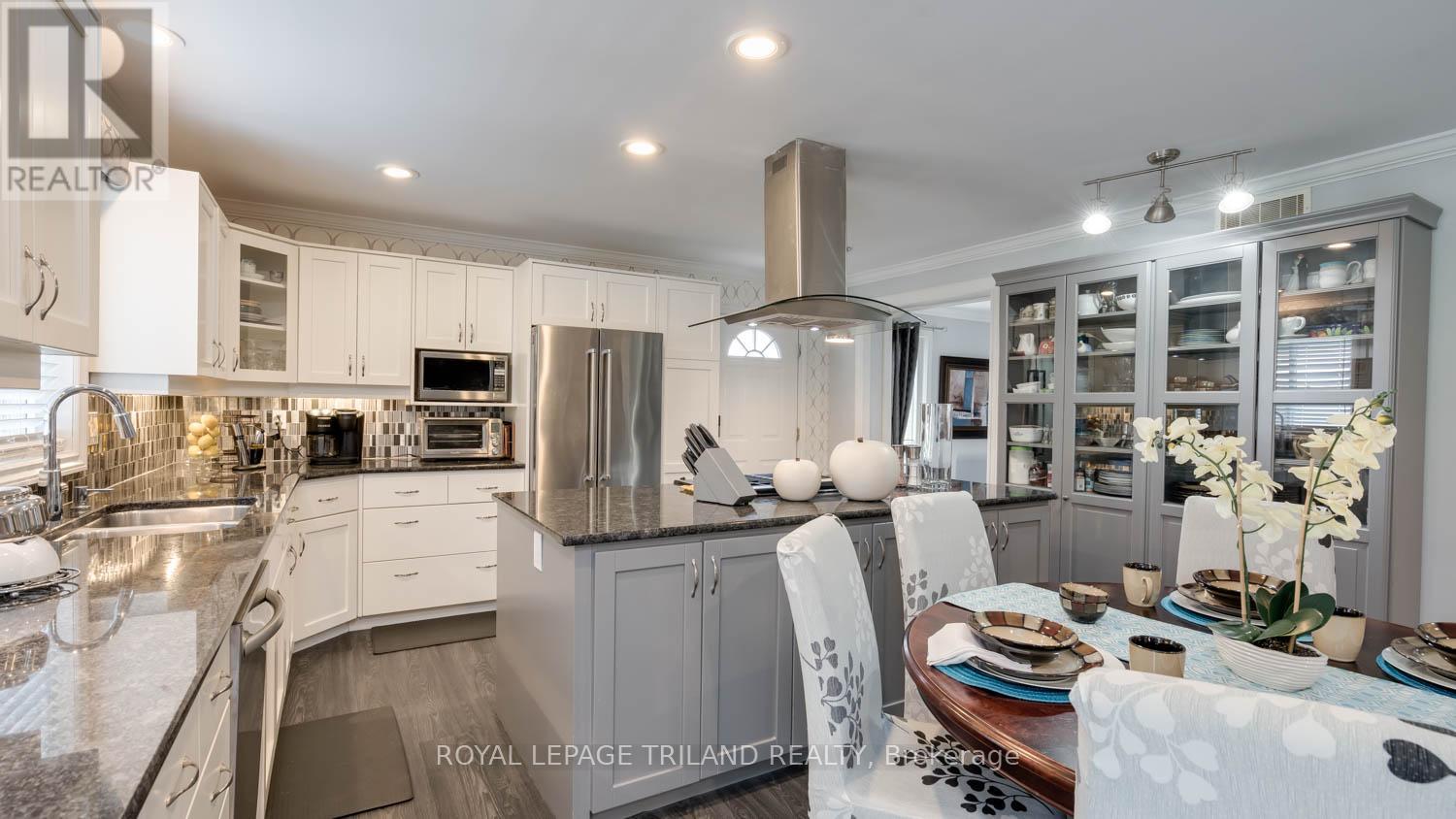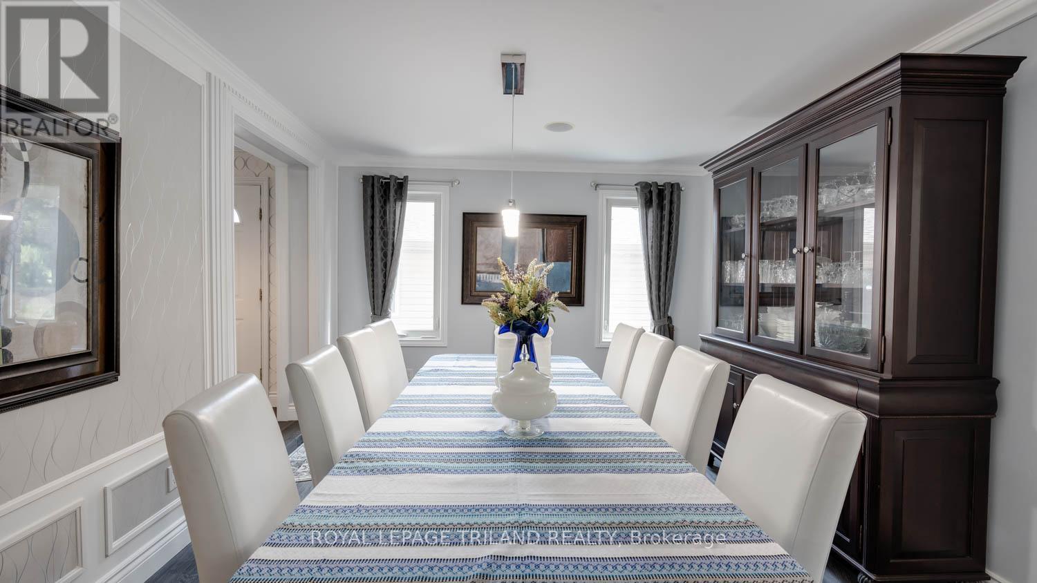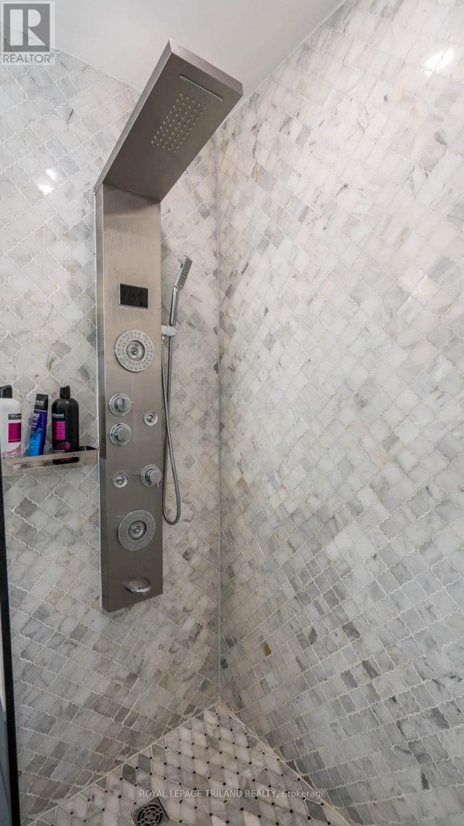 This exceptional property offers a rare combination of space, versatility, and lifestyle-perfect for car enthusiasts, hobbyists, or those seeking room for a home-based business. Situated on an oversized lot within the City of London, opportunities like this are seldom available and present endless possibilities. The exterior features are truly impressive. A Four-car garage/shop provides ample space for vehicles, projects, or entertaining, seamlessly complementing the approximately 2,600 sq. ft. home with a fully finished basement. The expansive deck-remarkable in both size and setting is ideal for hosting gatherings or enjoying quiet moments overlooking the serene pond. A private fire pit area enhances the tranquil outdoor experience, while a substantial detached workshop offers 12-foot clearance, a large overhead door, and heating making it the ultimate year-round workspace. Inside, this beautifully maintained 4+2 bedroom home offers approximately 3,600 sq. ft. of finished living space, well-suited for multi-generational living. The thoughtful layout includes a 2-piece bath on the main level, a 5-piece ensuite and 4-piece main bath with second-floor laundry, and an additional 4-piece bath in the lower level. The main floor features a bright and functional kitchen that flows seamlessly into the dining area and family room, enhanced by abundant natural light from large windows and patio doors. Formal living and dining rooms provide elegant entertaining spaces, while a dedicated main floor office adds convenience and flexibility. Upstairs, the generously sized bedrooms are filled with natural light. The primary suite is a true retreat, complete with a walk-in closet and an impressive wall of additional closet space. This is a unique opportunity to own a property that combines comfort, functionality, and exceptional outdoor amenities. Easy to show. Experience all that this remarkable home has to offer. (id:64974)