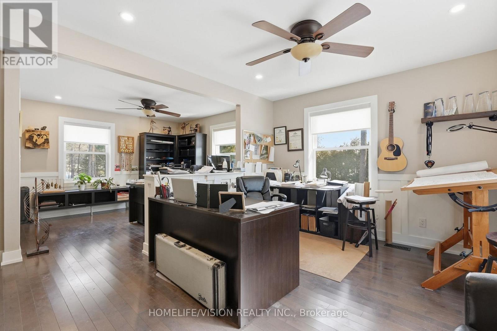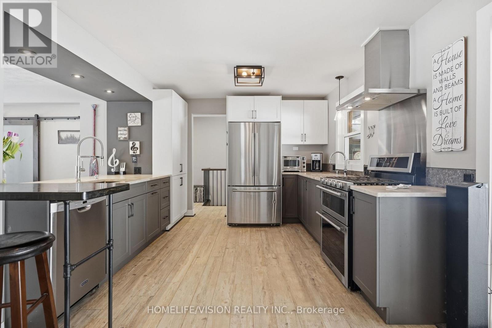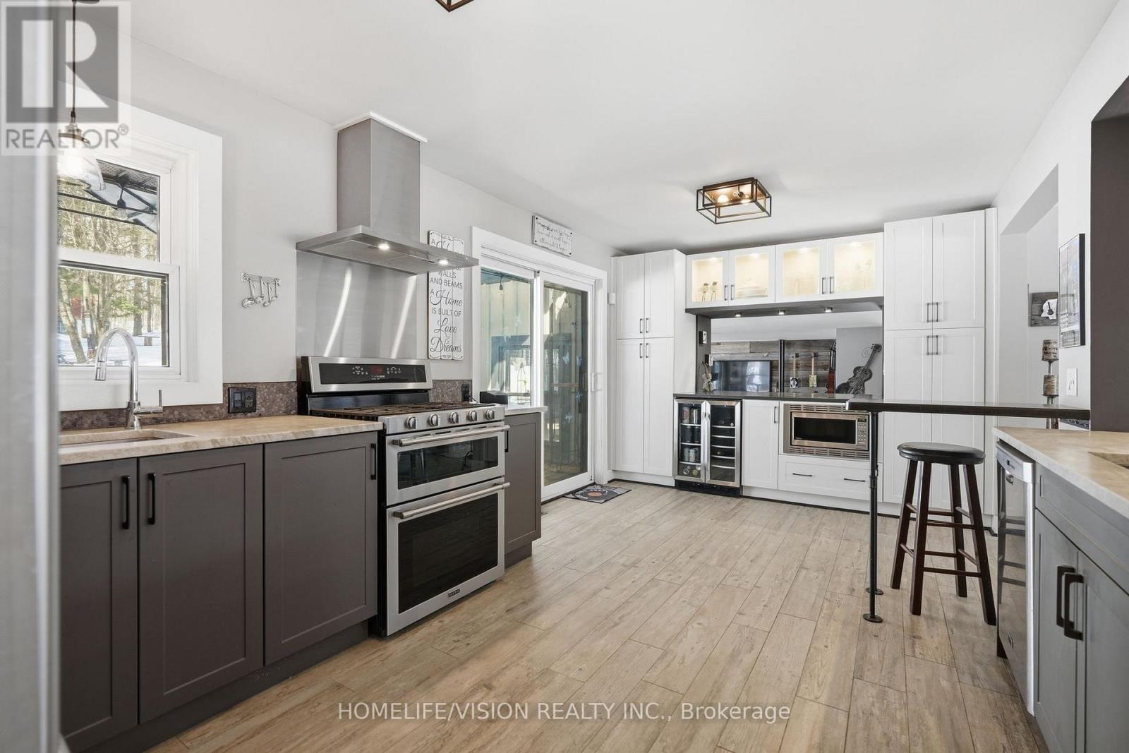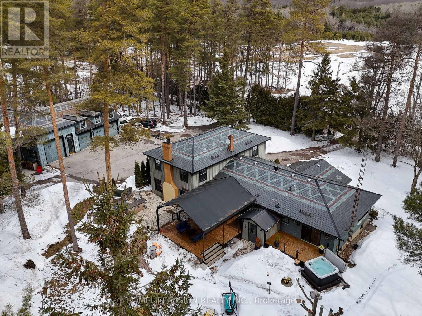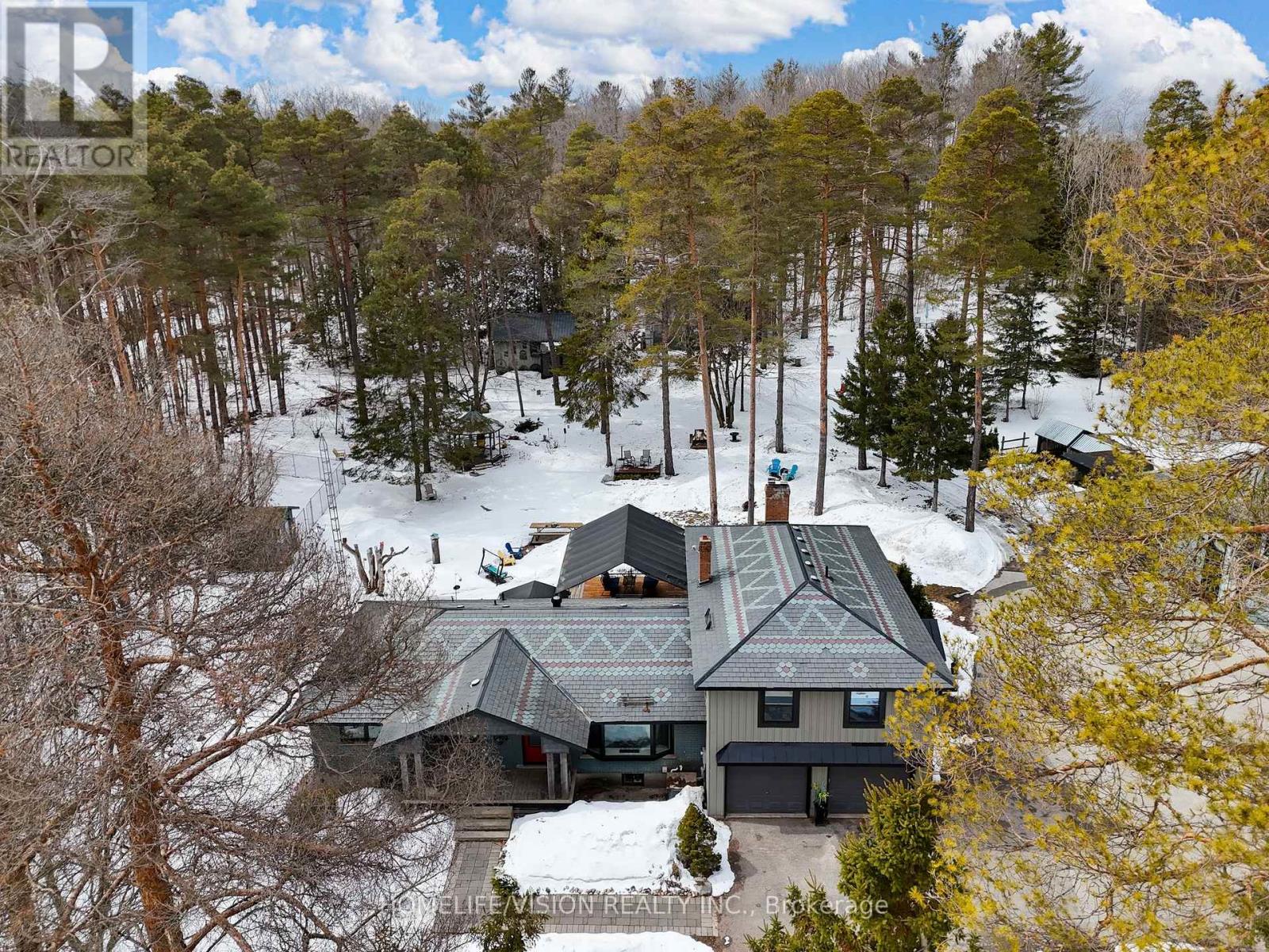 Welcome to this stunning country estate where you can truly have it all! Live, relax, work, play entertain and explore! This exceptional property is the perfect family home while also offering opportunities for contractors and entertainers alike. The beautifully renovated kitchen features leathered quartz countertops and stainless steel appliances, flowing seamlessly into a spacious dining room highlighted by a bay window with picturesque views. The inviting living room is centred around a granite fieldstone fireplace. The primary bedroom serves as a peaceful retreat, complete with a private ensuite, generous closet space and walkout to a hot tub overlooking a serene forest. The upper level offers three additional bright and spacious bedrooms along with a large family bathroom, perfect for growing families.The fully finished basement includes a kitchenette, living area, bedroom, 3-piece bathroom, and a separate entrance, providing excellent potential for extended family or in-law living. Large closets throughout the home ensure plenty of storage space. Step outside and experience the property's natural beauty with private trails, a fire pit, gazebo, and an expansive deck ideal for entertaining. A circular front driveway provides easy access and ample parking. For those working from home or needing workspace, the impressive 2,000 sg ft shop offers room for a hoist, office space, supplies, and storage. The property also features an original bank barn with four stalls and hay storage, a detached single-car garage, and a high-ceiling carport attached to the shop, perfect for vehicle or boat storage. Adding to the home's character is the slate roof salvaged from the historic Brockville Presbyterian Church, installed with copper nails on the home, shop, shed, and gazebo. A quick 7 minute drive to Uxbridge for schools, groceries, hospital, library, banking and community centre. This remarkable property offers the perfect balance of country living, functionality, and charm. (id:64974)