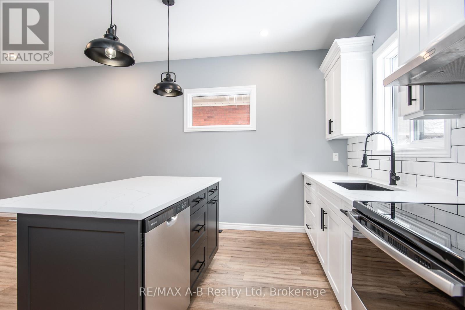 Fully Renovated Brick Beauty - Move-In Ready! Welcome to this stunning 1.5 -storey brick home featuring a fully fenced yard and stylish upgrades from top to bottom. This beautifully updated property offers 3 spacious bedrooms, 2 baths, and a partly finished basement, perfectly located close to the city core for convenience and lifestyle. Highlights you'll love: Gorgeous kitchen with quartz countertops and brand-new stainless steel fridge, stove & dishwasher Spray foam insulation for energy efficiency . Entire home re-drywalled, rewired & re-plumbed. Brand-new furnace & ductwork throughout All new flooring across the home. New exterior windows and doors for comfort and curb appeal. Upper roof replaced. New front porch & back deck - perfect for relaxing or entertaining. This home blends modern upgrades with timeless charm - truly turn-key and worry-free living. Don't miss your chance to own this beautifully renovated gem - schedule your showing today! FRONT YARD will so sodded at the earliest opportunity. Some photos are AI staged. (id:64974)