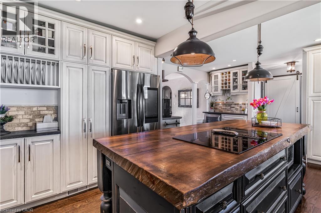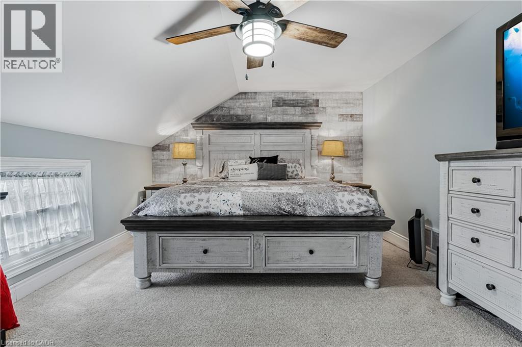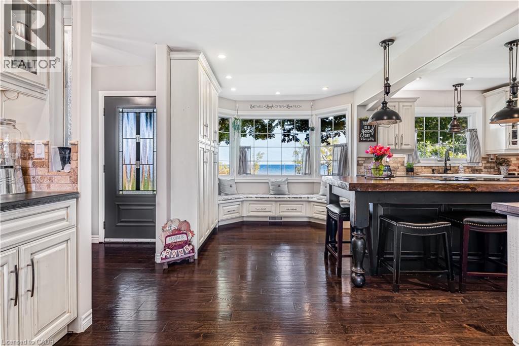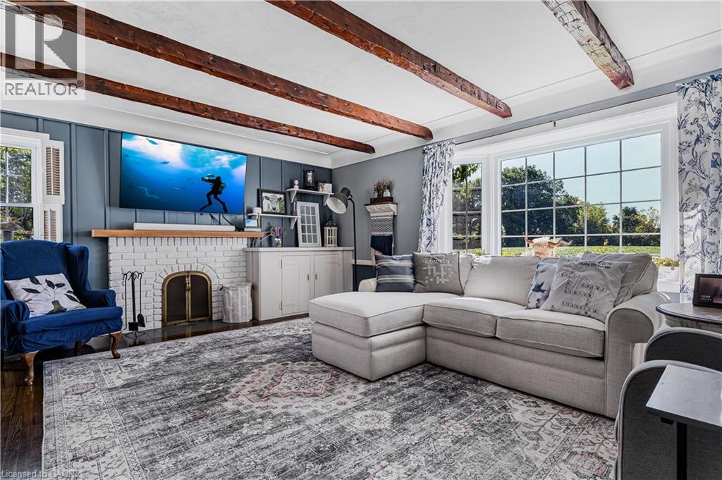 This beautifully restored 1930s farmhouse combines modern updates with classic character, and clear views of Lake Ontario. The property is located just minutes from Jordan Village, and is also within walking distance of Jordan Harbour Conservation Area - home of the Niagara Rowing School. Car commuters will appreciate the quick QEW access, and that you're just a short walk from the Victoria Avenue Vineland MTO carpool lot with its GO Bus service to Toronto and to Niagara. The home features 4 bedrooms, 2.5 baths. The main floor consists of a formal living room with a wood-burning fireplace and walkout to a lake-view porch. The kitchen is the heart of the home, with an 8-foot island with cooktop, double wall ovens, stainless steel appliances, and a bright bay window seat overlooking the lake. A large family room, separate dining room, laundry, and powder room complete the main level. Two staircases take you to the 2nd level, with main bathroom, three bedrooms, and a fourth spacious primary suite with a walk-through closet/loft area, and 5-piece ensuite with a freestanding tub, glass shower, and double sinks. One of the bedrooms on this 2nd floor includes access to a large balcony, where you can catch some great views of the neighbouring strawberry fields and Lake Ontario. Major updates to the home include a steel roof (2015), furnace and A/C (2017), and 200-amp electrical service. The detached garage has two 1.5-size bays, and the driveway accommodates parking for 8+ vehicles. The yard includes an above-ground pool, play area with zipline and fort, and open views. At just over 1 acre, this property offers plenty of room for an active family with the bonus of its proximity to Jordan Harbour, where you can enjoy fishing, canoeing, kayaking, rowing, or paddleboarding - and full access to Lake Ontario. Come see, come sigh! (id:64974)