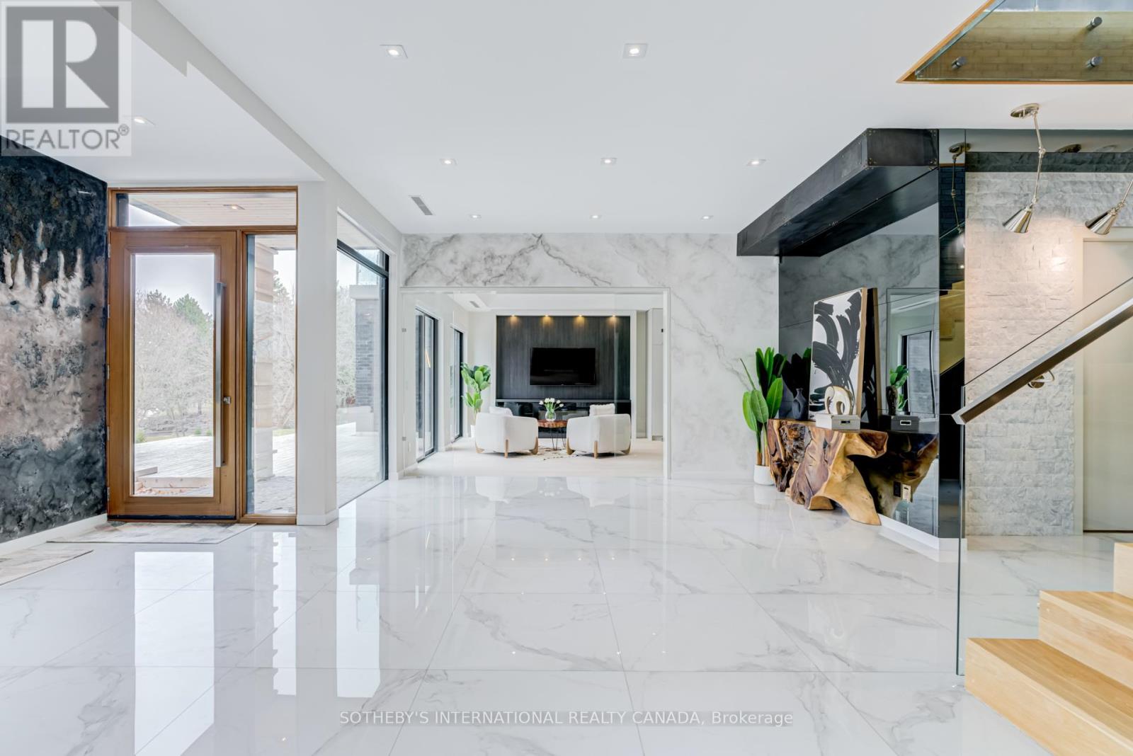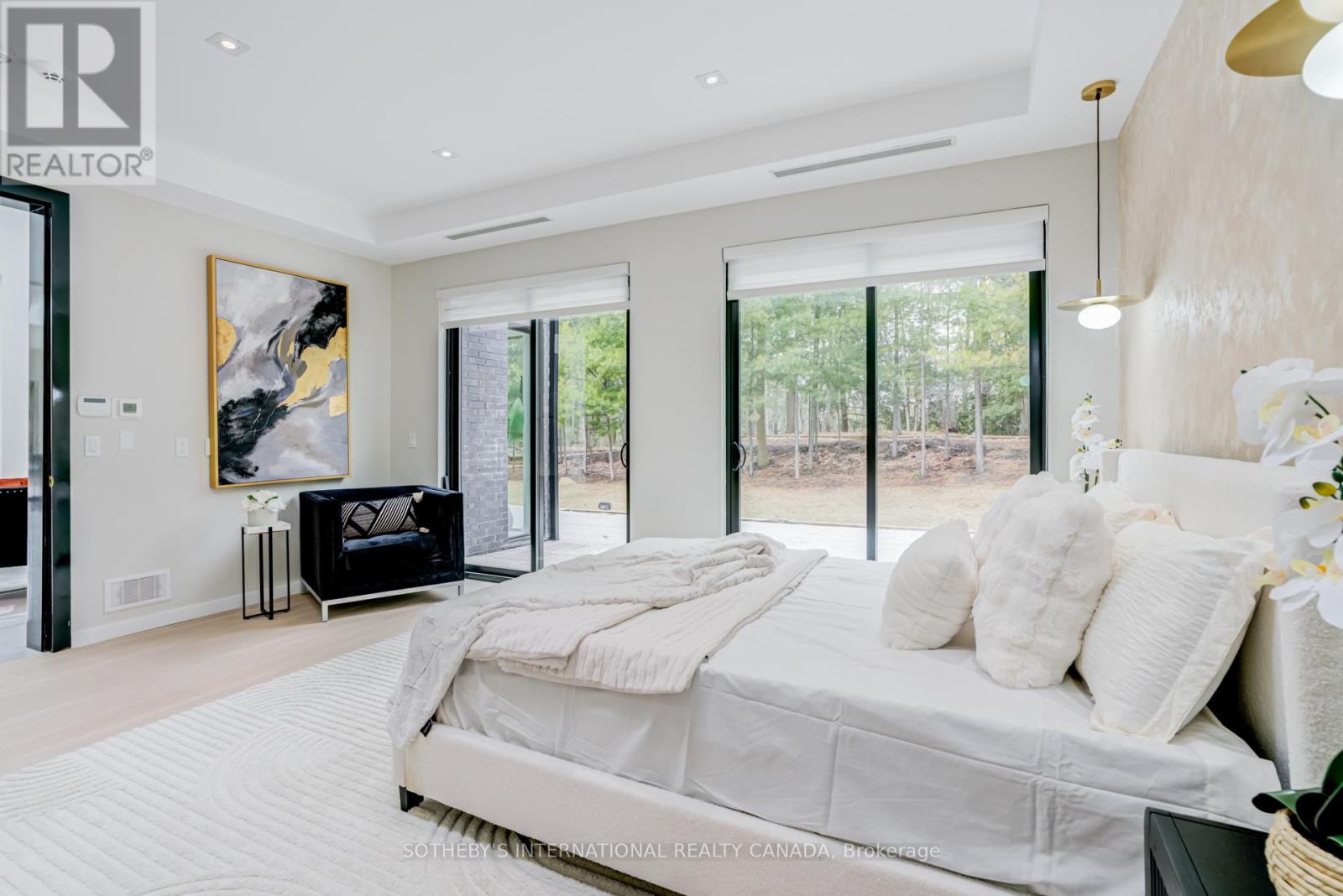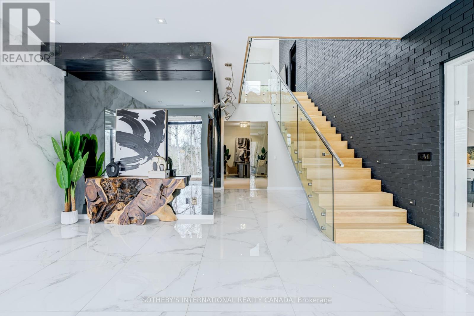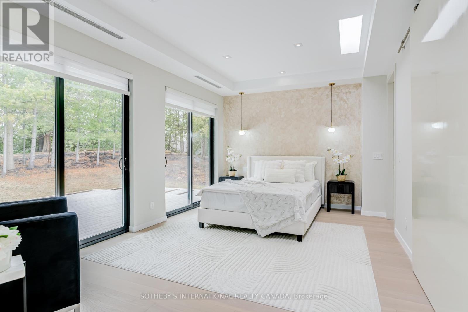 Set on an exceptional 1-acre estate lot surrounded by mature trees. Offering approximately 5300 sq. ft of refined living space, this custom-built residence delivers the ultimate in modern luxury, premium finishes, and versatility. A true highlight and one of the most sought-after luxury features of 2026 is the home's exceptional multi-generational living design. The ground level offers 10' ceilings and two impressive condo-sized suites, each complete with a full kitchen, living room, bedroom, bathroom, in-suite laundry and a dedicated terrace with sliding doors. In addition, a separate studio suite with its own kitchen and bathroom provides a flexible third space, ideal for extended family, guests, live-in staff, or a private executive office. The home is defined by the unique upside-down floor plan to maximize the surrounding views. Offering dramatic 10'-16' ceilings complemented by expansive floor-to-ceiling windows that flood the interior with natural light. A seamless indoor-outdoor flow anchors the principal living spaces, ideal for both everyday living and elevated entertaining. Outdoor living is equally impressive, with a spectacular 970 sq. ft infinity cedar deck overlooking the serene landscape, as well as a rare 915 sq. ft rooftop terrace, perfect for entertaining or unwinding in total privacy. Ideally located just minutes to top-tier schools, golf courses, fine dining, and major commuter routes, this is a rare offering that combines privacy, prestige, and forward-thinking design, perfectly suited for today's luxury buyer. (id:64974)