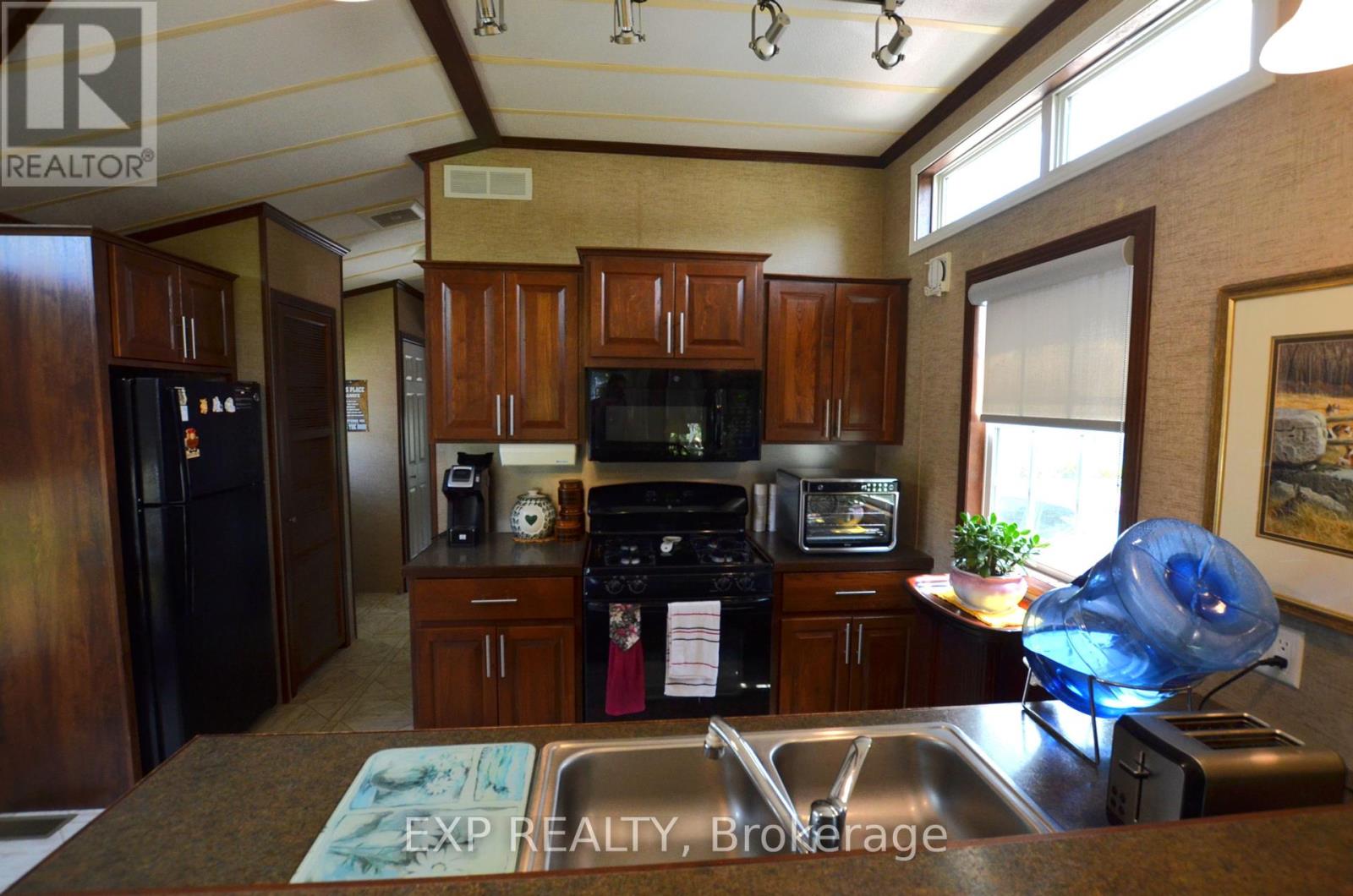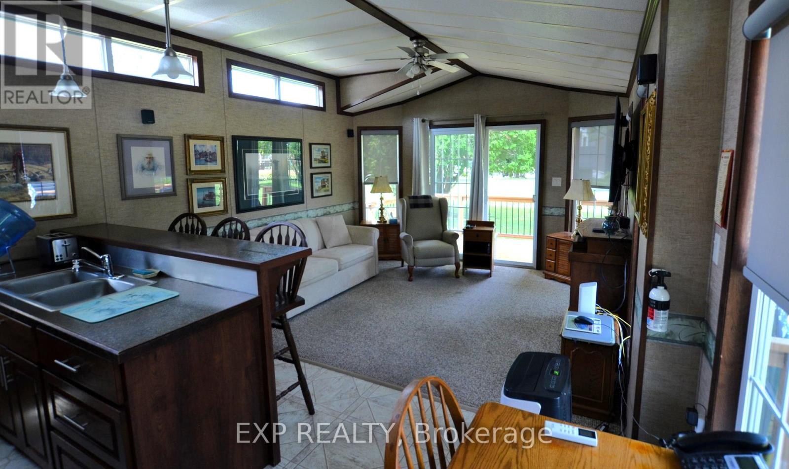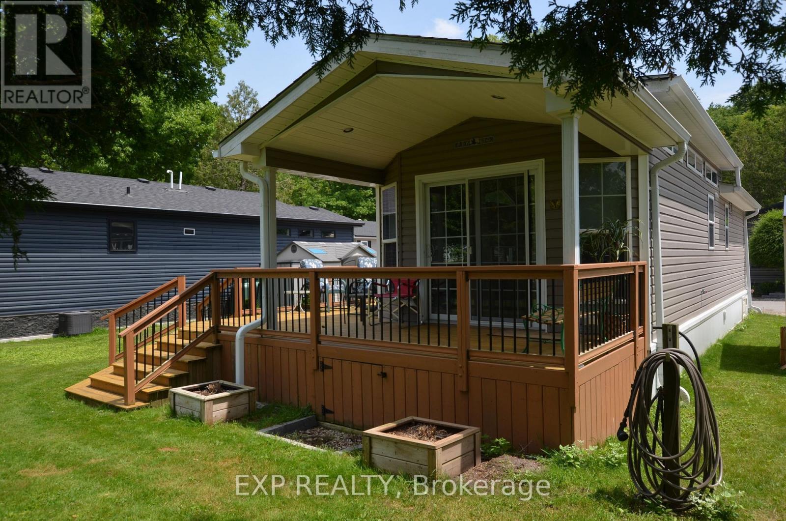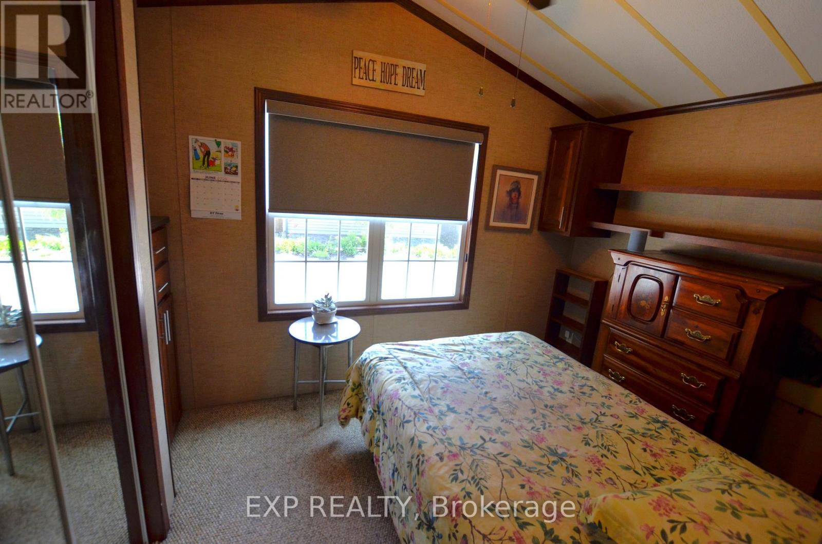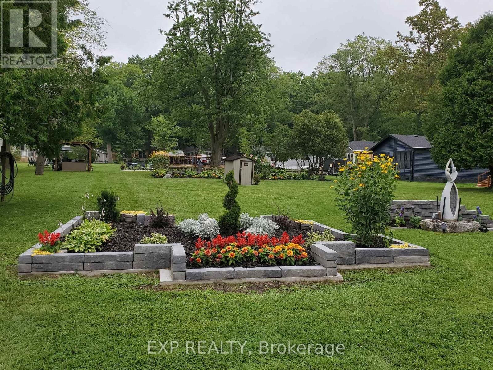 Experience maintenance free living in the retirement community of Oriole Park. Enjoy your morning coffee on the covered back deck overlooking the beautiful landscaped grounds. This well-maintained home features an open concept floor plan with cathedral ceilings, kitchen with breakfast bar and gas stove, spacious living room with electric fireplace and patio doors to deck. Brand new roof! All appliances included. The master bedroom includes built in mirrored closets and drawers. Laundry room with plenty of storage. Forced air heating and portable AC unit included as well. Concrete driveway plus storage shed and additional storage under deck. Ample guest parking on site. Low property taxes! This is a fantastic opportunity for quality retirement living in a 55+ community with incredible amenities including an inground pool, pickle ball court, community centre, dog grooming, golf simulator, bistro & bar, pool table, dart board, and more. Schedule your retirement today! (id:64974)