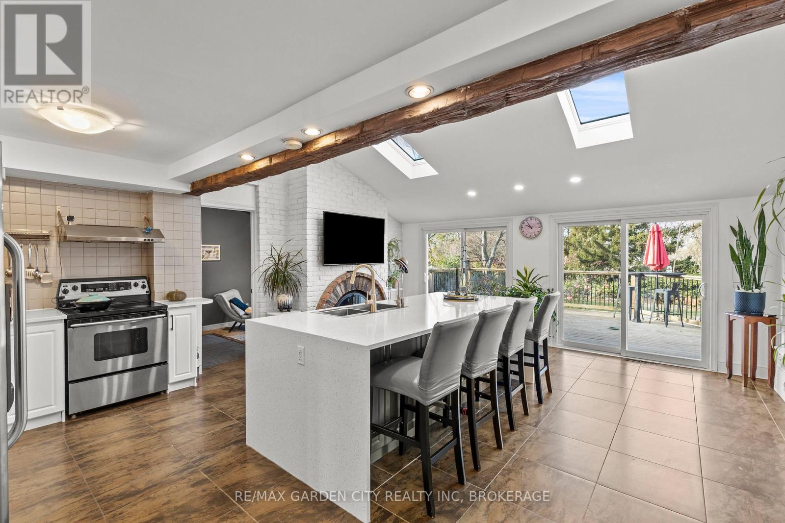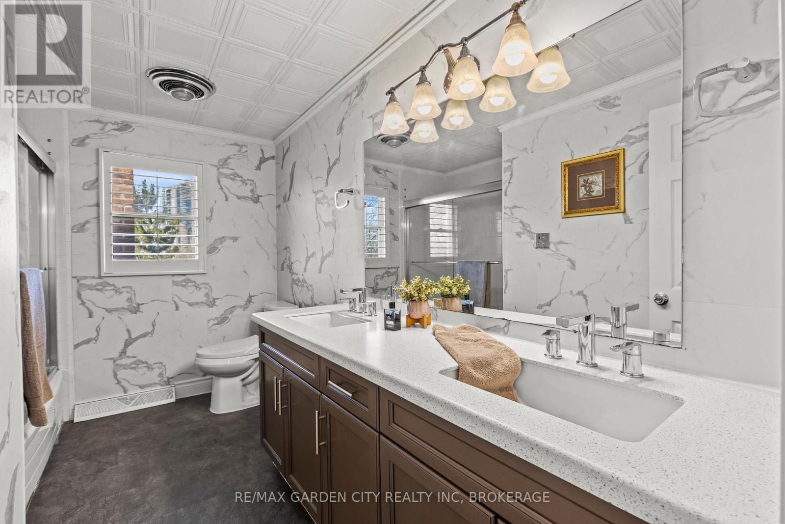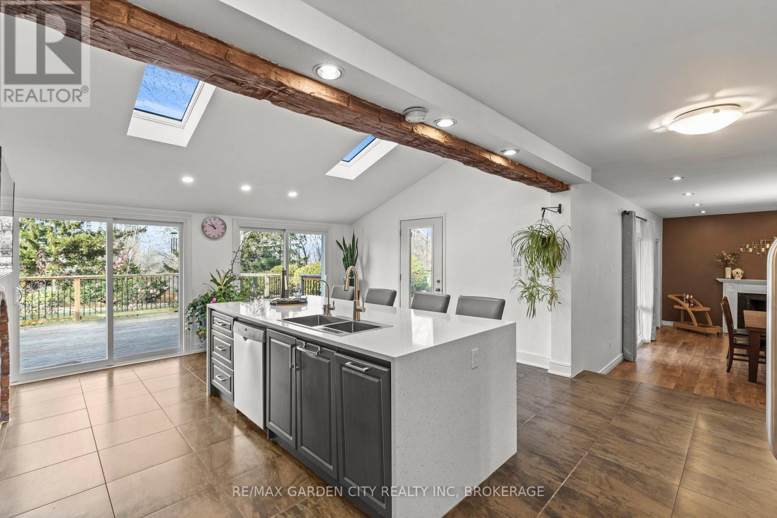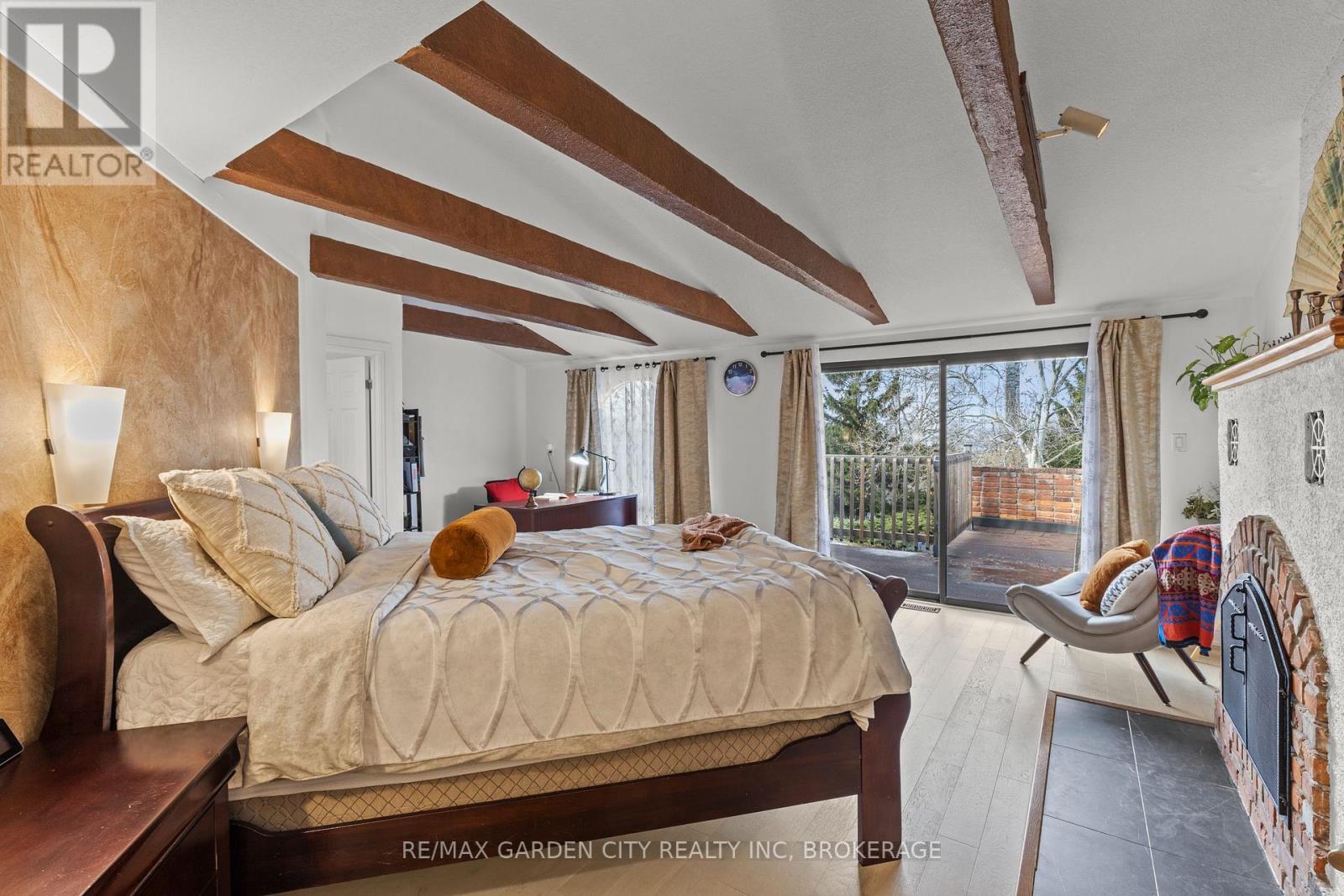 Exceptional 6-bedroom, 5-bathroom executive home in South St. Catharines, offering over 3,400 sq ft above grade on a premium 66 x 251 ft ravine lot with no rear neighbours, backing onto a green space paradise with in-ground pool. Well renovated between 2019-2025, this property provides outstanding space, privacy, and extensive upgrades throughout. The main floor features a bright home office with backyard views, a private living room with fireplace, a separate recreation/sitting area, and a main-floor sauna with direct outdoor access. The open kitchen offers quartz countertops, a large island, updated cabinetry, and a spacious dining area with oversized patio doors leading to the private backyard with an inground concrete pool. A convenient main-floor laundry and shower room complete this level. The second floor offers two unique primary suites. The west-facing suite includes vaulted ceilings, a fireplace, walk-in closet, private balcony, and renovated ensuite with skylight. The east-facing suite provides generous space and morning light. Three additional bedrooms feature private ensuites, and a large 4-piece bathroom services the remaining bedroom. The finished basement includes a recreation room, storage, and a second laundry area. Major updates include full second-floor renovation; multiple bathroom remodels; new kitchen(2021); new staircase, flooring, trims, casings, and baseboards; attic insulation and HVAC upgrades with humidifier and electric air cleaner (2019); spray-foam insulation above the garage; driveway rebuild; new fencing; artificial turf; shed foundation; extensive pool repairs and repainting; and new garage doors(2025). Premium located near the Pen Centre, Brock University, Highschools, Ridley College, hospital, and major amenities. (id:64974)