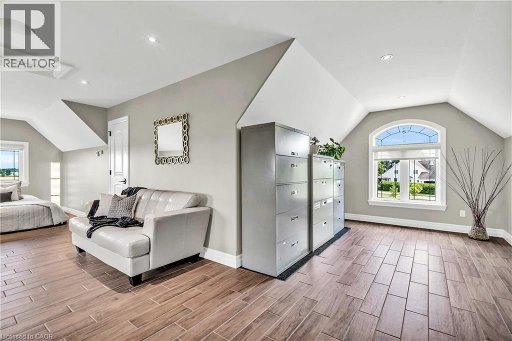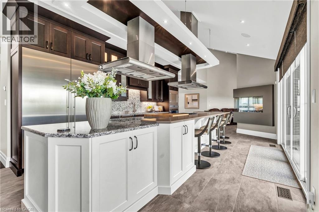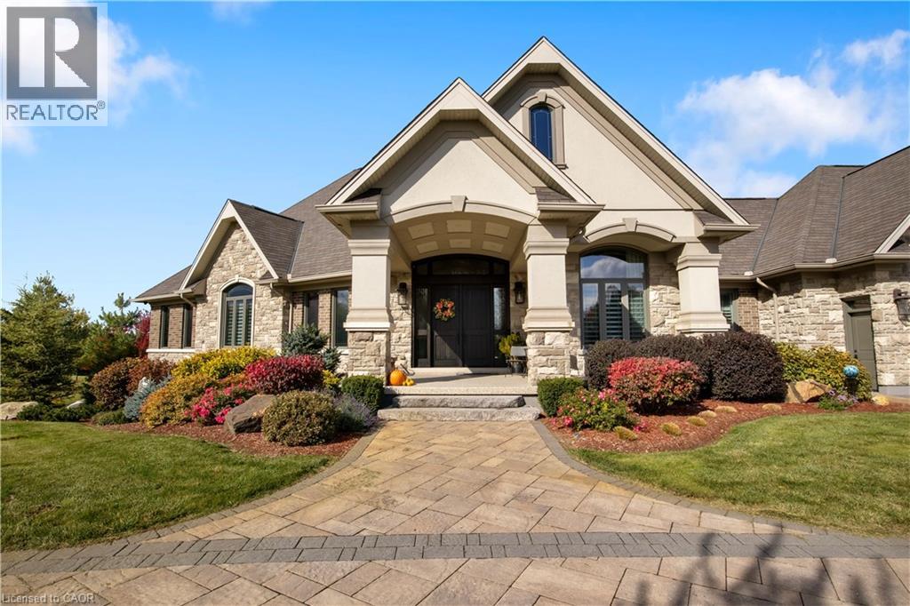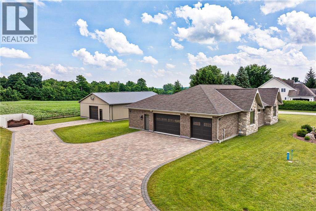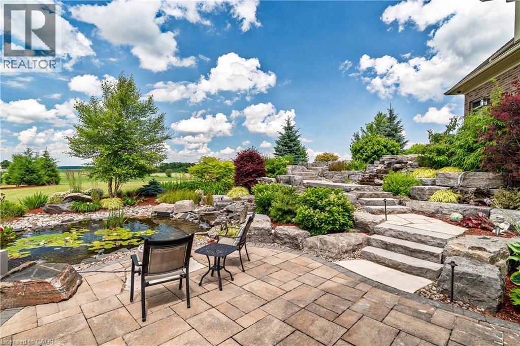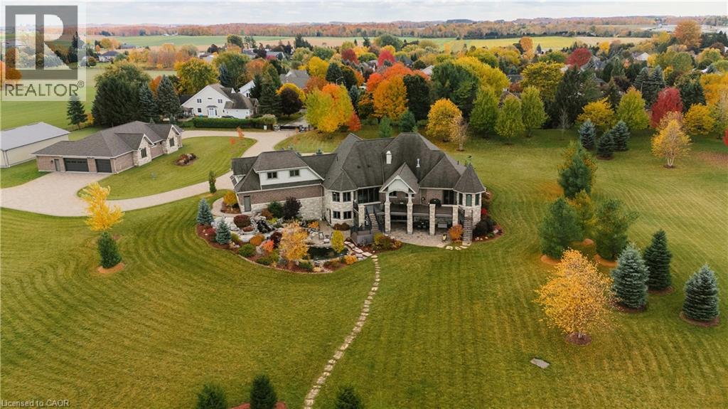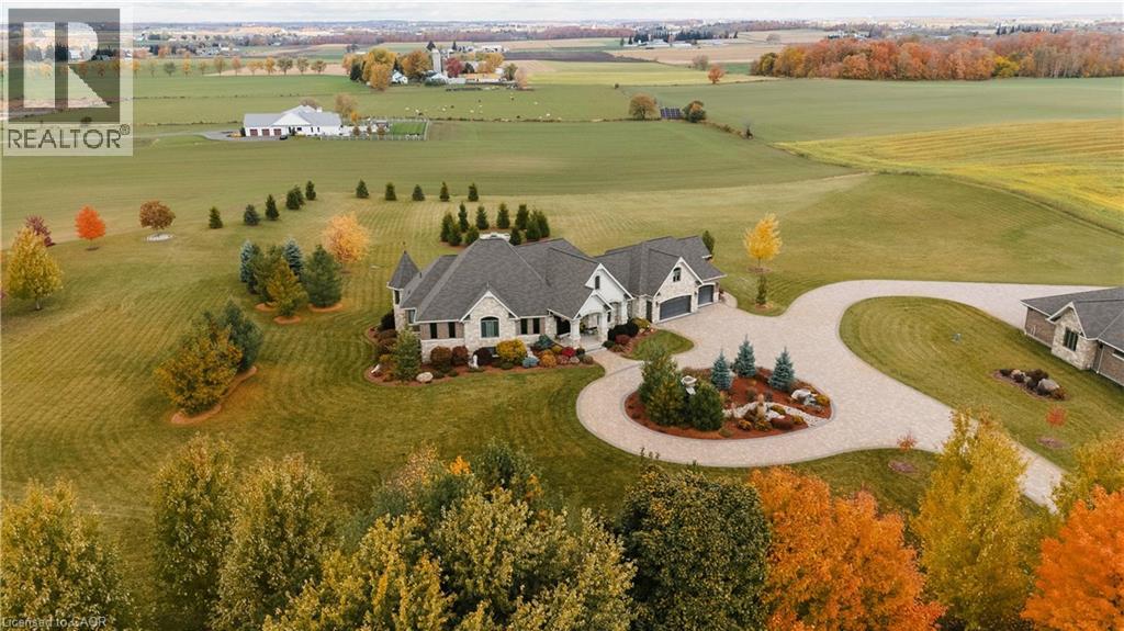 A rare offering in the prestigious countryside of St. Clements—46 Anita Drive is an 18.28-acre gated luxury estate that elevates refined country living. Beyond the custom iron gates, a 900 ft interlock drive leads to meticulously landscaped grounds revealing a showpiece 12ft granite Inukshuk roundabout. The $1M+ surrounding landscape/hardscape includes spectacular mature gardens and trees, a grand armour stone and granite waterfall cascading into a tranquil pond-crafted for privacy and prestige. Main residence exterior is a complementary blend of brick, stone and stucco spanning 7,325 sf on 3 levels. Radiant in-floor heating and Savant smart home automation throughout including garages. Vaulted ceilings, detailed poplar, oak and maple millwork and handcrafted finishes elevate every space. The home is filled with character and grandeur, featuring a double staircase leading from the upper deck down to the lower patio. At the heart of the home, a designer chef’s kitchen features Gaggenau appliances including range, teppanyaki, charcoal grill, 17 ft Cambria/Caesarstone quartz island, Cambria counters and backsplashes seamlessly flow into the sunlit family room that shares a 3-sided gas fireplace. The primary suite is a private retreat with a spa-like 9-piece ensuite, heated floors, surround sound, serene turret sitting area and boutique-style dressing room. The walk-out lower level is an entertainer’s dream-offering a custom bar, custom natural stone floor-to-ceiling gas fireplace, home theatre, gym & guest rooms. A 3,500 sf heated workshop/coach house with 11 ft ceilings and triple garage doors offers a workshop paradise or auxiliary residence conversion potential. In addition there is also a 2,468 sf steel storage building with custom steel pallet racking for 72 skids completes this extraordinary estate. Has potential for a unique equestrian setup. Fully irrigated around all three building perimeters, zoned A1 Agricultural, and min. to Waterloo and highway access. (id:64974)