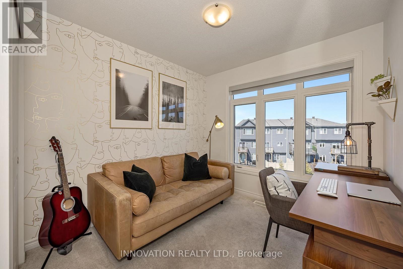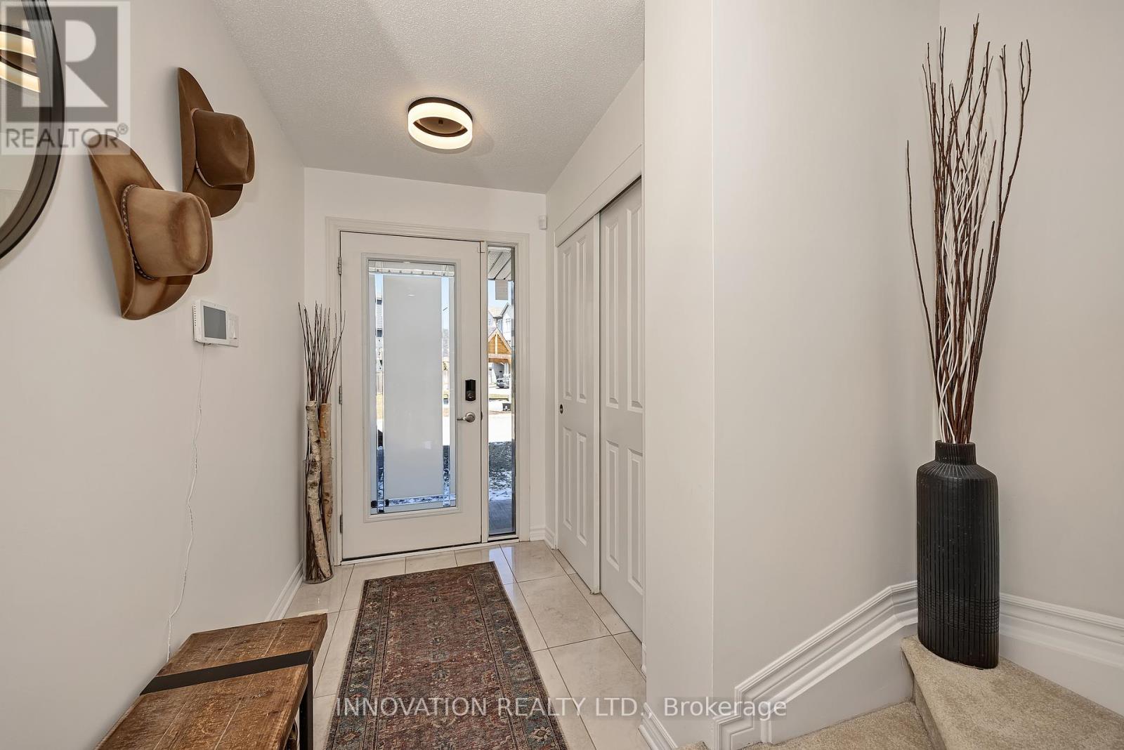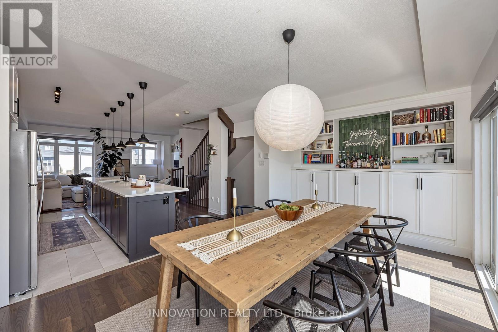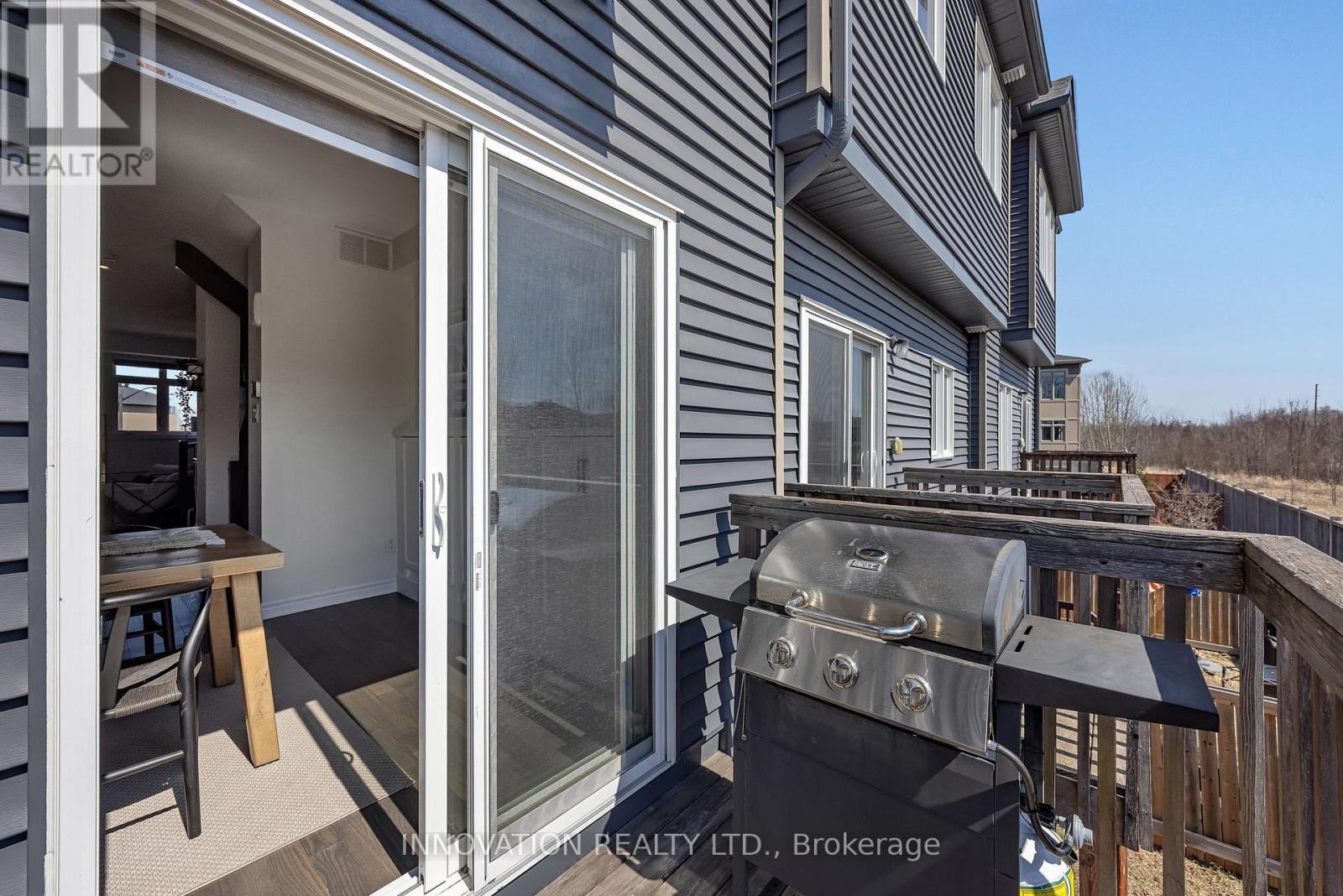 Welcome to this striking, design-forward three-storey townhome, built in 2019 and meticulously upgraded to impress. Offering 3 Bedrooms and 3 Bathrooms, this residence delivers a bold blend of modern style and refined comfort. The entry level sets the tone with a sleek tiled foyer leading into a versatile, sun-filled space-perfect as a home office or lounge. Rich hardwood floors elevate the room, which opens seamlessly to a private backyard retreat featuring a new '25 deck and elegant gazebo-your own urban escape. The 2nd level is nothing short of showstopping. A bright, open-concept layout showcases a chef-inspired Kitchen anchored by an sprawling Breakfast bar with seating for 6-8, quartz countertops, stainless steel appliances, made for entertaining in style. Hardwood floors run throughout, complemented by custom built-in dining cabinetry and a sophisticated electric fireplace that defines the living space. Step out onto the balcony and unwind with rare, unobstructed views of a mature, tree-lined ravine that is serene, private, and simply stunning. Upstairs, the 3rd level offers 3 generously sized Bedrooms, including a luxurious Primary Bedroom retreat complete with dual walk-in closets and a beautifully finished 3 pc ensuite Bath. Additional Bedrooms provide flexibility for family, guests, or a polished home office. The unfinished Basement offers a blank canvas - ideal for a media lounge or fitness studio. Ideally located close to schools, shopping, and everyday amenities, this home also features a private road with ample visitor parking plus bonus electric car charger in garage! A rare opportunity to own a turnkey, style-driven home in an exceptional setting-where modern living meets natural beauty. 24 hour irrevocable on all Offers (id:64974)