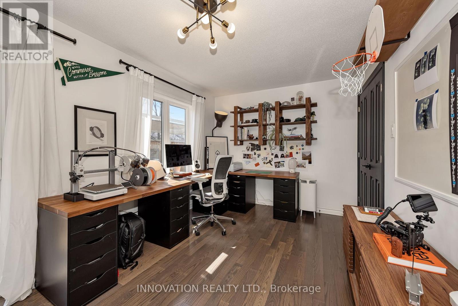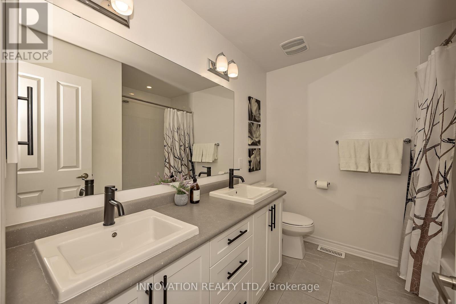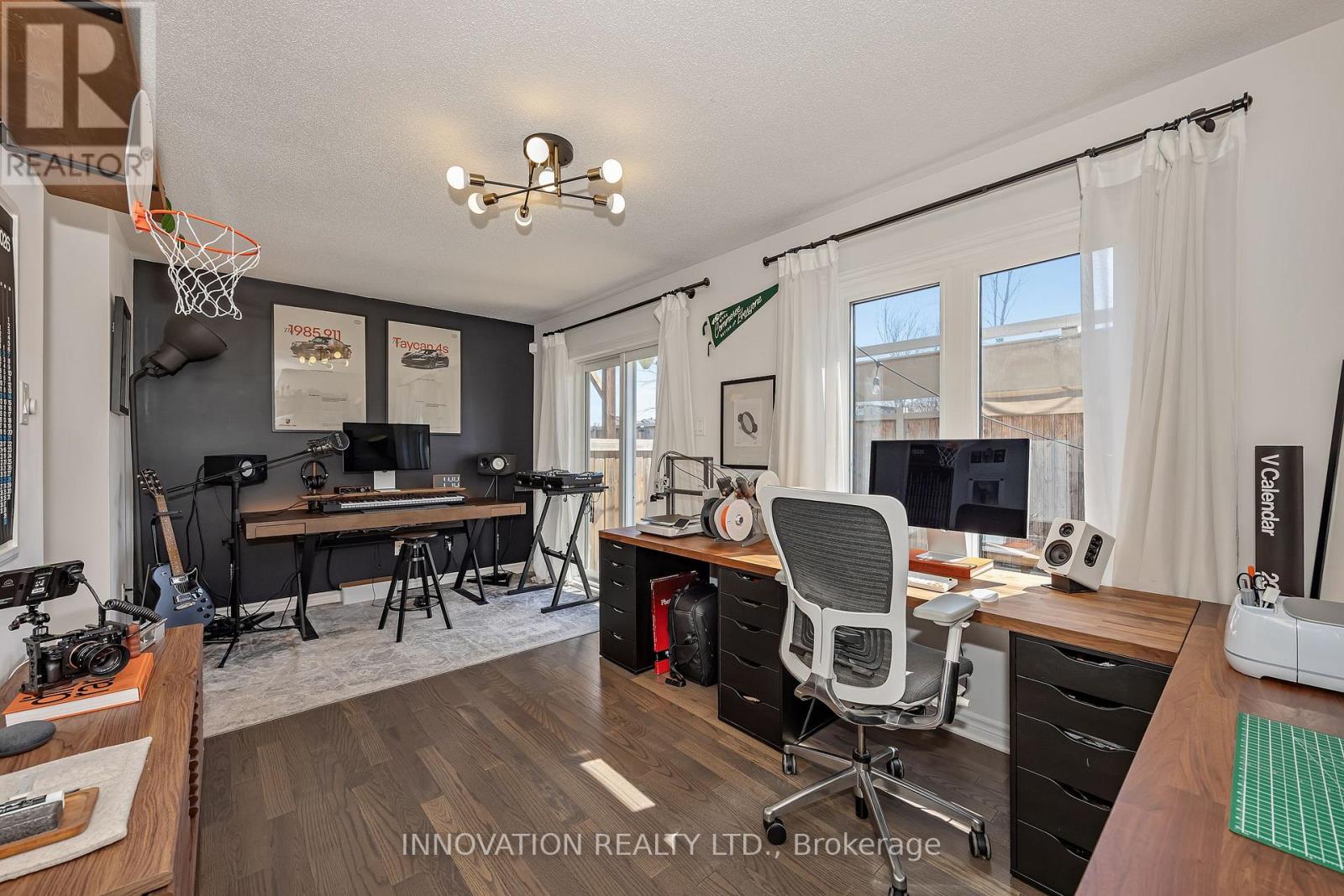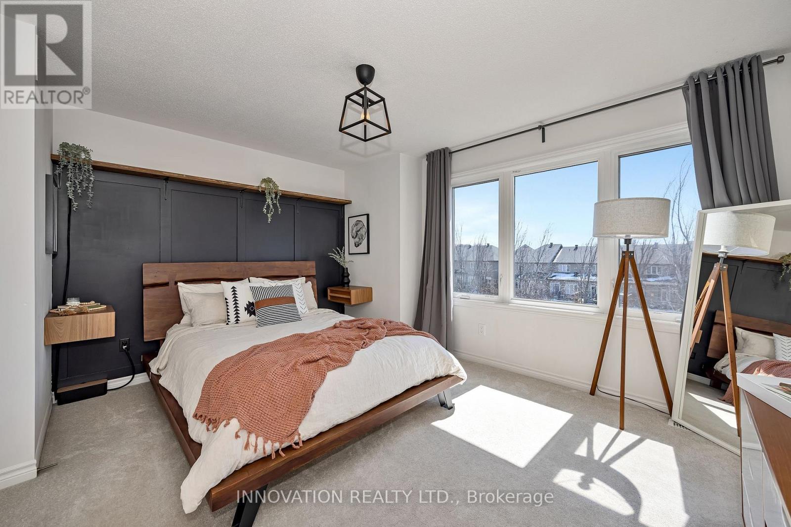 Welcome to this striking, design-forward three-storey townhome, built in 2019 and meticulously upgraded to impress. Offering 3 Bedrooms and 3 Bathrooms, this residence delivers a bold blend of modern style and refined comfort. The entry level sets the tone with a sleek tiled foyer leading into a versatile, sun-filled space-perfect as a home office or lounge. Rich hardwood floors elevate the room, which opens seamlessly to a private backyard retreat featuring a new '25 deck and elegant gazebo-your own urban escape. The 2nd level is nothing short of showstopping. A bright, open-concept layout showcases a chef-inspired Kitchen anchored by an sprawling Breakfast bar with seating for 6-8, quartz countertops, stainless steel appliances, made for entertaining in style. Hardwood floors run throughout, complemented by custom built-in dining cabinetry and a sophisticated electric fireplace that defines the living space. Step out onto the balcony and unwind with rare, unobstructed views of a mature, tree-lined ravine that is serene, private, and simply stunning. Upstairs, the 3rd level offers 3 generously sized Bedrooms, including a luxurious Primary Bedroom retreat complete with dual walk-in closets and a beautifully finished 3 pc ensuite Bath. Additional Bedrooms provide flexibility for family, guests, or a polished home office. The unfinished Basement offers a blank canvas - ideal for a media lounge or fitness studio. Ideally located close to schools, shopping, and everyday amenities, this home also features a private road with ample visitor parking plus bonus electric car charger in garage! A rare opportunity to own a turnkey, style-driven home in an exceptional setting-where modern living meets natural beauty. 24 hour irrevocable on all Offers (id:64974)