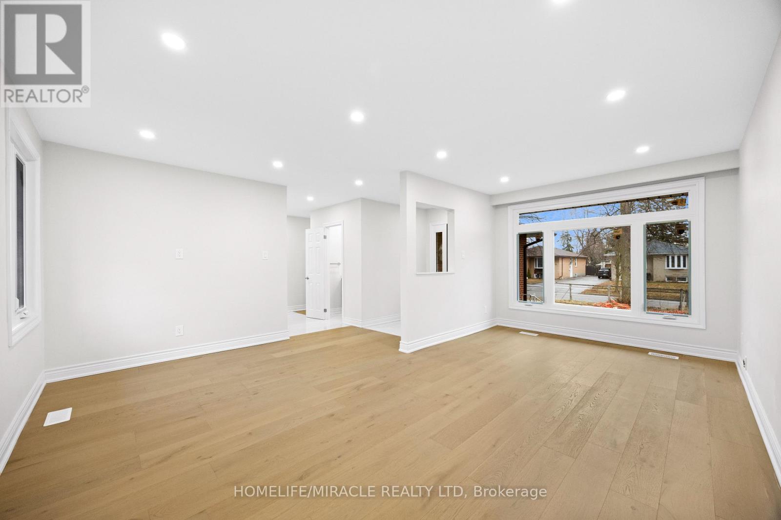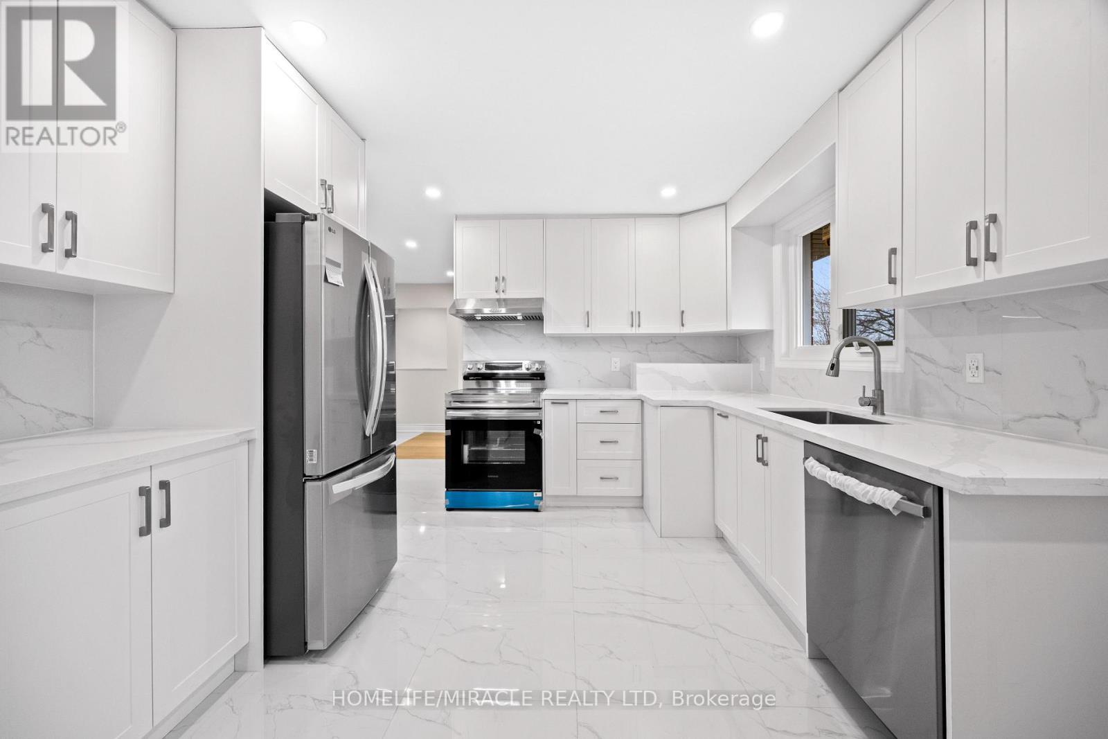Amazing Fully Renovated Turnkey Masterpiece!Experience refined living in this stunning home, extensively upgraded with over $200,000 in premium renovations, offering the perfect blend of modern design, comfort, and functionality in one of Scarborough's most desirable communities. Step inside to a bright, open-concept layout featuring engineered hardwood flooring throughout the main level, seamlessly connecting the living, dining, and bedroom spaces. The chef-inspired kitchen is a true highlight, showcasing quartz countertops, sleek custom cabinetry with ample storage, and a full suite of brand-new stainless steel appliances.The main level offers 3 spacious bedrooms and 1.5 beautifully updated bathrooms, while the fully finished basement expands your living space with 2 additional bedrooms and 2 full bathrooms - ideal for extended family or income potential. Enjoy a completely carpet-free home designed for modern living. Major 2025 Upgrades Include : New roof, windows, doors, and air conditioning-delivering peace of mind and true move-in-ready convenience. Location is unbeatable! Just minutes from Scarborough Town Centre and the upcoming Scarborough Subway Extension, with easy access to GO Transit and Hwy 401 for effortless commuting. Walking distance to schools, parks, and scenic trails including Thomson Park, making it perfect for families. Additional potential to extend the driveway allows for increased parking flexibility. This exceptional home offers luxury upgrades, income potential, and prime location - a rare opportunity not to be missed ! (id:64974)