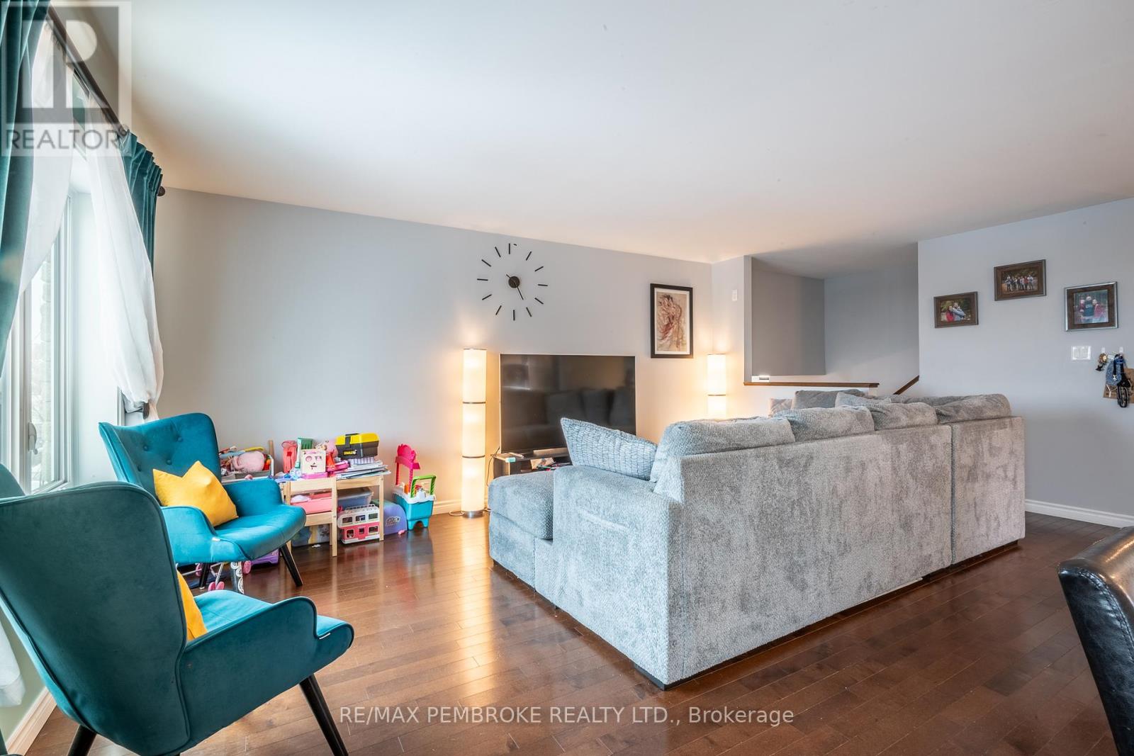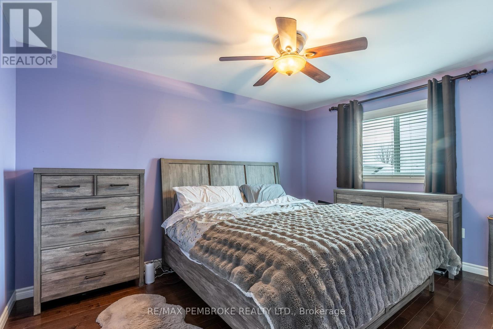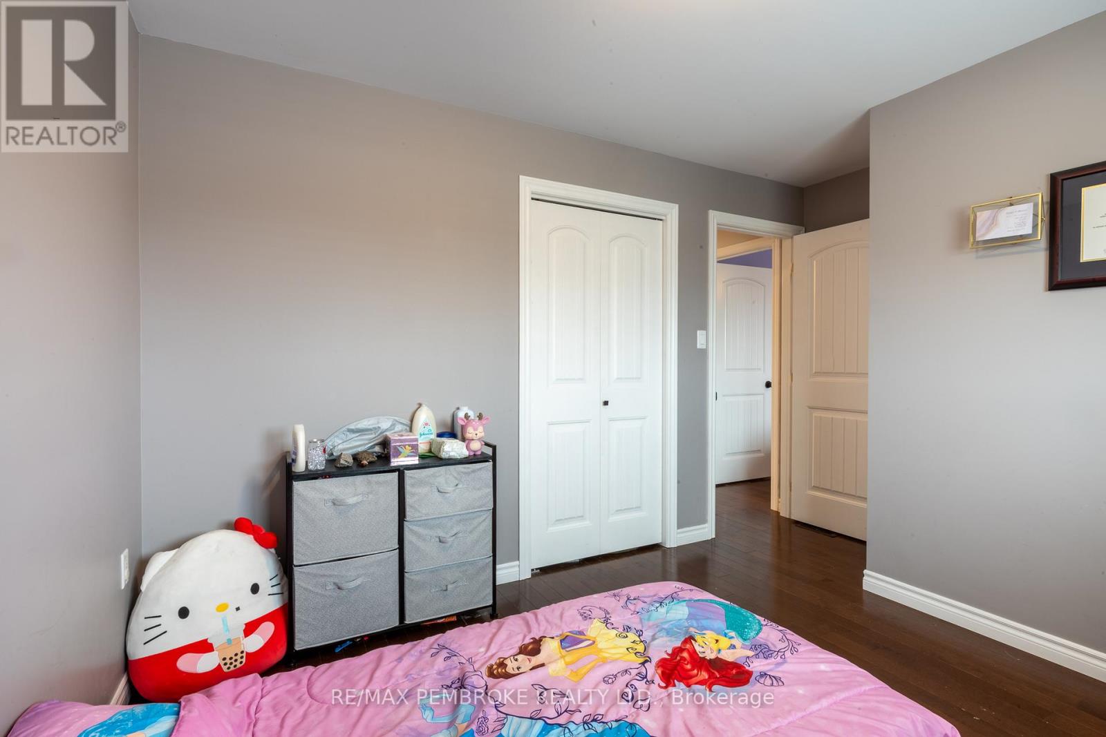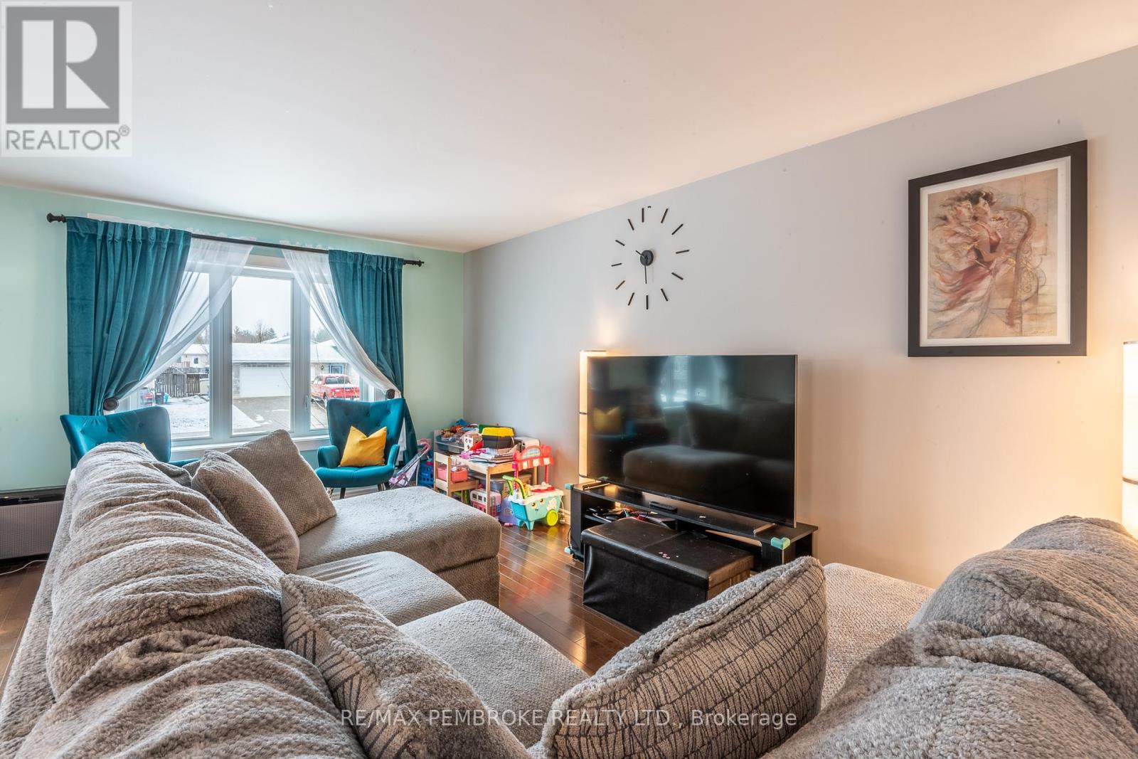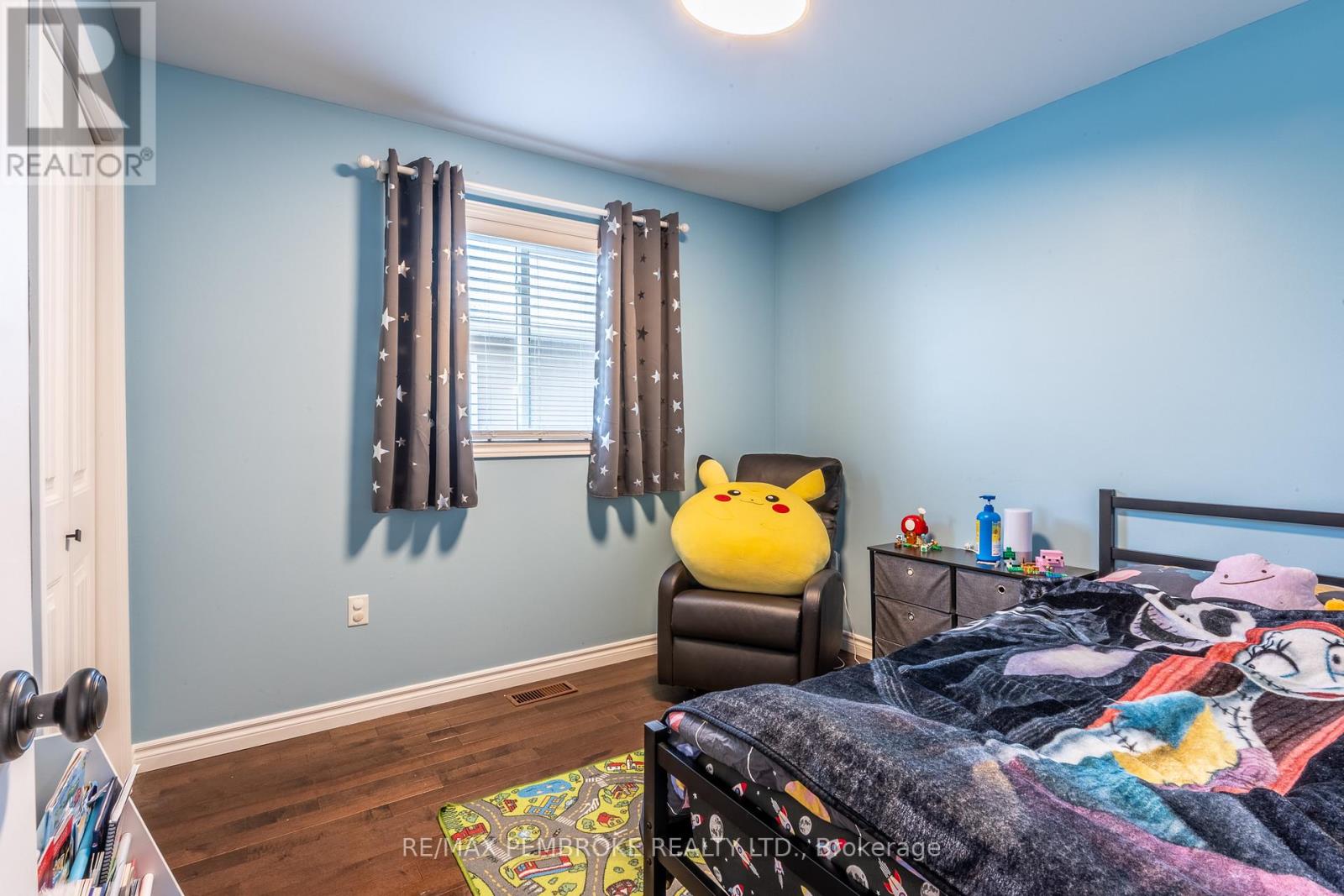 Situated in a family-friendly neighbourhood within the desirable Valour K-12 and St. Francis K-6 school zones, this well-maintained home offers space, function, and thoughtful updates in a location that is ideal for family living. Enjoy being within walking distance to Petawawa Terrace Park, the library, playgrounds, and everyday amenities. The main floor features 3 bedrooms, a large full bathroom with double vanity, and hardwood flooring throughout the living areas and bedrooms. The layout is both practical and welcoming, with added kitchen storage provided by a pantry closet in the hallway. Downstairs, the fully finished lower level offers even more living space with 2 additional bedrooms, a 3-piece bathroom, and a comfortable family room complete with vinyl plank flooring and stylish French doors. Outside, the fully fenced backyard is ready to enjoy with a stone patio off the foyer, garden bed, fire pit, and storage shed, while the double attached garage adds convenience and extra storage. This home also features several valuable recent upgrades, including a tankless hot water system installed in 2021, all front-facing windows replaced in 2023, front door and sidelight replaced in 2023, air exchanger installed in 2023, and garage door opener replaced in 2025. Kitchen appliance updates include the stove, over-the-range microwave, refrigerator, and dishwasher. Modern features such as an EV receptacle in the garage, Nest Google Smart Thermostat, wired doorbell camera, AI smart HVAC control, and keyless front entry make this home especially appealing for today's tech savvy buyers. A move-in ready property in a great school zone with room for the whole family. 24 hour irrevocable required on any written offer. (id:64974)