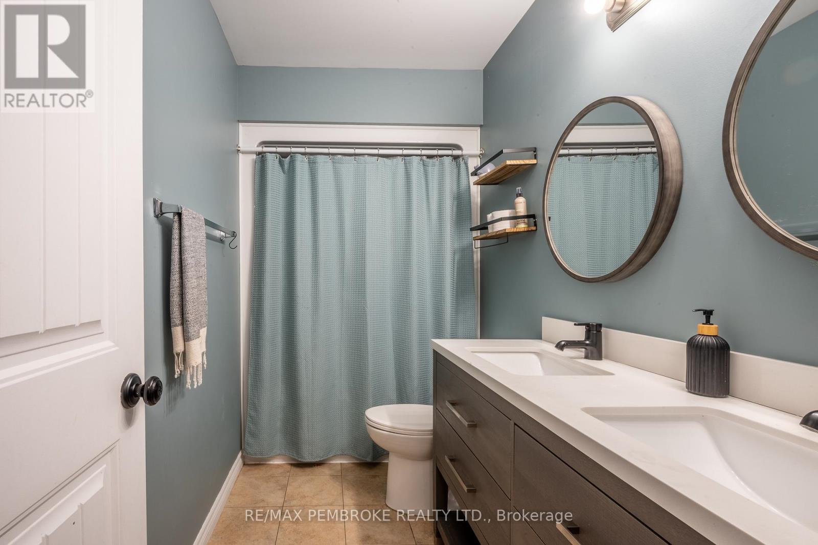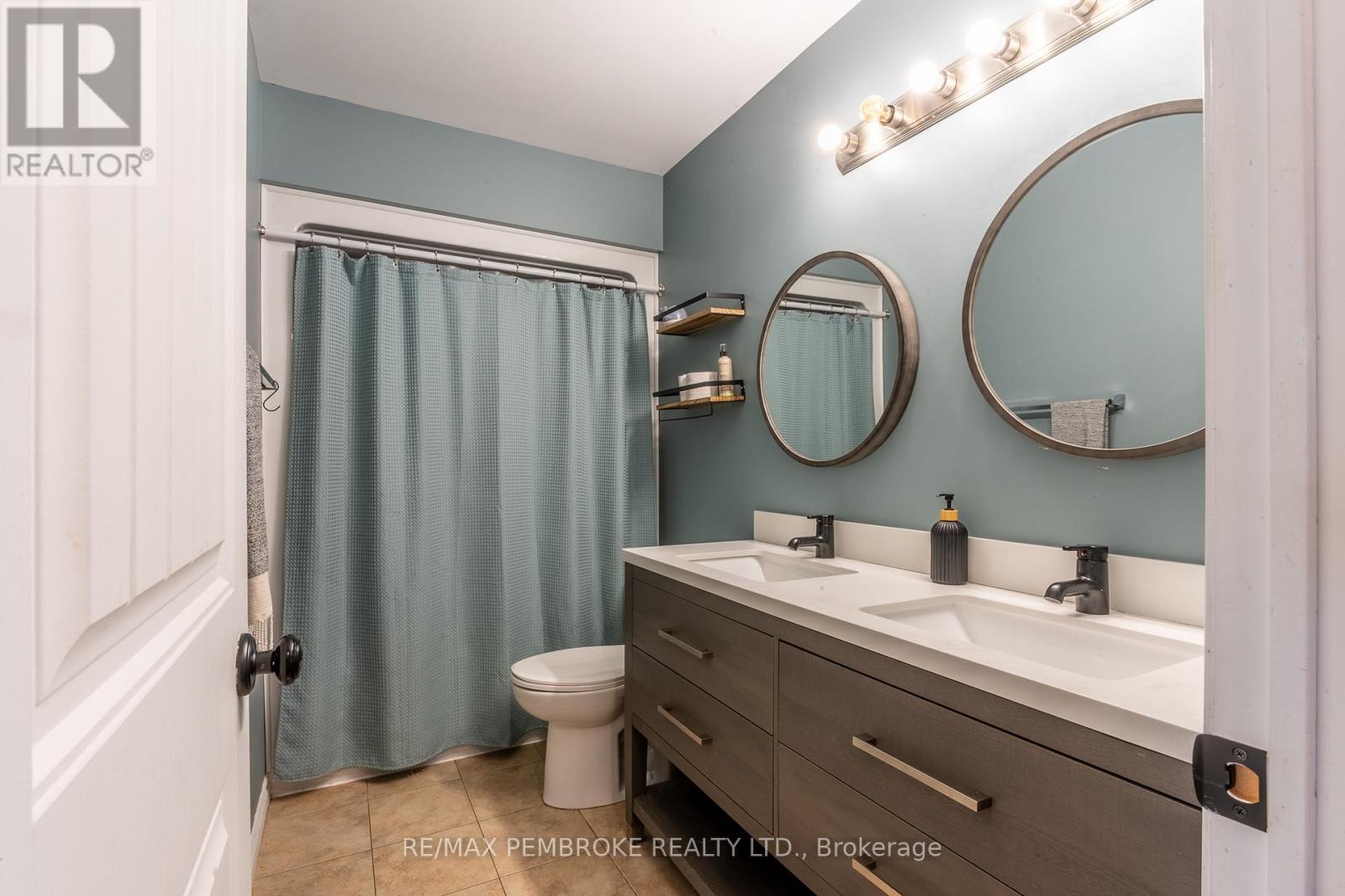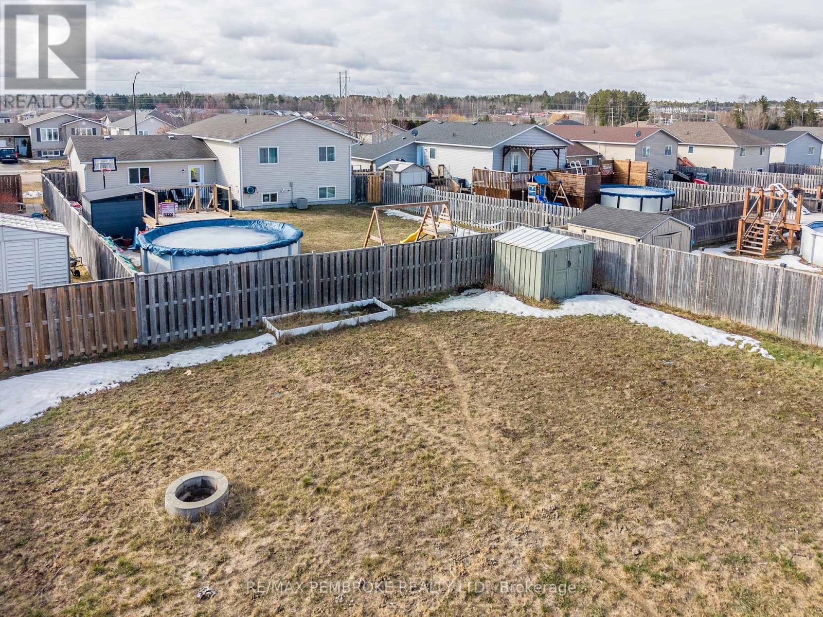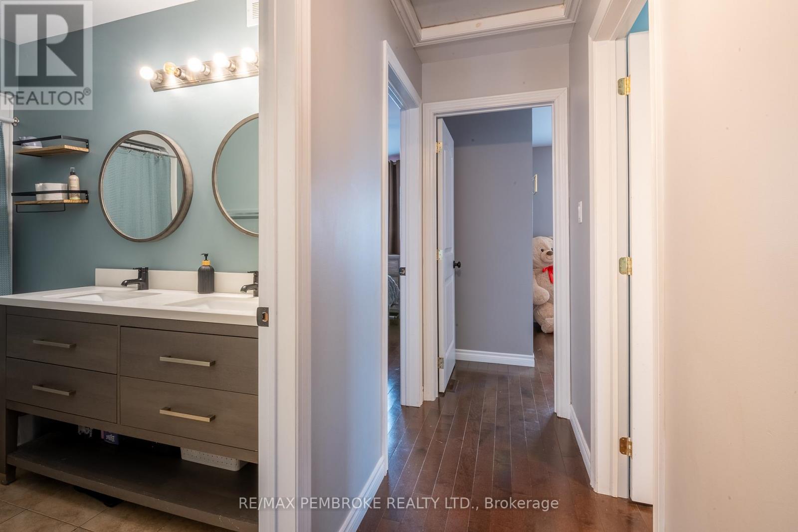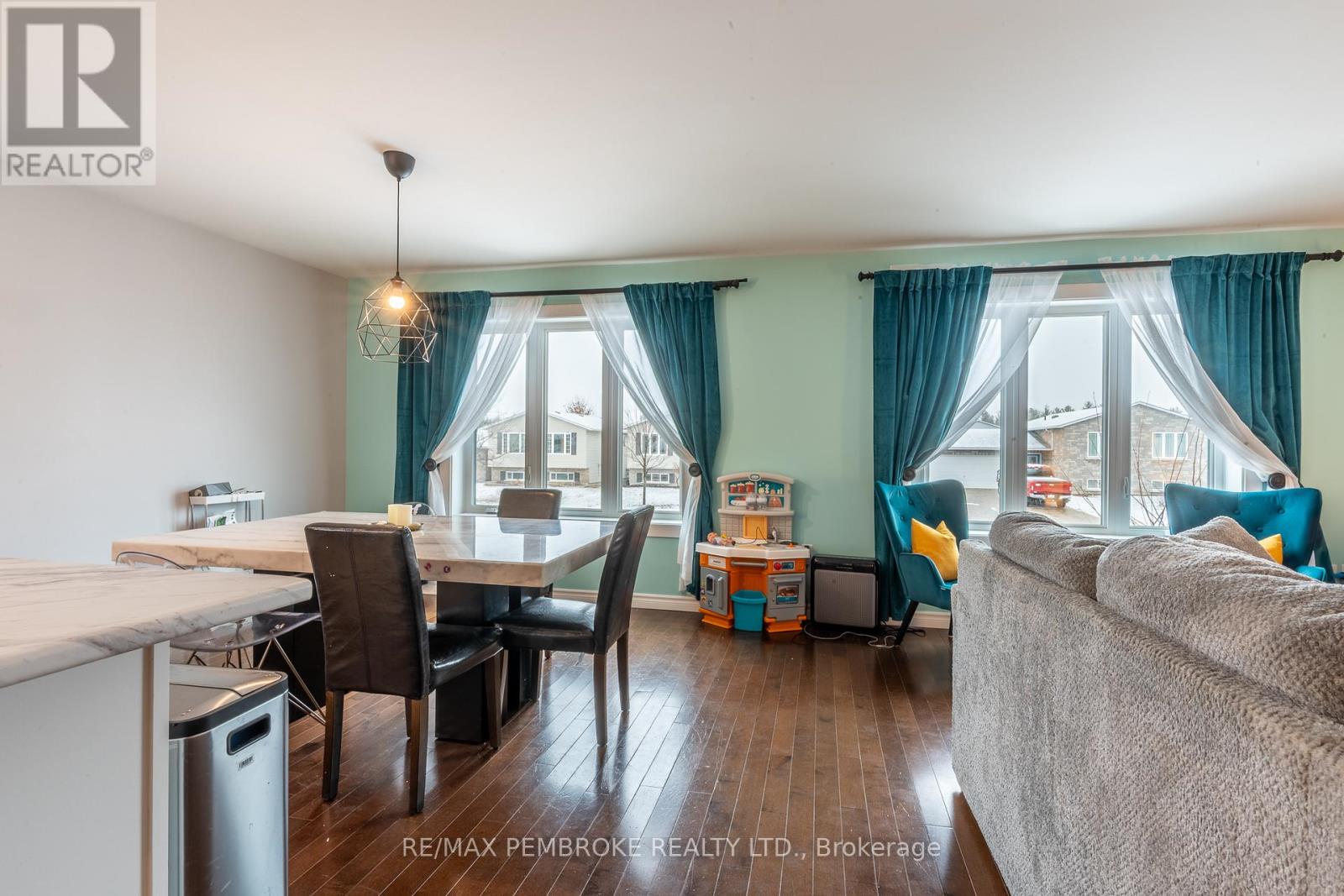 Situated in a family-friendly neighbourhood within the desirable Valour K-12 and St. Francis K-6 school zones, this well-maintained home offers space, function, and thoughtful updates in a location that is ideal for family living. Enjoy being within walking distance to Petawawa Terrace Park, the library, playgrounds, and everyday amenities. The main floor features 3 bedrooms, a large full bathroom with double vanity, and hardwood flooring throughout the living areas and bedrooms. The layout is both practical and welcoming, with added kitchen storage provided by a pantry closet in the hallway. Downstairs, the fully finished lower level offers even more living space with 2 additional bedrooms, a 3-piece bathroom, and a comfortable family room complete with vinyl plank flooring and stylish French doors. Outside, the fully fenced backyard is ready to enjoy with a stone patio off the foyer, garden bed, fire pit, and storage shed, while the double attached garage adds convenience and extra storage. This home also features several valuable recent upgrades, including a tankless hot water system installed in 2021, all front-facing windows replaced in 2023, front door and sidelight replaced in 2023, air exchanger installed in 2023, and garage door opener replaced in 2025. Kitchen appliance updates include the stove, over-the-range microwave, refrigerator, and dishwasher. Modern features such as an EV receptacle in the garage, Nest Google Smart Thermostat, wired doorbell camera, AI smart HVAC control, and keyless front entry make this home especially appealing for today's tech savvy buyers. A move-in ready property in a great school zone with room for the whole family. 24 hour irrevocable required on any written offer. (id:64974)