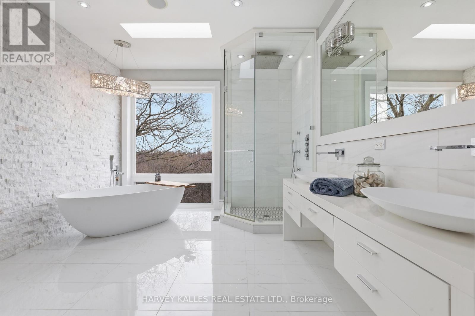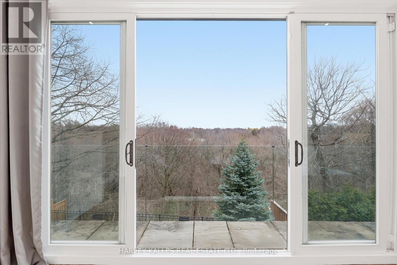 Welcome to 46 Ravenscrest Drive! An exceptional, custom-built residence nestled on a rare & highly coveted ravine lot in the heart of Etobicoke. This stunning 4+1 bed, 5 bath home offers the perfect blend of modern design, luxury finishes & breathtaking natural surroundings. Flooded with natural light, the open-concept layout showcases clean architectural lines, a spectacular wall of windows & multiple skylights that create an airy, inviting atmosphere throughout. A double-sided built-in fish tank elegantly separates the family room & kitchen, adding a unique focal point to the living space. The chef-inspired kitchen features a large island, high-end appliances & a walk-out to a private balcony overlooking the serene ravine... perfect for morning coffee or evening relaxation. The main floor is finished with sleek porcelain tile, while the second and third levels feature rich hardwood flooring, complemented by custom lighting & pot lights throughout. The expansive primary retreat is a true sanctuary, offering uninterrupted ravine views, a spacious walk-in closet & a luxurious spa-like ensuite. Generously sized secondary bedrooms provide comfort & flexibility for growing families. Designed for everyday living & entertaining, the backyard is a private oasis featuring an in-ground pool, lush green space, stone interlock dining area & multiple outdoor lounging zones. Fully fenced with direct ravine access, this property offers unparalleled privacy & tranquility. The fully finished basement elevates the home even further with a state-of-the-art projection home theatre, custom sectional seating, a dedicated fitness area, a fifth bedroom with ensuite & abundant storage space. Complete with a private garage & ample driveway parking for up to four vehicles, this home checks every box. Located in a prestigious, family-friendly neighbourhood where ravine properties are rarely offered, this is a truly unique opportunity to own a one-of-a-kind home with spectacular views! (id:64974)