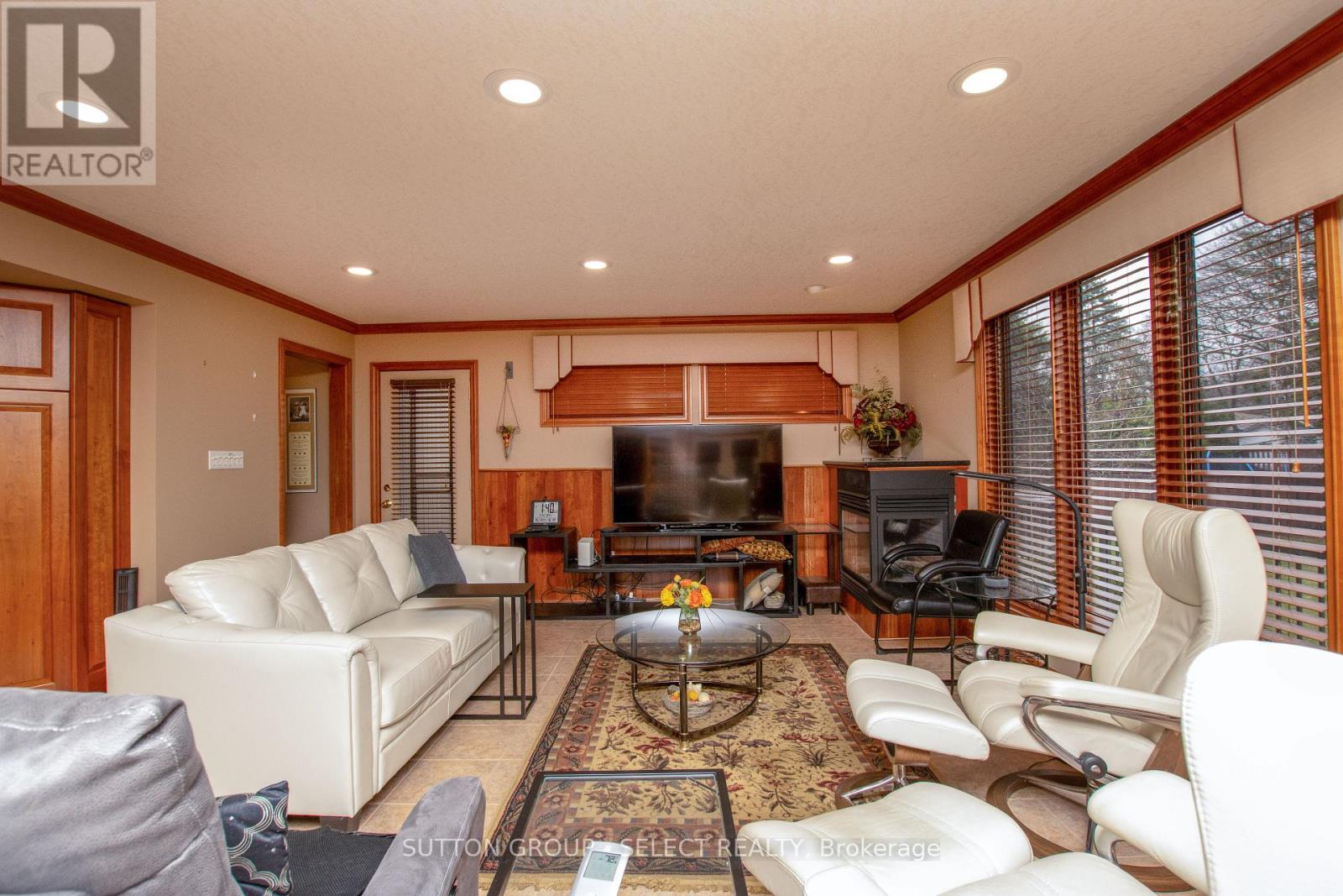 Welcome to 46 Scottsdale Street, a custom-built four-level side-split set on a rare half-acre lot in prestigious Lambeth Park Estates. Offered for the first time by the original owner, this home features a bright great room, formal living and dining rooms with gas fireplaces, and a spacious main-floor family room addition. Warm redwood accents and ceramic tile flooring add character throughout.The upper level includes three bedrooms, with the primary offering a cozy sitting/den area. A standout feature is the dedicated hot tub room, complete with its own three-piece bathroom-an uncommon luxury in this neighbourhood.Recent updates include three gas fireplaces (2019), an owned tankless water heater (2019), insulated vinyl siding (2019), a steel roof (2022), and an installed sprinkler system. The property also offers a double-car attached garage and a double-wide driveway with parking for at least six vehicles, providing excellent convenience for families and guests.Set among custom homes on large lots, this property offers exceptional space and privacy. With an asking price under one million dollars, it represents outstanding value in Lambeth Park Estates. (id:64974)