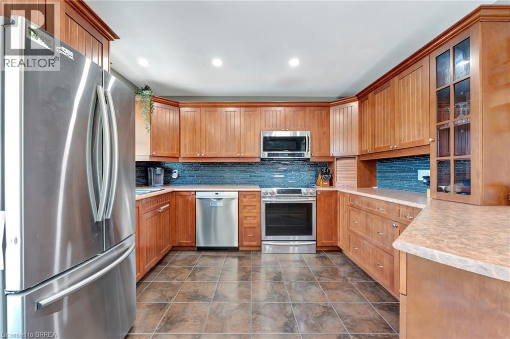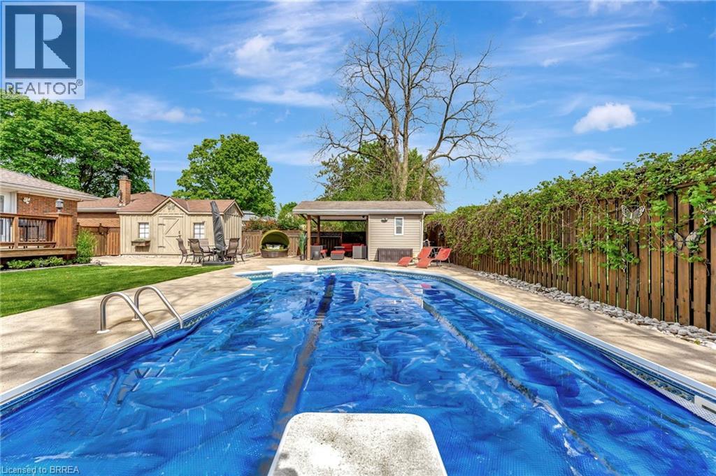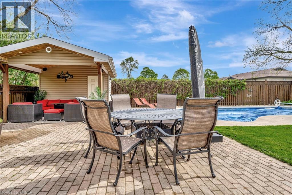 Welcome to 46 Todd Street – a quiet gem tucked away in Brantford’s Terrace Hill neighbourhood. This all-brick bungalow sits at the end of a dead-end street in the popular Wood Street area, offering peace, privacy, and a great sense of community. You’ll love how quiet it feels here—backing onto the open property of a church—yet you’re only minutes from all the north-end conveniences. Quick highway access, shopping, and restaurants are all just a short drive away, making this location hard to beat. Inside, you’ll find a warm and welcoming main floor with a bright living area centered around a cozy gas fireplace. The kitchen was updated a few years ago and offers plenty of space for cooking and gathering. Patio doors lead out to a sunny deck that overlooks your private backyard—complete with an inground pool, perfect for lazy summer days. There are two bedrooms and a full bath on the main level, plus two more bedrooms and another full bath downstairs, giving your family or guests lots of space. The lower-level family room is generous in size—great for movie nights, games, or just relaxing together. Out back, the pool house even has a convenient two-piece bath, so everyone can enjoy the outdoors comfortably. Whether you’re starting out, slowing down, or simply looking for a home with room to grow, 46 Todd Street offers a wonderful mix of comfort, convenience, and charm. It’s the kind of home that feels good the moment you walk in. Come see it for yourself and picture the easy, relaxed lifestyle waiting for you here. (id:64974)