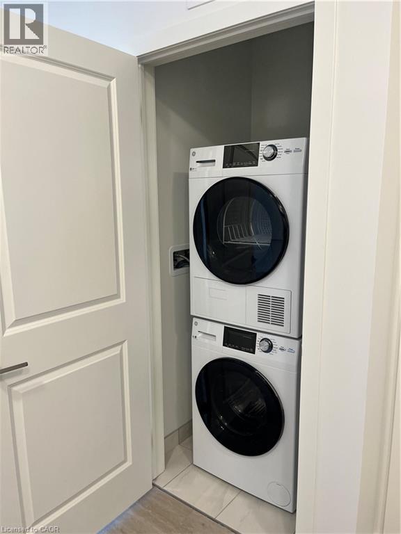 NEW; never been lived in! Lakeviews from this 1 BR condo, 6TH floor, just steps to ROOFTOP terrace, BBQ's & all building amenities. This MAUVE unit features breathtaking LAKEVIEWS & a PRIVATE BALCONY (560 sq ft total; 525 Interior, 35 Exterior) Welcome home to the NEW MUSE condominium built by award winning local builder DeSantis. Environmentally friendly geo-thermal heating/cooling means TENANTS only pay HYDRO/WATER above their rent. HEAT INCLUDED! Bright & inviting 9' Ceilings, natural light floods in through the wall to wall windows, stainless steel kitchen APPLIANCES, stackable washer/dryer INCLUDED INSUITE! Easy to maintain vinyl flooring in open space, tile flooring in oversized bathroom & laundry areas. WALKOUT to lovely BALCONY. Includes UNDERGROUND PARKING B33 & LOCKER STORAGE H4506. Stellar amenities include SMART Home technology (APP-based climate control, digital entry, energy monitoring, parcel locker etc), Wellness Room, Pet Spa/Wash Station, Party Room, Art Lounge, Roof Top 392 sq ft TERRACE with BBQ's & MORE! This DESIRABLE Stoney Creek location is steps to the WATERFRONT & LAKE ACCESS; peaceful walks & relaxation just beyond your doorstep. This neighbourhood is 2nd to none featuring easy access to Pickle ball courts, Confederation Park Trail into Burlington, tennis court, minutes to GO Train & easy QEW highway access. (id:64974)