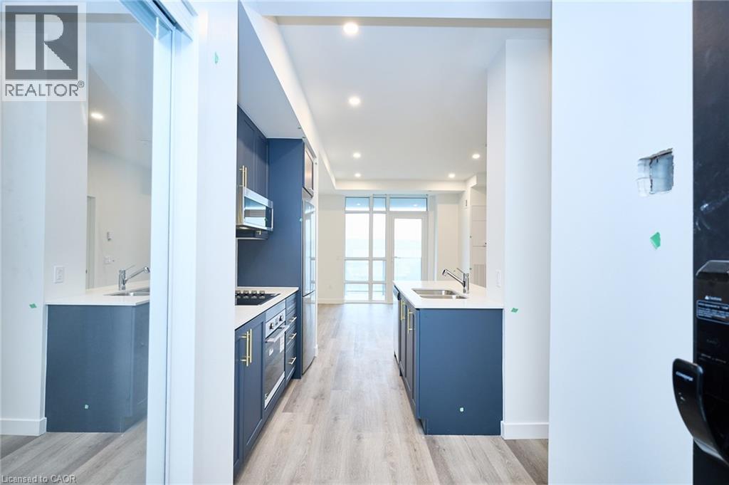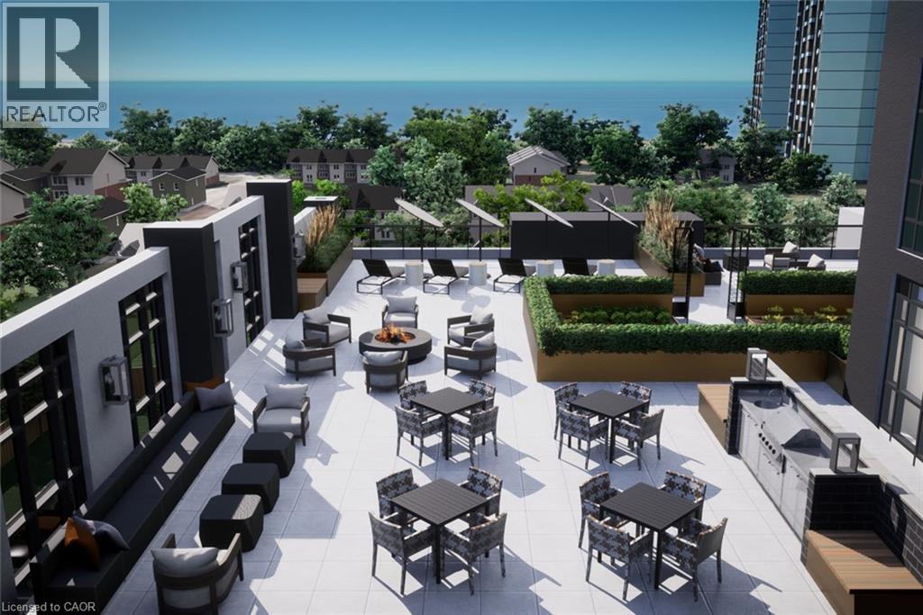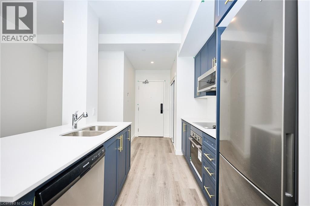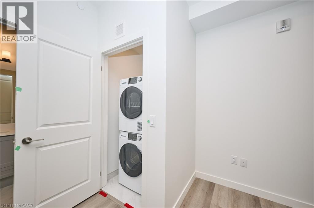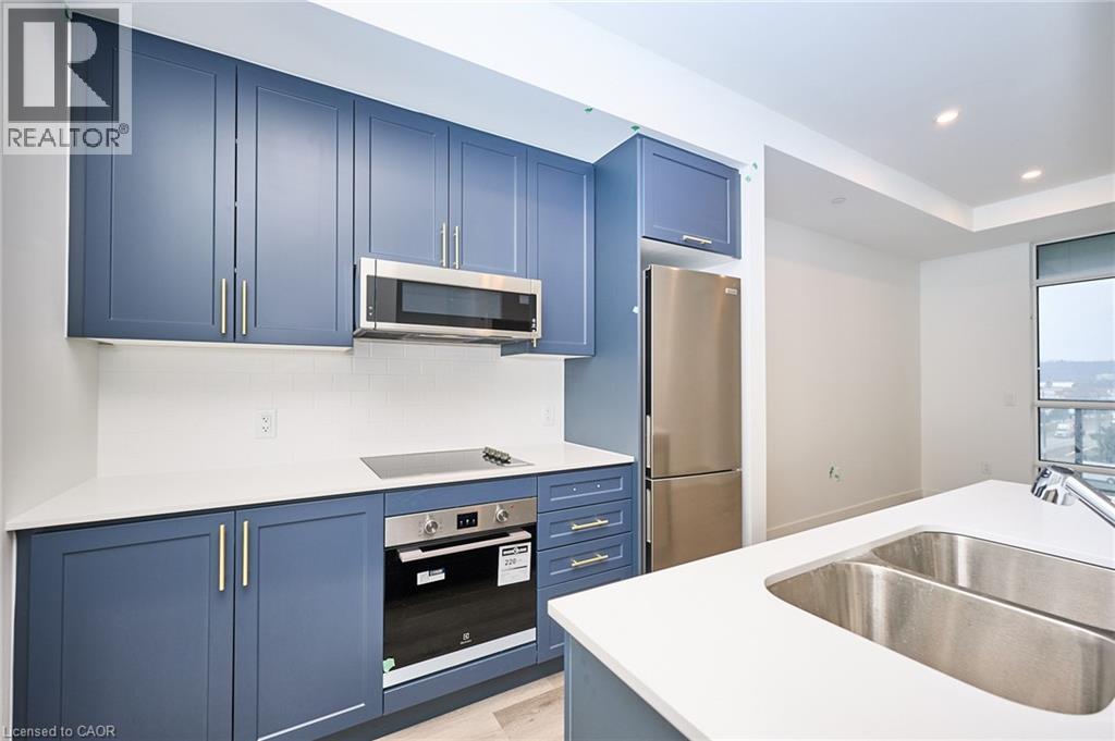 Be the first to enjoy this one-bedroom condominium in the heart of Stoney Creek. Offering nearly 600 sq.ft. of thoughtfully designed living space, this modern suite features a spacious open-concept layout ideal for both everyday living and entertaining. The stylish kitchen is highlighted by quartz countertops, designer-inspired cabinetry, stainless steel appliances, ample storage, and a large island, seamlessly connecting to the living area and extending to a generous private balcony. The bright bedroom and four-piece bathroom, and the convenience of in-suite laundry adds everyday ease. Residents will enjoy an impressive collection of amenities, including a pet spa, lounge, art gallery, and an outdoor BBQ and entertaining area. Ideally located just minutes from Costco, major shopping, parks and quick access to the QEW, this condo offers exceptional convenience for commuters and lifestyle-focused buyers alike. Underground parking and storage locker included. (id:65010)