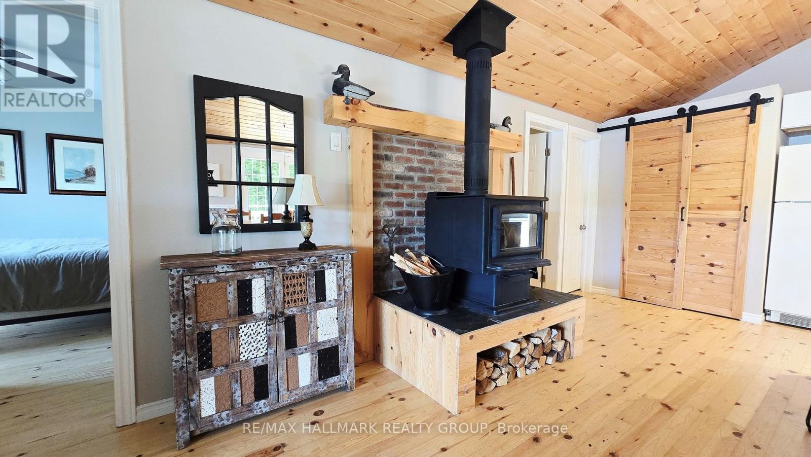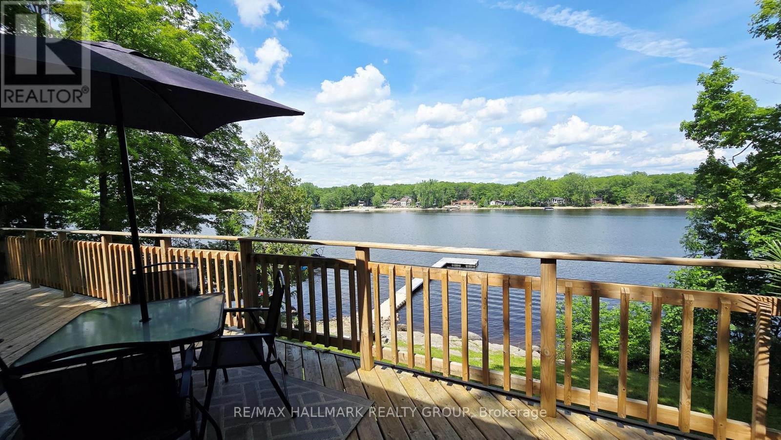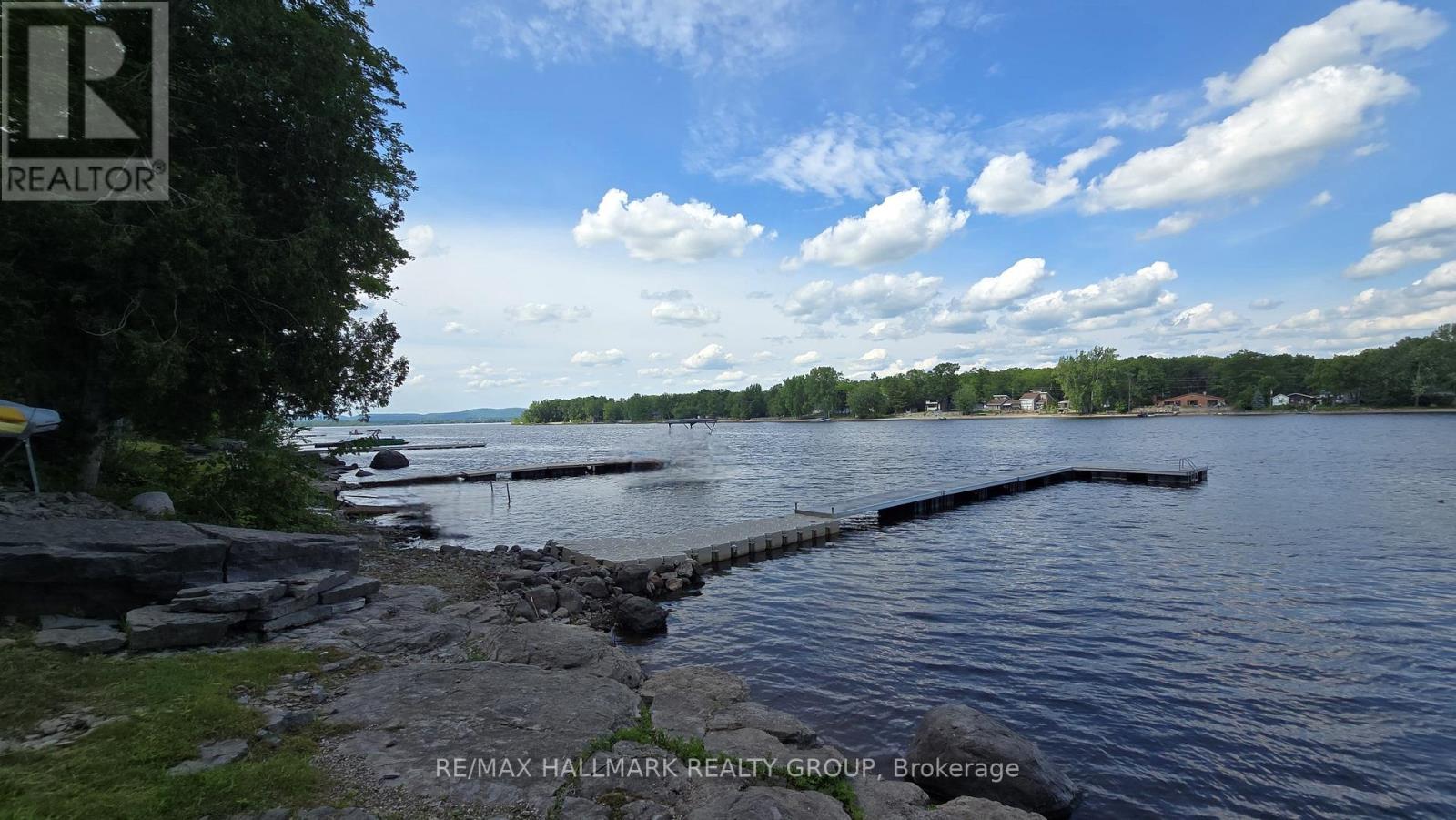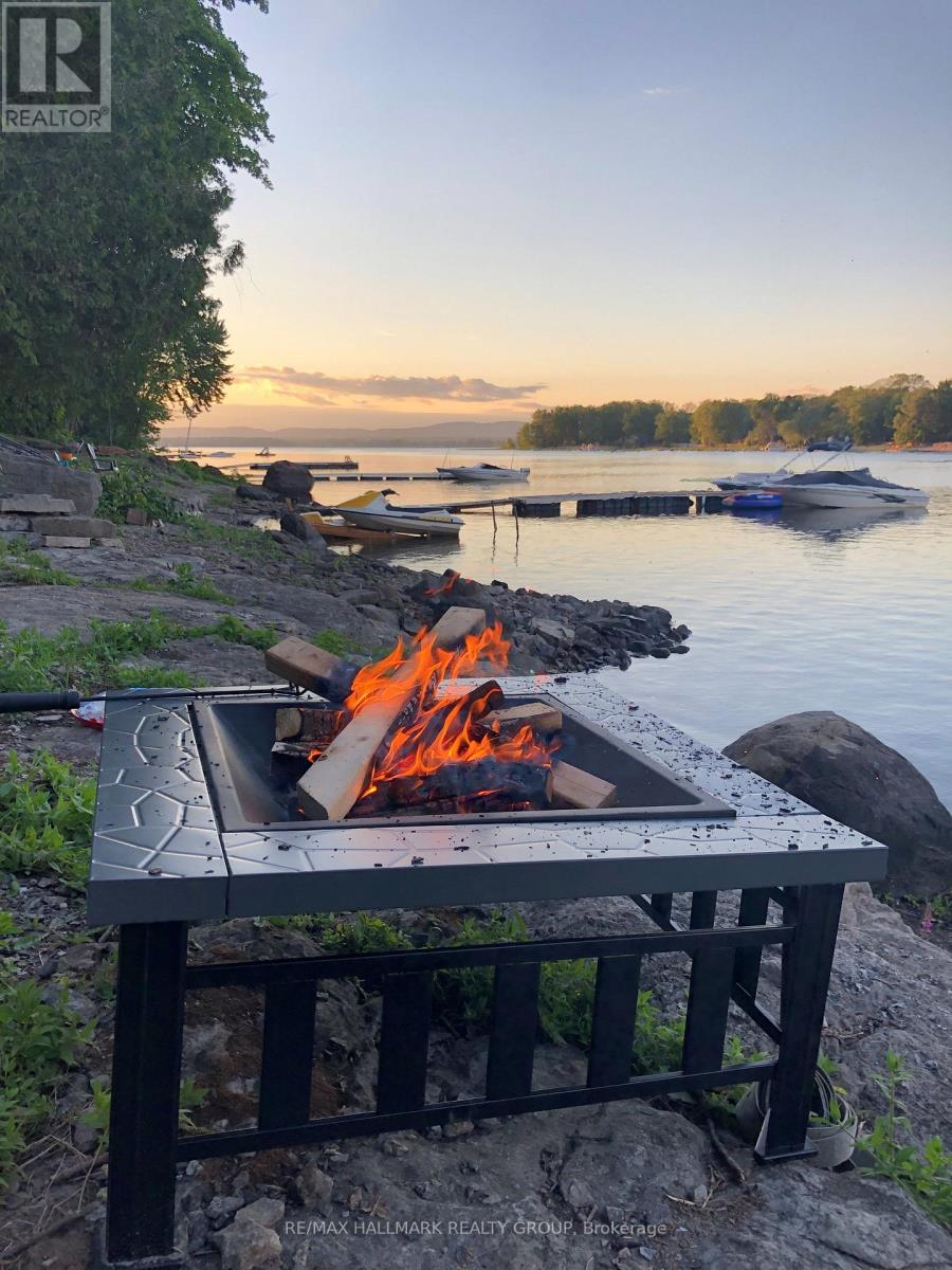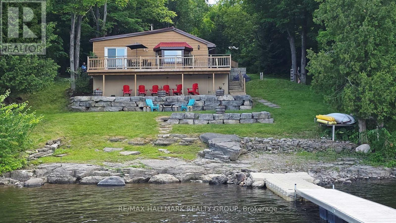Welcome to an enchanting Ottawa Riverfront retreat on Buckham's Bay, boasting 100 feet of pristine shoreline great for docking a large boat and clear deep water for swimming! This cozy and delight 2-bedroom bungalow is the perfect all-year-round escape, featuring an inviting wrap-around deck with breathtaking views. The open-concept interior highlights pine flooring. Enjoy the warmth of a woodstove during chilly days & winter nights, complemented by kitchen with breakfast bar, spacious dining area open to the living room with bow window with stunning water views. Laundry closet next to kitchen. The Primary Bedroom opens to the waterside deck, ideal for tranquil moments & morning coffees. Updates include landscaping, retaining wall, footings & metal roof (2021), pine flooring & interior paint & some finishings (2021), propane furnace (2019), submersible well pump with heated line (2021) and septic system (2009). Includes appliances, dock and some furnishings. Immerse yourself in endless outdoor activities, from fishing, ice fishing and water sports to BBQs and stargazing by the bonfire. Close to the city, Kanata's High Tech Sector, and the DND campus, this retreat combines privacy with convenience to city amenities! (id:64974)