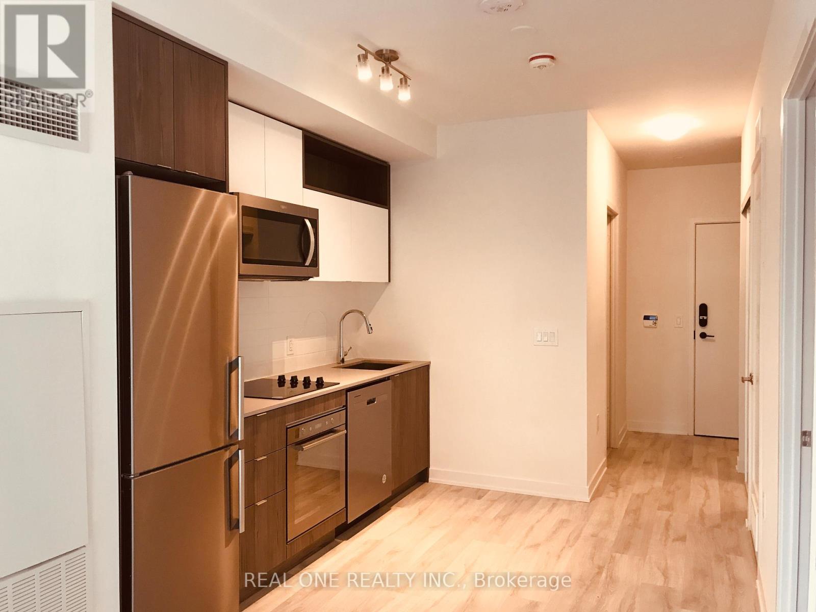 Welcome to Time & Space by Pemberton, a modern 2-year-old residence in Toronto's vibrant waterfront community. Ideally located at Front St E & Sherbourne, just steps to the Distillery District, St. Lawrence Market, TTC, Union Station, and Sugar Beach. This bright and functional 1+Den, 1 Bath suite with balcony offers a well-designed open-concept layout featuring 9-ft smooth ceilings, floor-to-ceiling windows, and premium 7" wide laminate flooring throughout. The contemporary kitchen is equipped with quartz countertops and integrated stainless steel appliances, seamlessly flowing into the living and dining area-perfect for both daily living and entertaining. The spacious den provides excellent flexibility, ideal as a home office or can be used as a second bedroom. Enjoy pleasant courtyard views from your private balcony. Residents enjoy access to exceptional amenities, including an infinity-edge pool, rooftop cabanas, outdoor BBQ area, fully equipped gym, yoga studio, party room, and games room. Heat and water included. Located in one of downtown Toronto's most desirable neighbourhoods, with everything you need just steps away. (id:64974)