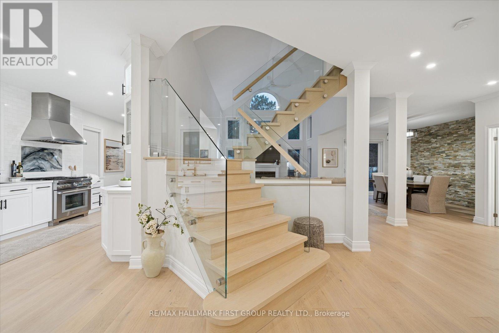 Step into one of Pickering's most distinguished homes, located in the highly sought-after Rosebank community near the Rouge and Lake Ontario. This impressive all-brick, two-storey residence offers timeless architecture and thoughtful design in one of the city's most exclusive neighbourhoods. Surrounded by mature landscapes, waterfront trails, and conservation lands, the setting provides a rare blend of privacy, natural beauty, and convenience. Inside, the home showcases quality craftsmanship throughout, with high-end appliances, refined finishes, and a striking glass staircase that anchors the main living space. The second level features four well-proportioned bedrooms along with a dedicated office, ideal for today's work-from-home needs. The fully finished open-concept basement extends the living space further, offering an additional bedroom, a three-piece bathroom, and generous flexibility for recreation, guests, or extended family living. Set within close proximity to the Rouge, Lake Ontario, waterfront and nature trails, this residence delivers an exceptional lifestyle in a location known for its prestige, and tranquility. A rare opportunity to secure a thoughtfully designed home in one of Pickering's most established and desirable enclaves (id:64974)
