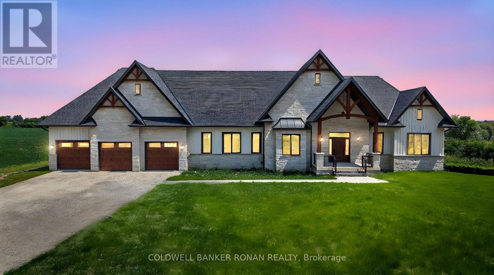 Welcome to your dream home! This sprawling bungalow is just under 3000 square feet with a 3 car garage. Nestled in a serene and private area of Adjala, this breathtaking new build offers 1.5 acres of tranquility with stunning views. The open-concept layout seamlessly connects the kitchen, dining, and family room, creating an inviting space perfect for both relaxation and entertaining. The kitchen features modern finishes and a spacious design, ideal for family gatherings and culinary adventures. The family room boasts large windows that flood the space with natural light, while a cozy gas fireplace adds warmth and ambiance. Indulge in the comfort and elegance of the primary bedroom. Featuring a 5 piece ensuite and spacious walk-in closet, you'll have plenty of room for all your wardrobe essentials. Convenience is at your fingertips with main-floor laundry, office space and the expansive 1,400 sq ft garage provides plenty of room for vehicles and storage, with direct access to the basement. Step outside to the covered patio and enjoy the peace and quiet of your surroundings a perfect spot for outdoor dining, morning coffee, or simply taking in the view. (id:64974)