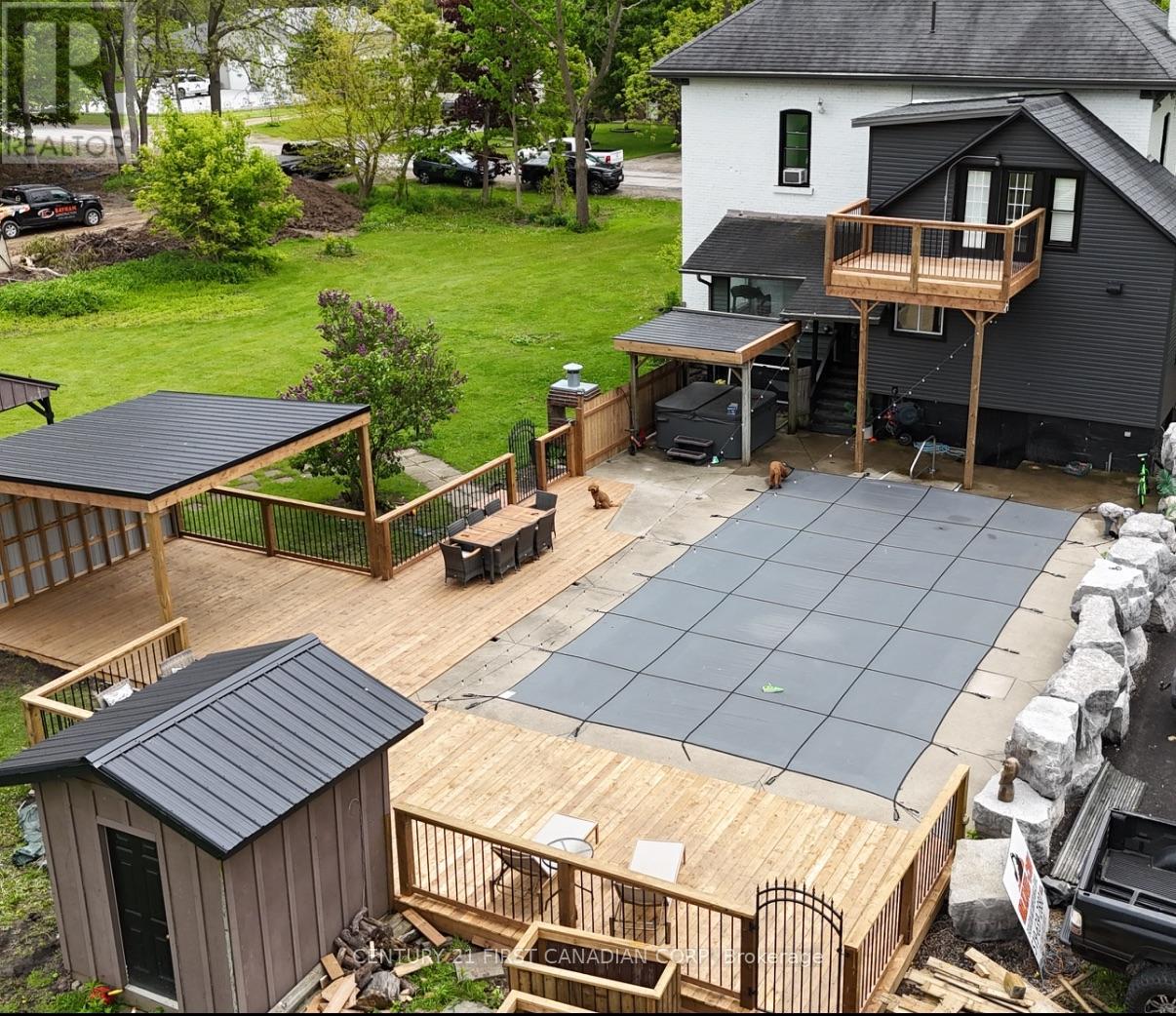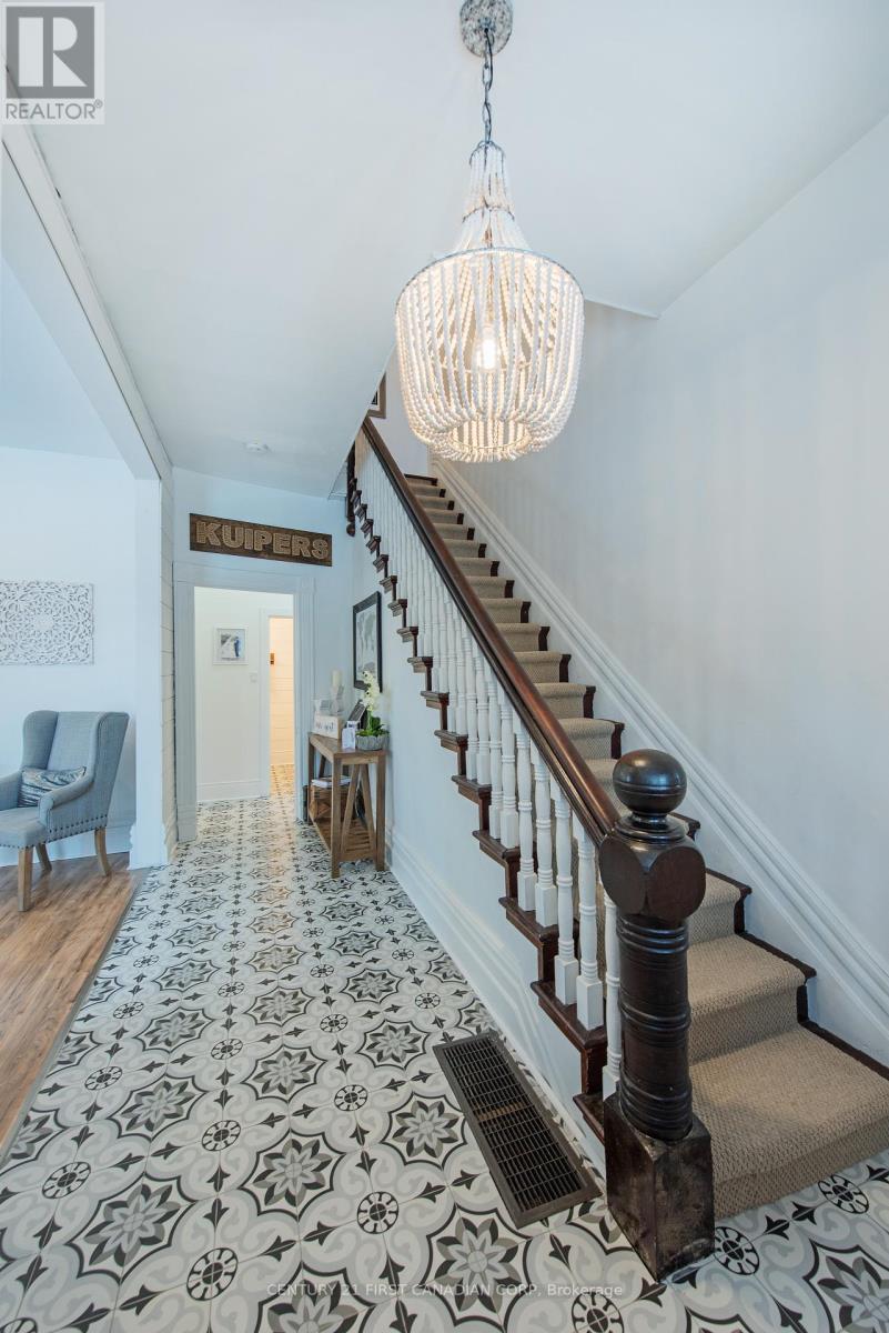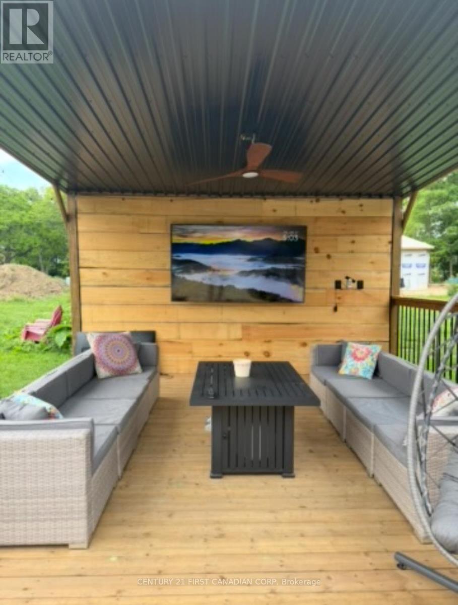 Charming renovated country home in a great location close to the St. Thomas Airport and the coveted New Sarum School District on just under 2 acres of lush grounds with 4 bedrooms, 2.5 bathrooms, in-ground pool, hot tub and bonus out-building is now ready for new owners! The interior was tastefully renovated in 2020/21 with the exterior completed in 2025. This property blends classic architectural details with contemporary updates for effortless living! Step inside to discover a spacious and thoughtfully designed interior featuring an open concept chef's custom kitchen with gas cook-top, wall oven/microwave, high-end stainless steel appliances, pot filler, quartz counter-tops, island, shiplap ceiling with sound system, dining room and living room with fireplace. Walk out from the kitchen to a big side deck to relax while you BBQ. Staying on the main level, there is an added 2-piece bathroom, a den area for kids to play and a large family room. Heading upstairs, you will find 4 generous bedrooms and 2 well appointed 4-piece bathrooms with one being an ensuite to the primary bedroom that has a walk-out to a balcony overlooking the pool and grounds. Laundry is conveniently located on the 2nd level with all the bedrooms. There is a door with stairs leading up to the attic for more storage or potentially add a 5th bedroom. The water tank is owned with 60 gal capacity, 2 sump pumps added in the basement and electrical panel updated to 200amp service. Natural gas hook-up done in 2020 with internet fibre optics in 2021. Some other recent updates include all-new windows, spray-foam basement walls, paved laneway holding over 10 cars, armour stone landscape, exterior paint, hot tub replaced as well as pool liner replaced, added fire-pit, kids play area and backyard deck with covered gazebo completed in 2025. The out-building can be converted to a full gym or workshop. Don't miss this rare opportunity to own a piece of serenity in Central Elgin's countryside! (id:64974)