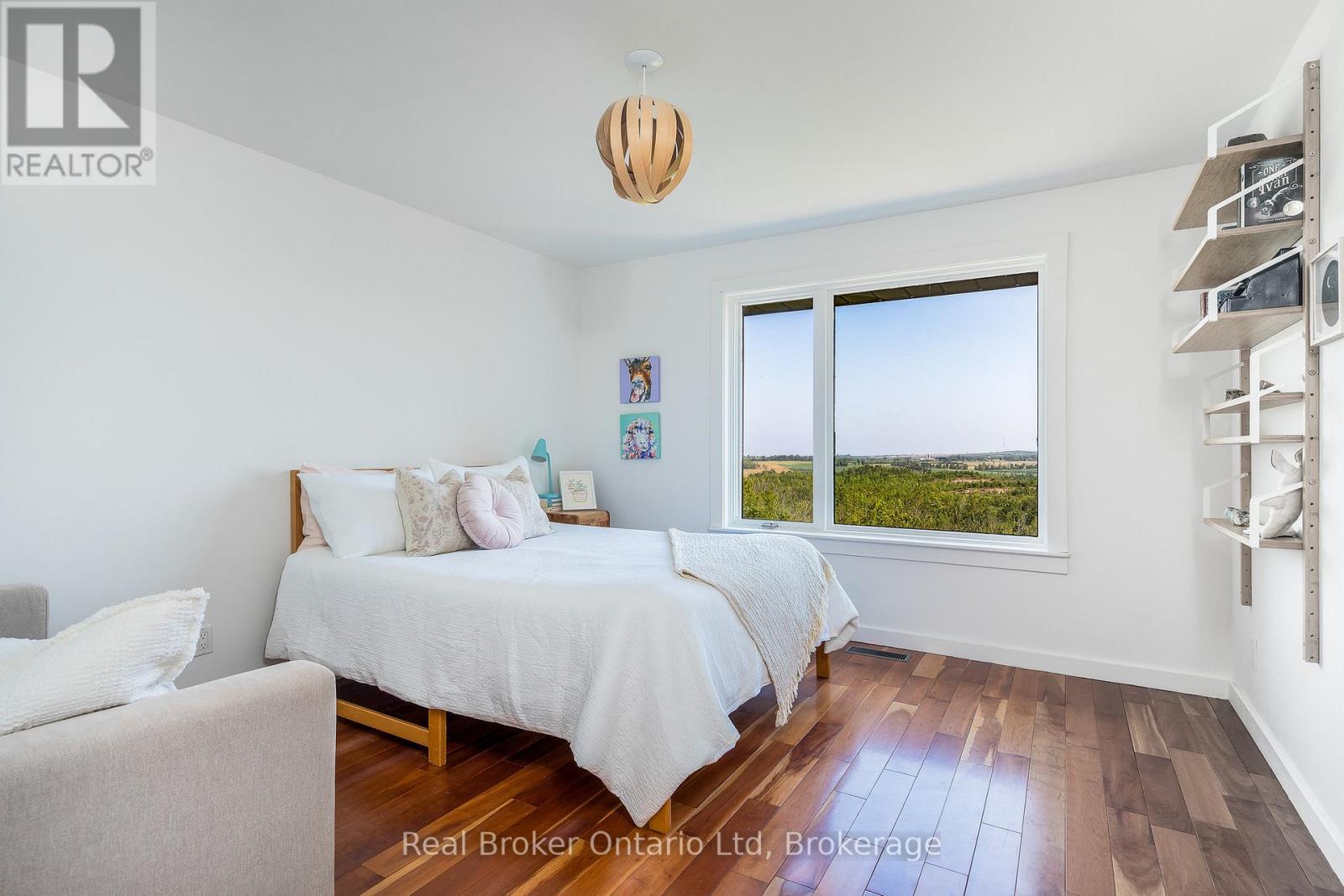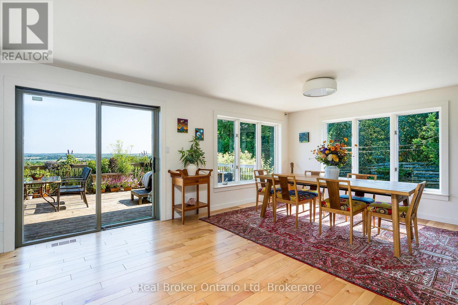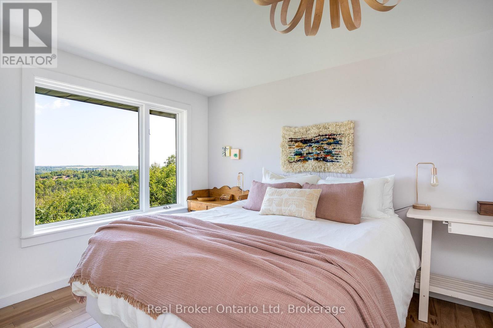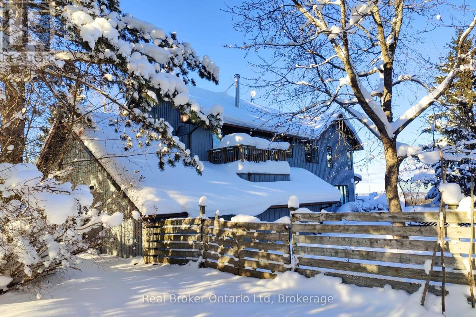 The moment you turn in, you can feel it - you've arrived somewhere unlike anywhere else. On a quiet country road, a long winding driveway leads to a secluded retreat. More than sixty acres of fields, rolling hills, fruit trees, and forests unfold in every direction, threaded with private trails to wander. In the distance, the shimmer of Georgian Bay. Sunrises that take your breath away, star-filled skies at night, and views that feel limitless. At the heart of it all is a one-of-a-kind healthy home, lovingly restored using biological building principles and natural, eco-friendly materials. Solid hardwood floors run throughout, and natural light fills every corner of this four-bedroom, four-bathroom home. A wood-burning fireplace anchors the main living space, adding both warmth and atmosphere year-round. The kitchen is spacious and inviting, designed for gathering, while the bathrooms are dreamy in every way. The primary suite is a retreat of its own, complete with a four-piece ensuite, walk-in closet, lounge for relaxing, and a deck overlooking the property - an ideal spot for quiet evenings or comfortably welcoming in-laws and guests. From every room, you'll take in stunning views of the land and valley beyond. In winter, the land becomes your own private playground. Step outside for snowshoeing or Nordic skiing along the property's trails, or spend the day on the slopes at Beaver Valley, Georgian Peaks, and nearby ski hills. Even in the quiet of winter, the views remain expansive and the setting feels deeply peaceful. Practicality meets purpose with geothermal heating and cooling for efficiency, a two-car garage with a built-in workshop, and generous storage throughout. Though it feels worlds away, it's just minutes from Thornbury, Meaford, Georgian Bay, top schools, and local farm stores. It's a home that feels good to live in, inside and out. Simply put, this place is special. (id:64974)