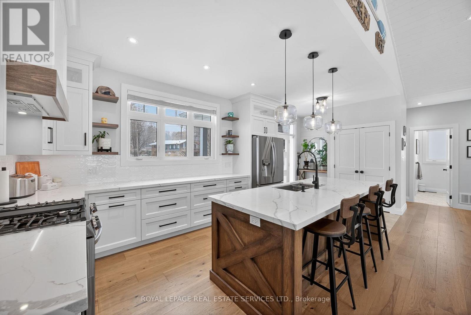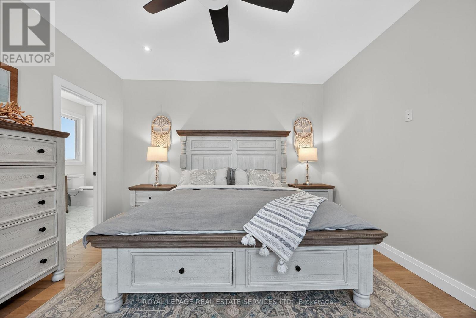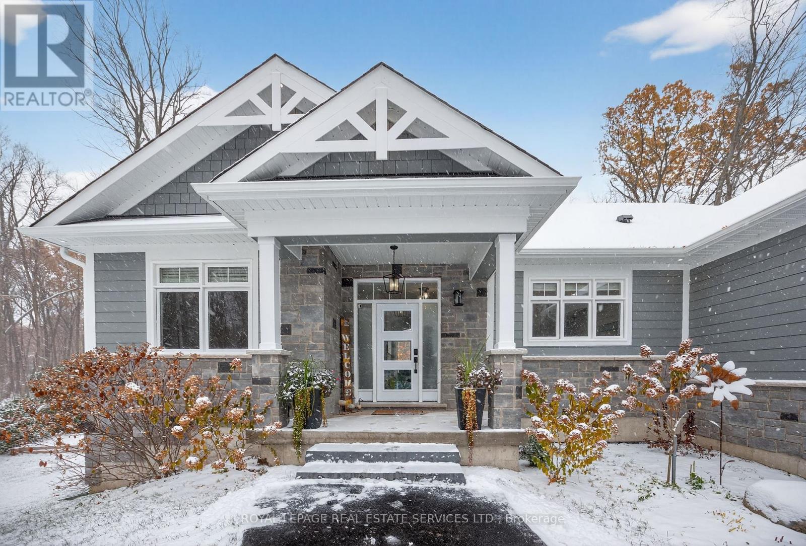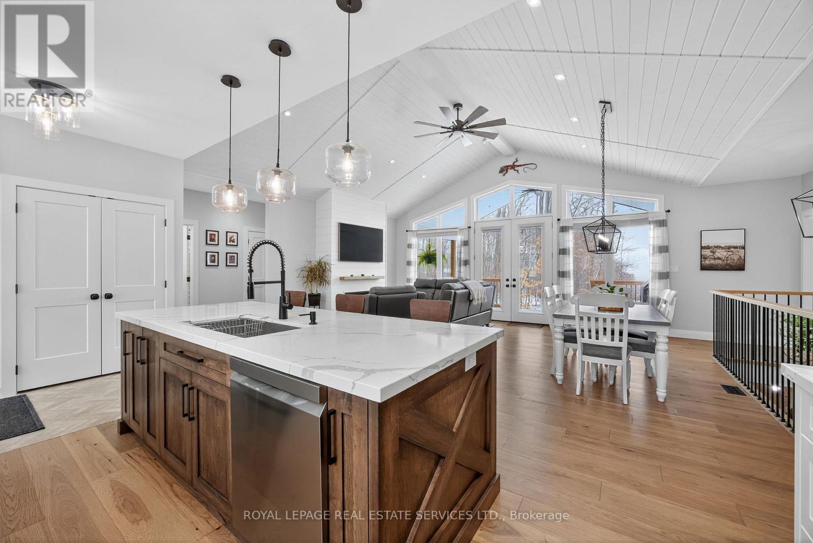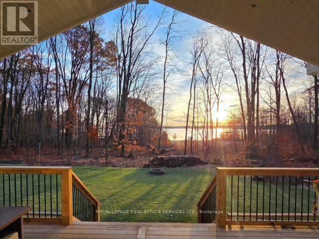 Welcome to this beautifully crafted custom 3-bedroom, 2-bath home offering 1,563 sq. Ft. of finished living space, with a full unspoiled basement ready for your personal touch. Set on an expansive 97 ft x 218 ft lot with year-round water views, this property blends comfort, elegance, and nature perfectly. Wake up to a stunning sunrise over the water every morning-an inspiring and serene way to start each day. Vaulted ceilings, engineered hardwood floors, a gas fireplace, and high-end finishes create a bright and inviting atmosphere throughout. The custom kitchen, featuring quartz counters and a spacious island, is ideal for cooking, hosting, and gathering with family & friends. Step out to the covered porch to enjoy peaceful views in every season. A private trail leads directly to the sandy beach, playground, and the Midland/Simcoe County trail system, with the marina and public boat launch only a short walk away. With hardboard siding, an elegant stone skirt, a newly paved driveway, and newly planted cedars for added privacy, this home delivers both style and ease of living. A warm and welcoming retreat in one of Midland's most desirable pockets. (id:64974)