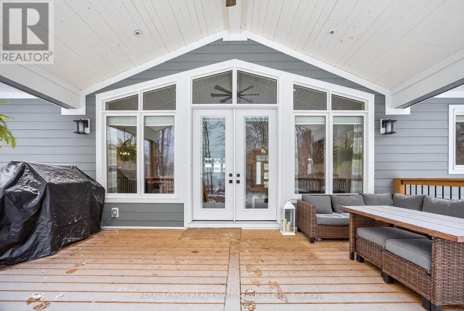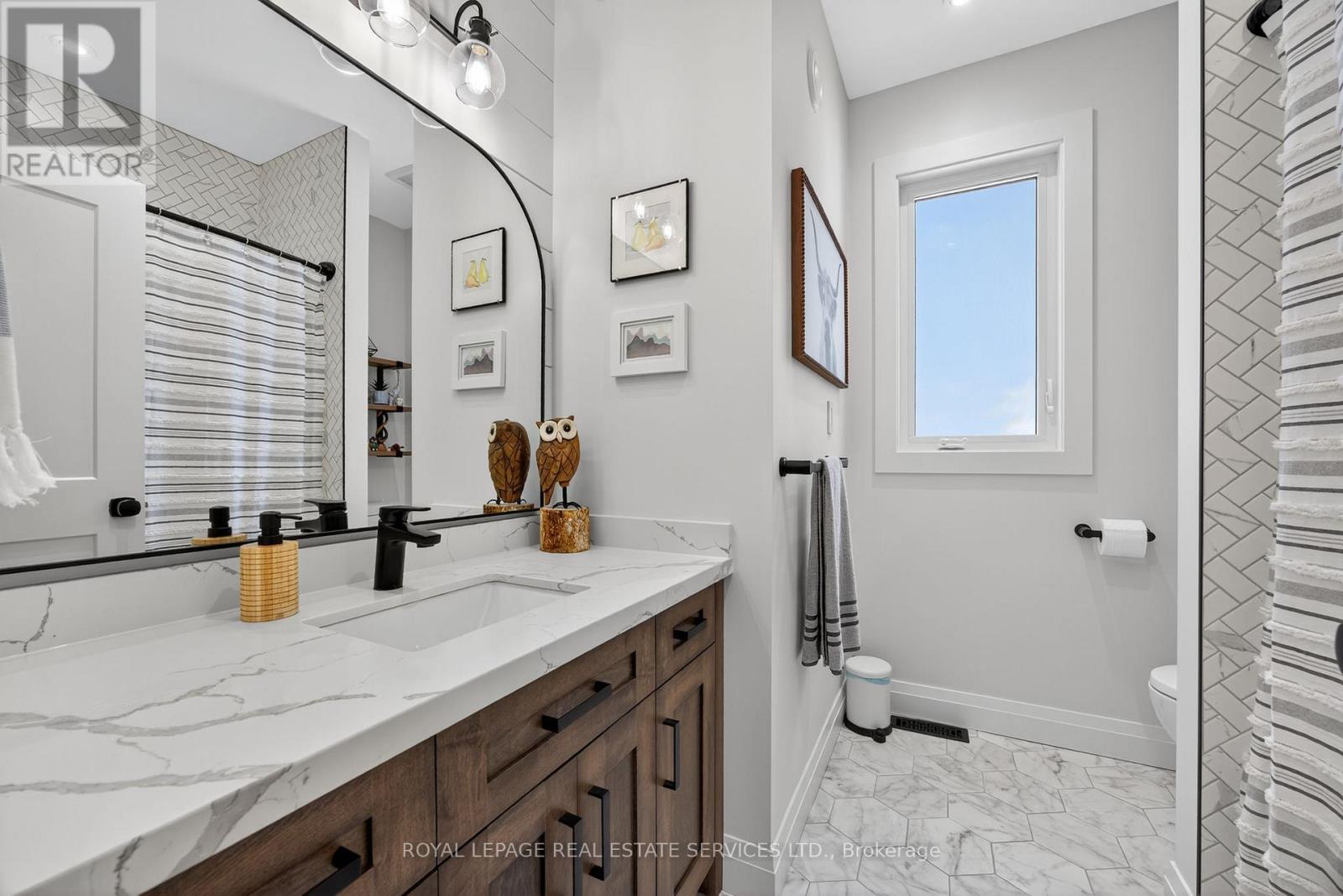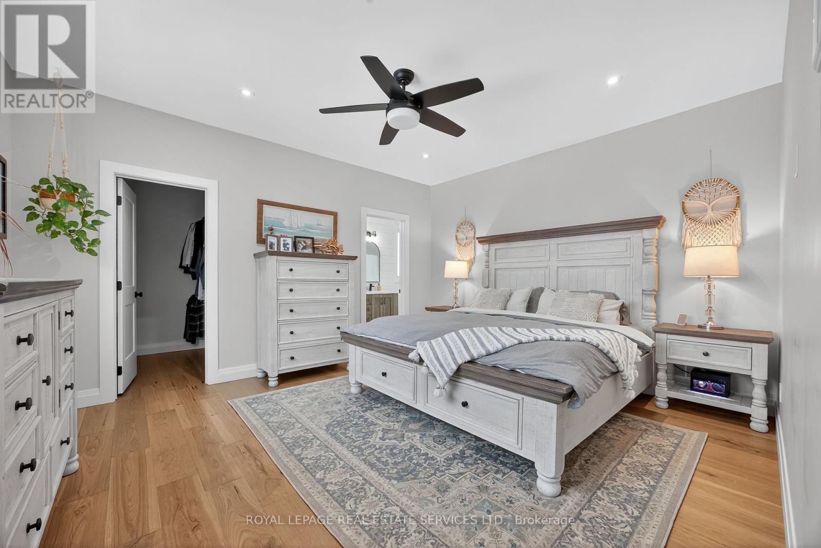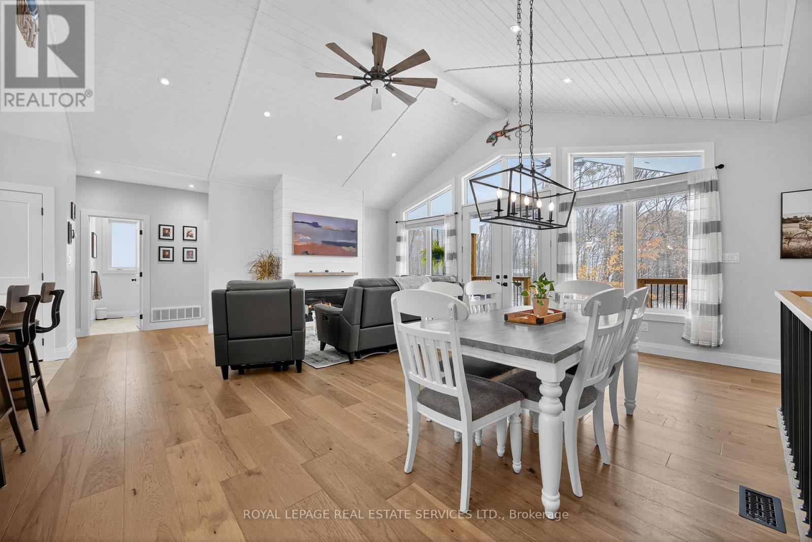 Welcome to this beautifully crafted custom 3-bedroom, 2-bath home offering 1,563 sq. Ft. of finished living space, with a full unspoiled basement ready for your personal touch. Set on an expansive 97 ft x 218 ft lot with year-round water views, this property blends comfort, elegance, and nature perfectly. Wake up to a stunning sunrise over the water every morning-an inspiring and serene way to start each day. Vaulted ceilings, engineered hardwood floors, a gas fireplace, and high-end finishes create a bright and inviting atmosphere throughout. The custom kitchen, featuring quartz counters and a spacious island, is ideal for cooking, hosting, and gathering with family & friends. Step out to the covered porch to enjoy peaceful views in every season. A private trail leads directly to the sandy beach, playground, and the Midland/Simcoe County trail system, with the marina and public boat launch only a short walk away. With hardboard siding, an elegant stone skirt, a newly paved driveway, and newly planted cedars for added privacy, this home delivers both style and ease of living. A warm and welcoming retreat in one of Midland's most desirable pockets. (id:64974)