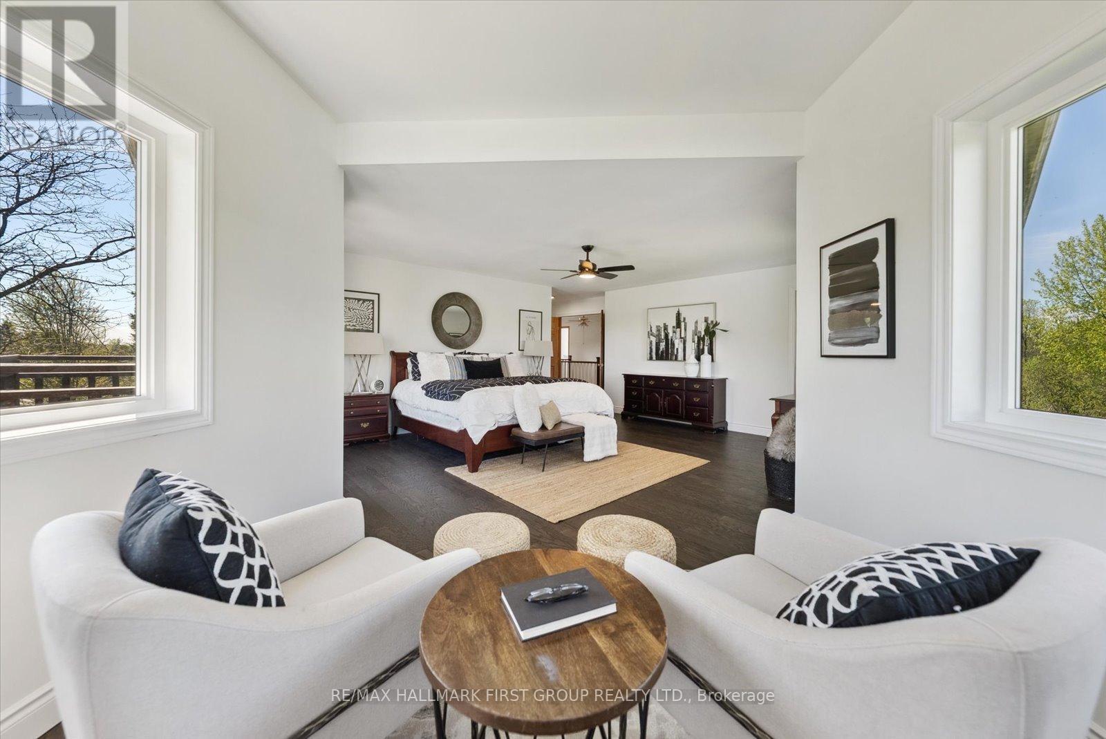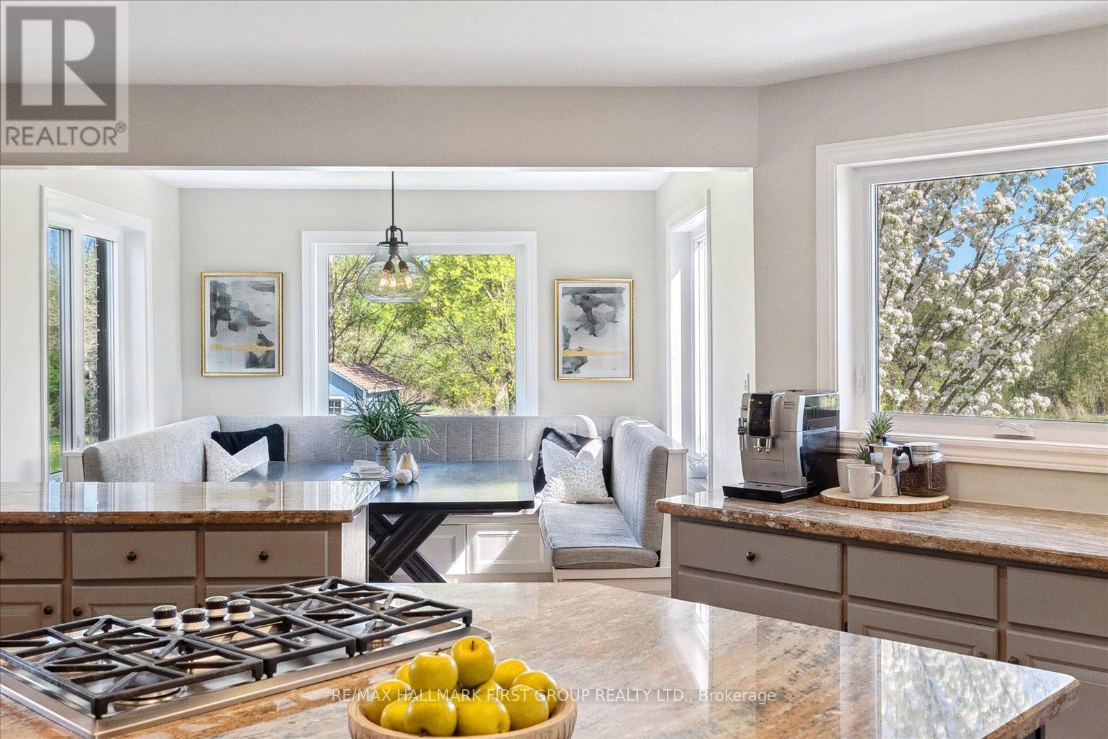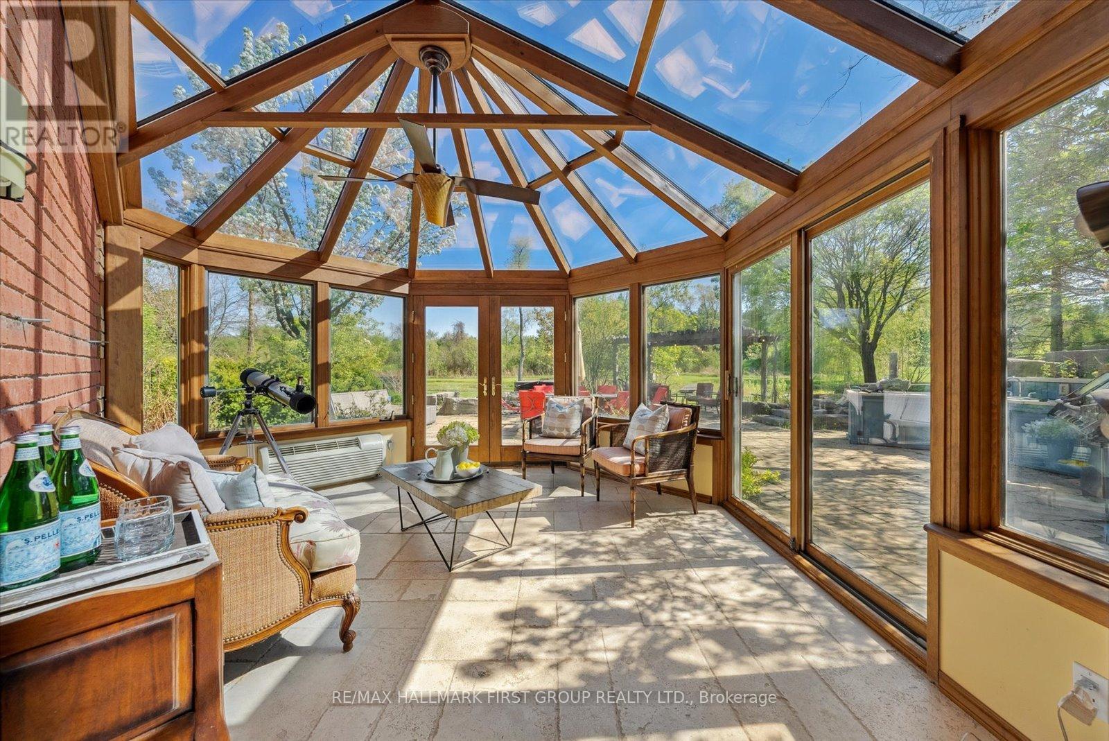 Welcome to refined country living on 15 acres of private, picturesque countryside in rural Pickering. This custom-built 4-bedroom estate offers nearly 6,000 sq ft of thoughtfully designed living space, blending warmth, comfort, and timeless luxury-just minutes from modern conveniences. The main floor is designed for both everyday living and effortless entertaining, featuring hardwood floors, expansive windows, and sweeping views of the surrounding landscape. The dining area is warm and inviting, while the chef-inspired kitchen boasts built-in double ovens, a gas cooktop on the centre island, and seamless flow into the sunken living room. A wood-burning fireplace anchors the space, creating a cozy yet elevated atmosphere. A private main-floor office with custom built-ins provides the perfect work-from-home retreat. Upstairs, the primary suite is a private escape, complete with a walk-in closet, spa-like ensuite with soaker tub and separate shower, and a walkout to a private balcony overlooking the fully stocked trout pond. Three additional bedrooms offer generous space for family, guests, or flexible use. The full walk-out basement extends the living space with a large recreation area, sound-proof media room, kitchenette, and access to a bright glass-enclosed sunroom-ideal for year-round enjoyment. Notable upgrades include a new high-efficiency heat pump, all new high-end Energy Star windows in a custom colour, stained fibreglass entry door system, garden doors, and retractable Mirage screens. The outdoor setting is beyond impressive, featuring an in-ground pool, Arctic Spa hot tub, electronic gated entry with outdoor lighting, apple trees, a fully stocked trout pond, and acres of open space to explore. Peaceful and private, yet only 7 minutes to the 407.A rare opportunity to enjoy space, privacy, and lifestyle-without compromise. (id:64974)