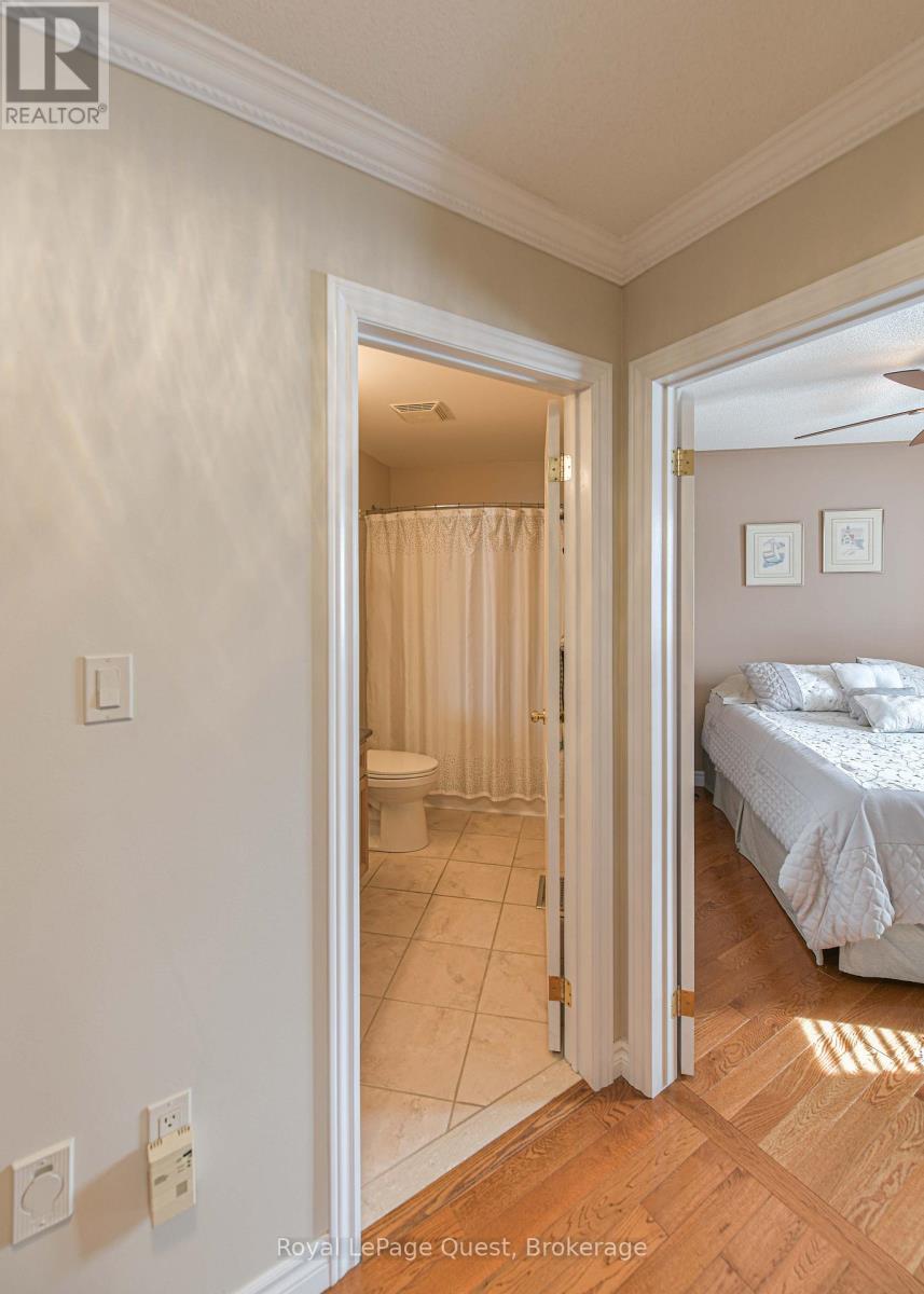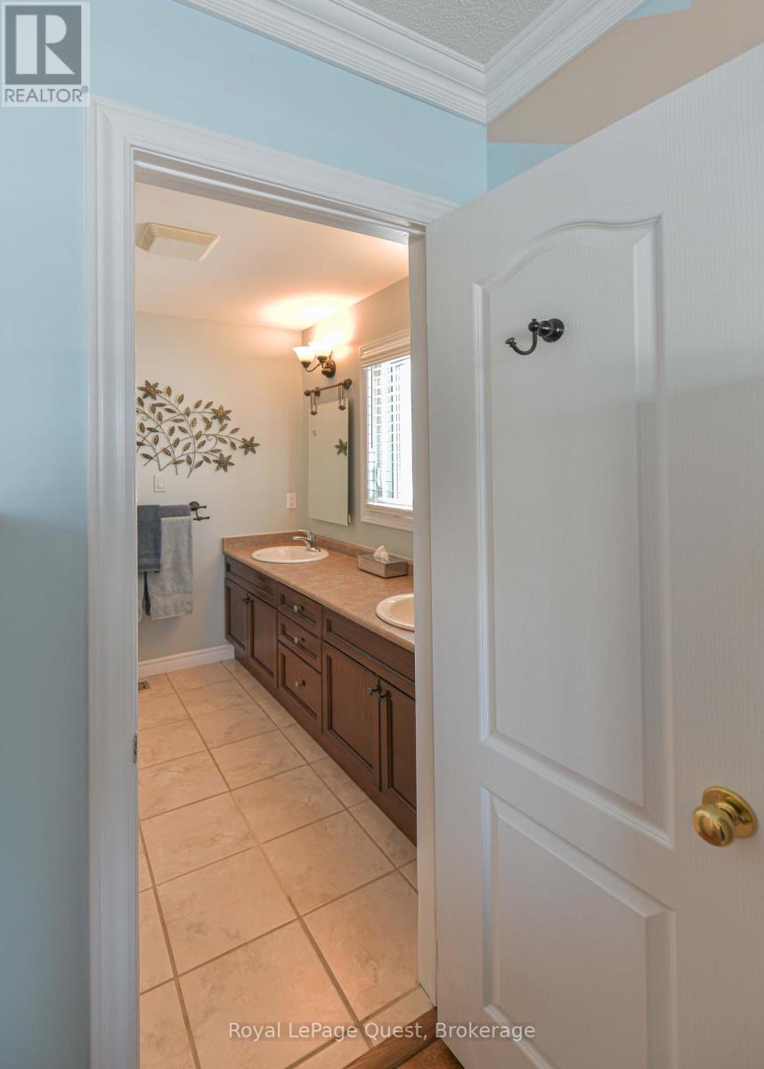 Discover the perfect blend of rural serenity and modern comfort in this stunning 1,400 sq. ft. all-brick bungalow, perfectly situated on a premium 3/4 acre lot backing onto a picturesque equestrian farm. Located in an established neighborhood just minutes outside of Orillia, this home offers a rare lifestyle of privacy and sophistication. The main floor features gleaming hardwood floors and an open-concept kitchen and living area anchored by a cozy gas fireplace. Enjoy your morning coffee in the dining nook overlooking a large private deck and expansive views of the horse farm. This level includes three spacious bedrooms, featuring a primary suite with a full ensuite, plus a second full bathroom. All bathrooms and kitchen have heated floors. The fully finished lower level dramatically expands the living space with a third full bath and a second gas fireplace, ideal for a home theater or gym. Car enthusiasts and hobbyists will love the massive triple-car garage with convenient inside entry. With its solid brick construction, premium lot, and proximity to city amenities, this property is a rare find that combines the peace of the country with the convenience of the city. (id:64974)