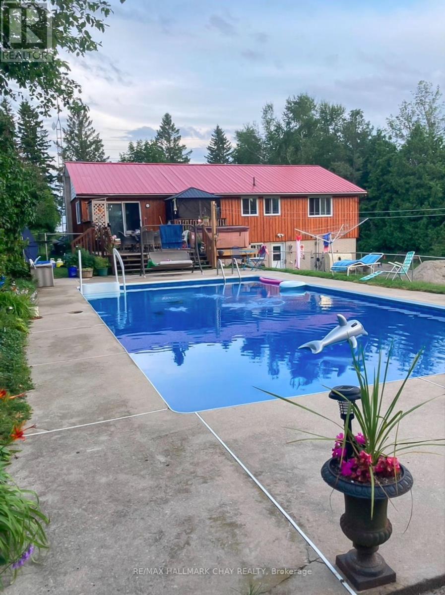 10-acre country property, featuring multiple separate living areas, with separate entrance to the basement and a loft apartment above the detached garage, just minutes to Thornton and Highway 400, offering quick, convenient access to the GTA! This versatile property features an in ground pool, pond and a detached shop with a self-contained apartment complete with kitchen, one bedroom, and spacious living area - ideal for extended family, guests, or supplemental income potential. The main residence is a walkout bungalow with a functional layout and significant opportunity to customize to your needs. Whether you're looking to accommodate multi-generational living, run a home-based business, or simply enjoy the privacy and open space, the possibilities here are extensive. Ample parking, usable acreage, and a prime location combine to create a rare offering that suits a wide range of lifestyles. (id:64974)