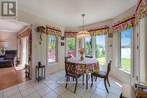 This is your chance to discover the Haliburton Highlands and live on a fabulous 5-lake chain. Moments from Haliburton Village, this year-round home has been meticulously maintained. Two beds and two baths on the main level plus a recently finished basement that contains another bedroom, dining/kitchenette area, rec room, third washroom and great storage/utility. All with a walkout to the lake. The extensive lawn leading to the lake gives the feeling of being on an estate. Sit on the deck and enjoy the view or head to the water and hang out on the dock or boat into Haliburton. Perennial gardens and stone walkways, a paved driveway and a spacious 2-car detached garage complete the package. Take the time to picture yourself in this beautiful home and imagine your new life on the lake. (id:64974)