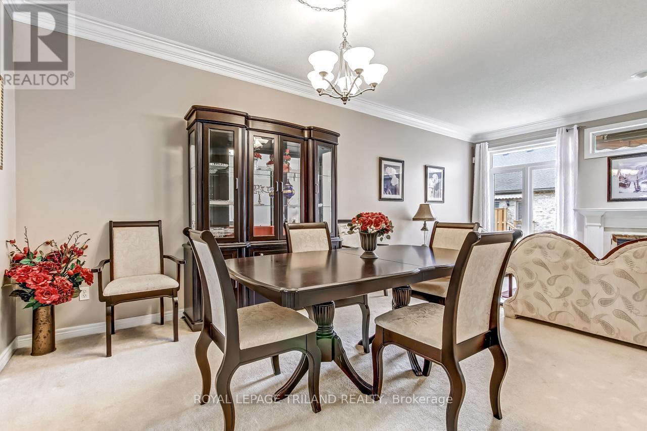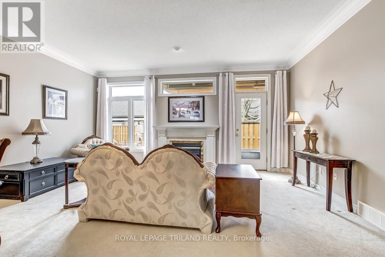 Welcome to Riverview Condos located in a desirable area of North East London. This one floor brick condo with a double attached garage is ideally positioned beside an end unit. Spacious grounds and a private rear deck with a powered awning. Only steps away to the Thames River walking trails and biking trails. Fabulous living space with 9ft ceilings on the main floor including a Living Room with a gas fireplace that is open to the entertaining sized dining room. Bright spacious eat-in kitchen and main floor laundry. The spacious master bedroom has a walk-in closet and a 3 piece ensuite bath. On the main floor there is also a four-piece bathroom and a large bedroom with a double closet. The lower level features a spacious family room, a bedroom with a double closet and a 4 piece bath. The unfinished area in the basement includes a cold cellar, a laundry tub and ample storage space. (id:64974)