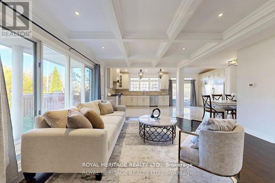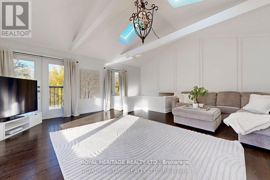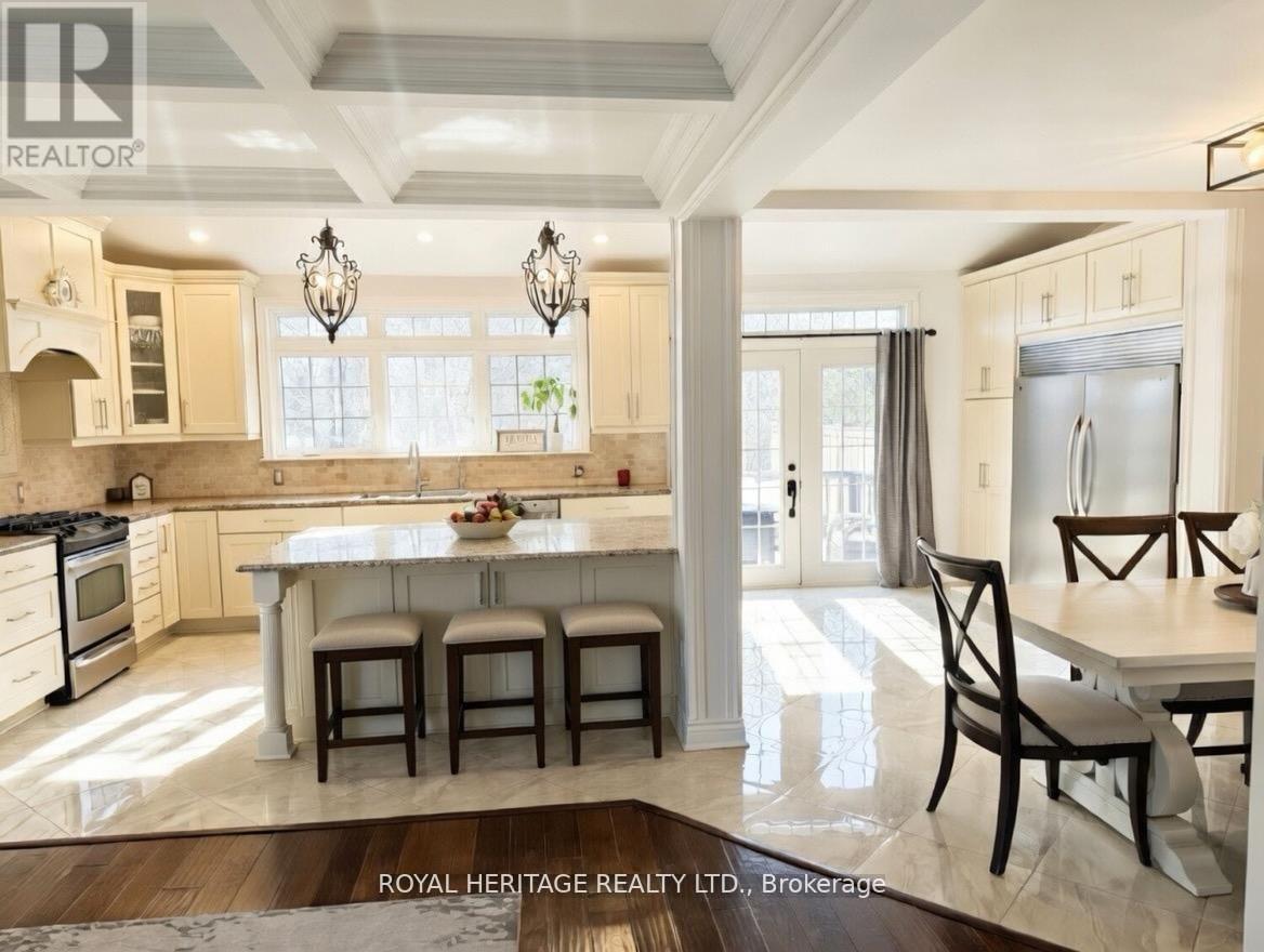 Experience refined living in one of Toronto's most prestigious waterfront communities. This exceptional, custom-built residence offers approximately 2,800 sq. ft. of impeccably designed living space, seamlessly blending elegance, comfort, and functionality.The open-concept main level is adorned with sophisticated coffered ceilings and anchored by a stunning chef-inspired kitchen, thoughtfully designed for both everyday living and upscale entertaining. A private main floor office and an expansive laundry room add convenience without compromising style.The show-stopping family room is a true architectural centerpiece, featuring a wood-burning fireplace, soaring vaulted ceilings, skylights, a picturesque bay window, and a charming Juliette balcony. Bathed in natural light, this space offers an inviting yet luxurious setting for both intimate moments and grand gatherings.A separate side entrance off the oversized driveway presents a rare opportunity for a seamless lower-level conversion-ideal for multigenerational living or income-generating potential. The fully finished lower level extends the home's versatility, offering two additional bedrooms, a spacious family room, and an oversized cold storage area.Step outside from the kitchen onto a private deck overlooking a tranquil, tree-lined backdrop, creating a serene outdoor retreat. The second level unveils a covered terrace-an uncommon and highly desirable feature that elevates the home's indoor-outdoor living experience.Perfectly situated, this residence offers effortless access to scenic parks, ravine trails, and the waterfront, along with TTC and GO Transit, Highway 401, top-tier schools, the Pan Am Sports Centre, Rouge National Urban Park, the Toronto Zoo, and a swift commute to downtown Toronto. Approx. $300K spent in upgrades. Some of which include: the roof, skylights, soffits, insulation (2015), windows (2016), A/C (2021), ensuite ( 2024),and insulated garage doors(2025). OPEN HOUSE SUN Apr. 19th 2-4pm (id:64974)