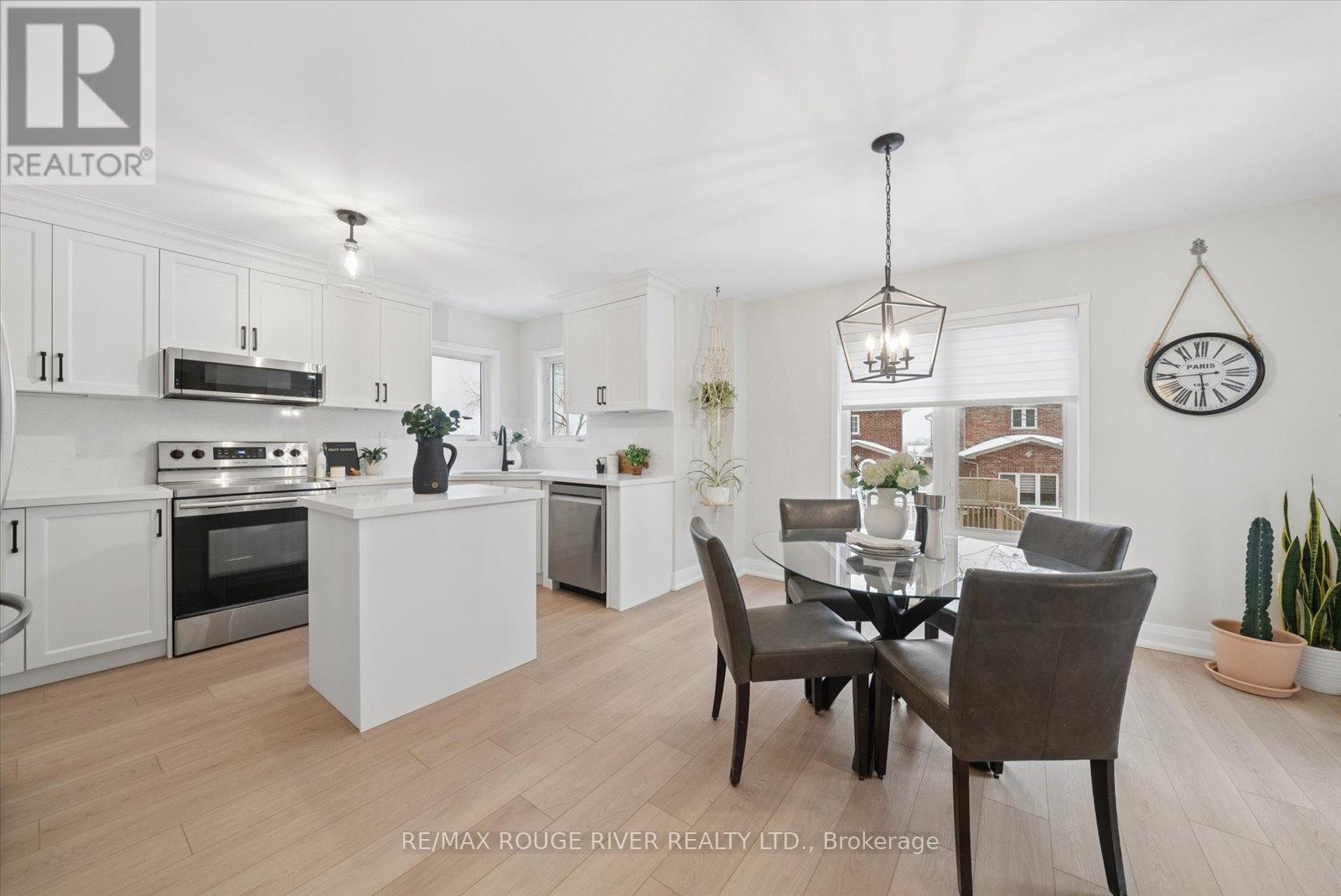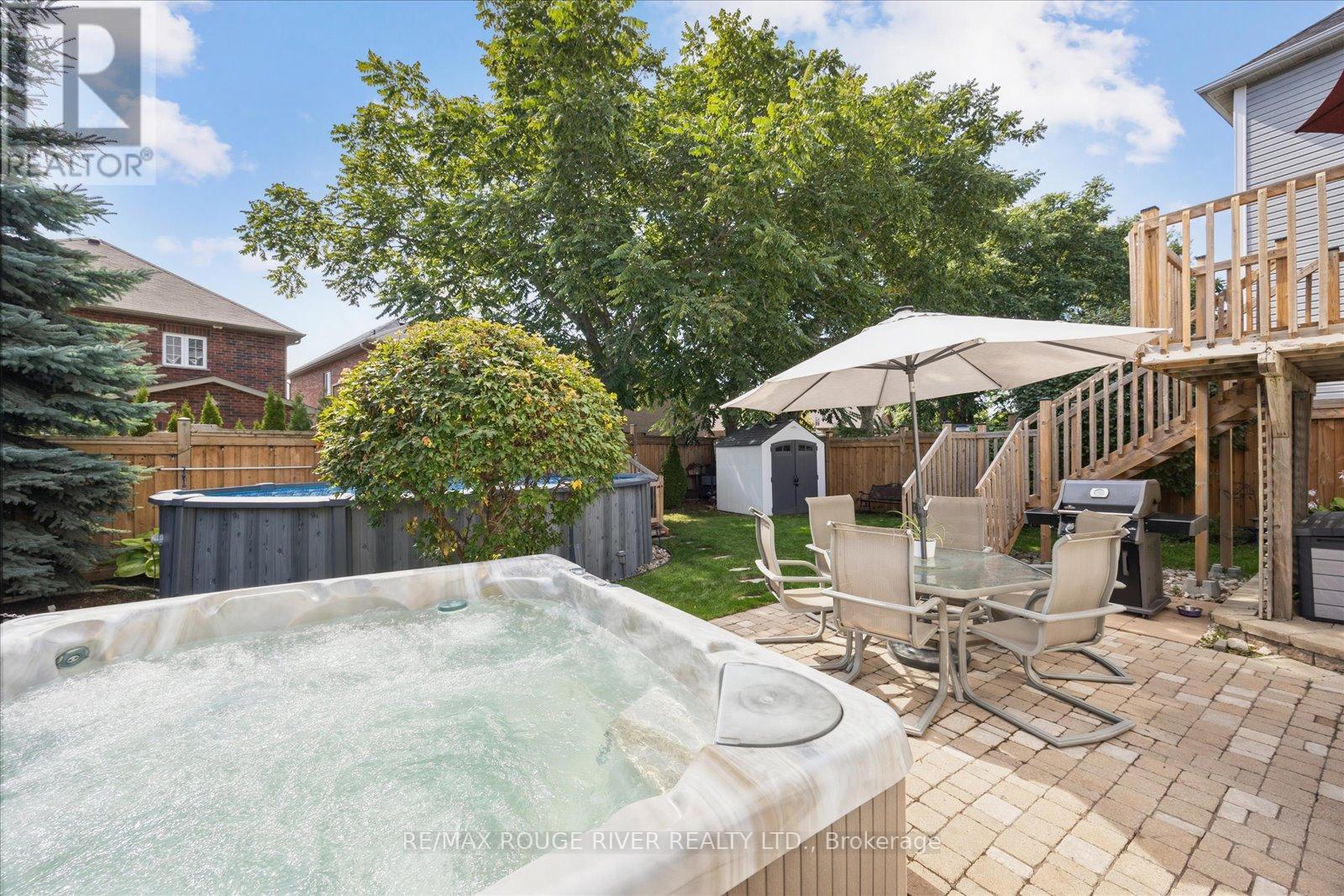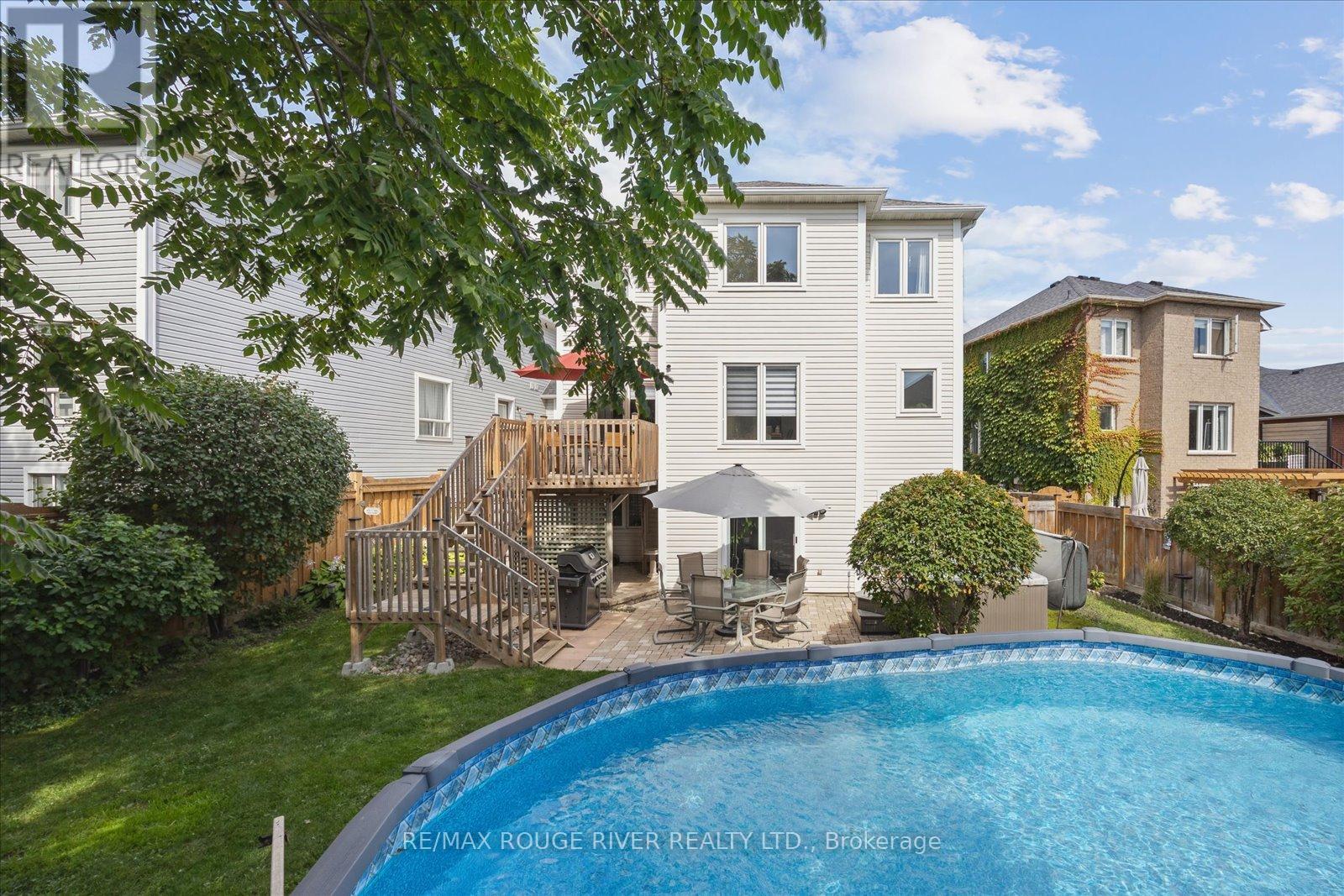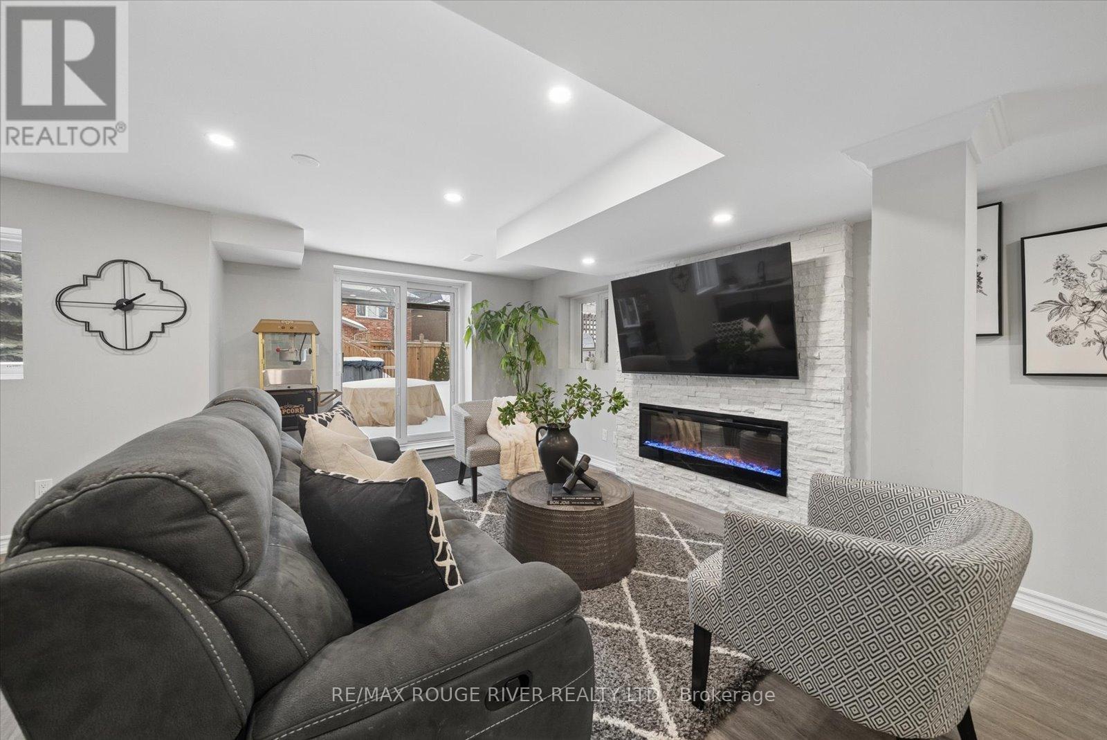 ***RARE WALK-OUT & PREMIUM PIE LOT **** This fabulous home has been tastefully renovated with a brand new designer kitchen (2025) complemented by a new dishwasher, fridge, and microwave/hood fan. Elegant luxury vinyl plank flooring flows throughout the main level, delivering both sophisticated style and everyday durability. The professionally finished modern WALK-OUT basement with an IN-LAW SUITE complete with a kitchen, Rec room, bedroom + office/den, electric fireplace and rough-in for laundry - ideal for extended family, guests, or independent living. Step outside to your own private retreat - a premium pie-shaped lot offering exceptional outdoor living. Enjoy the newer heated salt-water above-ground pool and unwind year-round in the Beachcomber hot tub - a setting designed for both relaxation and entertaining. Perfectly positioned for convenience, this home offers effortless access to Highways 407and 412 (free from Brock Rd Pickering to the east) for commuters, while top-rated schools remain within comfortable walking distance - combining luxury, lifestyle, and location in one remarkable offering. (id:64974)