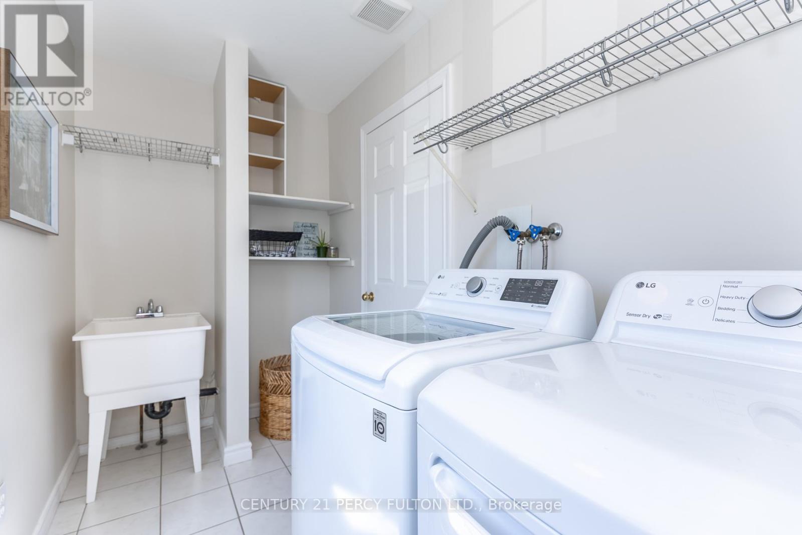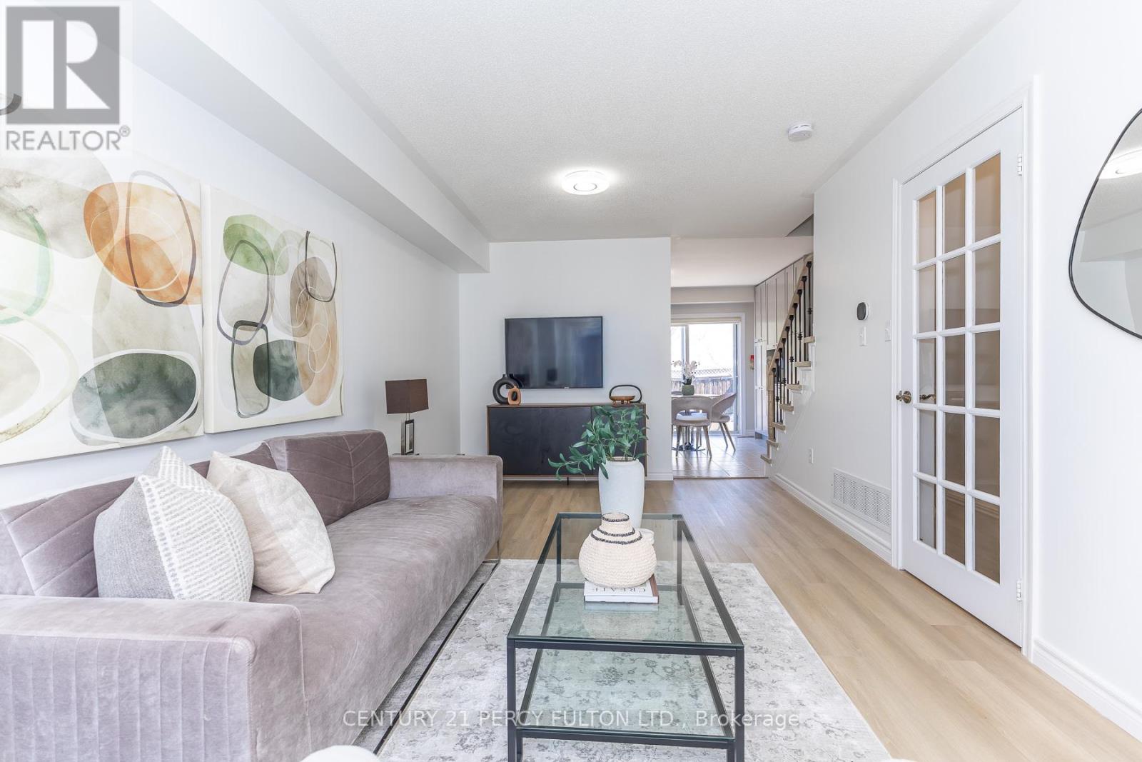 Welcome to 47 Harrongate Pl. This freehold townhome (no maintenance fees) located in North Whitby offers a pride of ownership and functionality. 3 bedrooms, 2 full baths, second floor laundry, finished basement with 4pc washroom and office space. Access to backyard tru the garage. Private backyard with no neighbors behind. Master bedroom offer semi ensuite. S/S appliances in kitchen, quartz counters, close to all amenities, walk to schools, park, transit, shopping, rec centre, close proximity to HWY 412, HWY 407. Recent upgrades include new flooring on main, second floor, stairs with wrought iron nails. Shows extremely well. (id:64974)