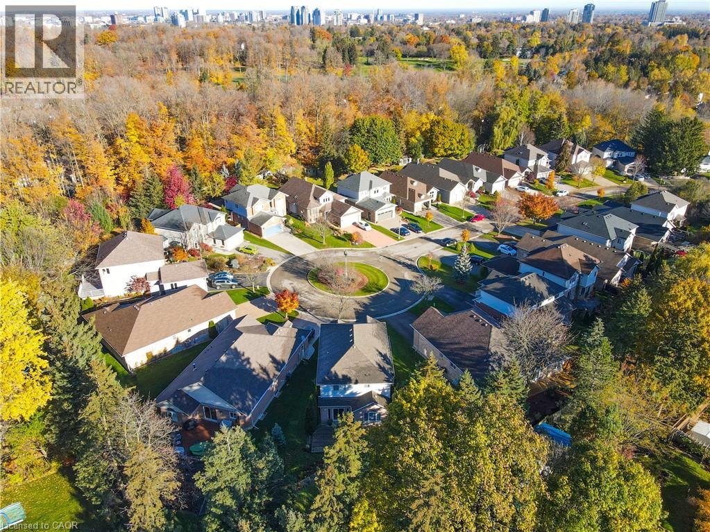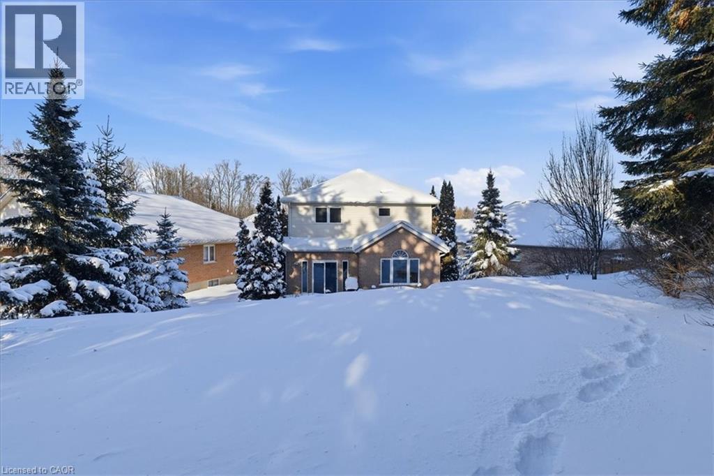 Tucked away on a quiet, child-safe cul-de-sac in Kitchener’s PRESTIGIOUS WESTMOUNT ENCLAVE, this elegant CUSTOM-BUILT residence offers timeless style, modern comfort, and a coveted location just steps from Westmount Golf & Country Club. Set on a private, just under a QUARTER-ACRE PIE-SHAPED LOT, the property is wrapped in lush, mature trees and enhanced by professional landscaping, creating a spectacular treed oasis ideal for outdoor living. A 2-TIER DECK sets the stage for summer entertaining, barbecues, and peaceful evenings surrounded by nature. The yard also features an IN-GROUND IRRIGATION SYSTEM and a ROUGH-IN FOR A HOT TUB, oversized shed for storage, adding to the functionality and future potential of the space. Inside, over 2,800 SQ FT of thoughtfully designed living space features soaring VAULTED CEILINGS, a striking 22-FOOT KITCHEN with island seating for six, and expansive formal living and dining rooms, both finished with RICH HARDWOOD FLOORING — perfect for hosting and entertaining in style. Upstairs, a warm and inviting FAMILY ROOM WITH VAULTED CEILINGS and hardwood floors leads to three generously sized bedrooms. The PRIMARY SUITE is a standout, offering DOUBLE CLOSETS and a spacious, fully renovated SPA-LIKE ENSUITE — a peaceful retreat with the space, natural light, and luxury finishes today’s buyers expect. A spacious MAIN BATHROOM for kids features a DEEP SOAKER TUB, blending function and comfort for busy family life. The FULLY FINISHED LOWER LEVEL adds even more versatility, featuring a RECREATION SPACE perfect as a kids’ play area, home gym, or teen lounge, along with a PRIVATE BEDROOM & FULL 3 PC BATHROOM ideal for a teenager, guest suite, or extended family. Discreetly luxurious and impeccably maintained, this executive home seamlessly blends LOCATION, LIFESTYLE, AND LAYOUT in one of Kitchener’s most sought-after CUSTOM HOME COMMUNITIES. some photos virtually staged (id:64974)