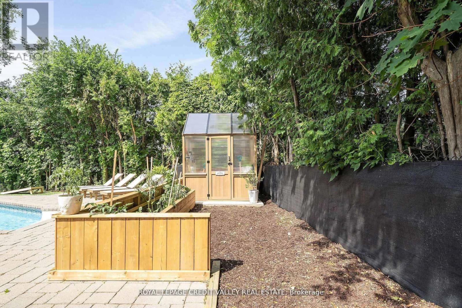 This spectacular property is located in one of the most sought-after neighborhood in Caledon East. Prepare to be amazed by the spaciousness and layout of this beautiful family home. It is totally updated throughout with very attractive finishes. Main level features an updated kitchen with upgraded appliances and hardware, a coffee station, GAS stove, and overlooks the beautiful backyard oasis. Main also has a very large living / dining rooms with pot lights, built-in electric fireplace and large windows for extra brightness. Upper level has three generous sized bedrooms. All bedrooms feature closets, wood floors and pot lights. Lower level is very large and bright with wood flooring, pot lights and walk-out to yard. Basement is also finished and is a perfect Play place for young kids or a hangout spot. Enjoy Staycations in your own backyard retreat, complete with a Heated Salt water Inground pool, hot tub, a green house and plenty of privacy trees. There is 240v in the garage. Parking for 6 on the driveway. New washer/ dryer. Furnace /AC 2019, Pool Pump, Mechanicals & Heater 2023, liner 2020. Come and see this beautiful home today! (id:64974)