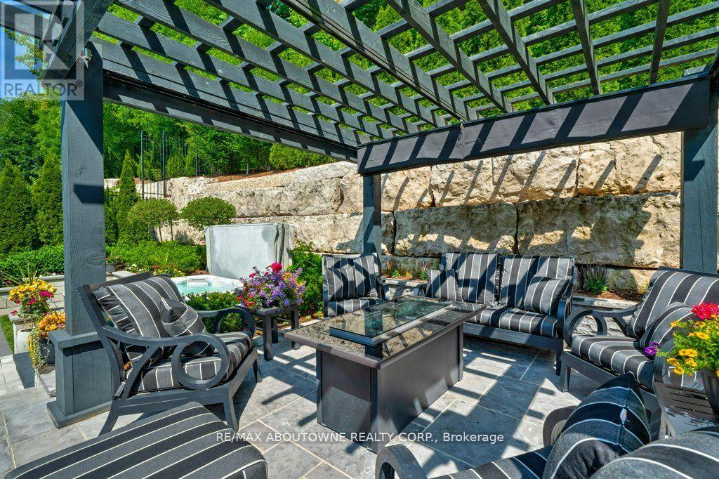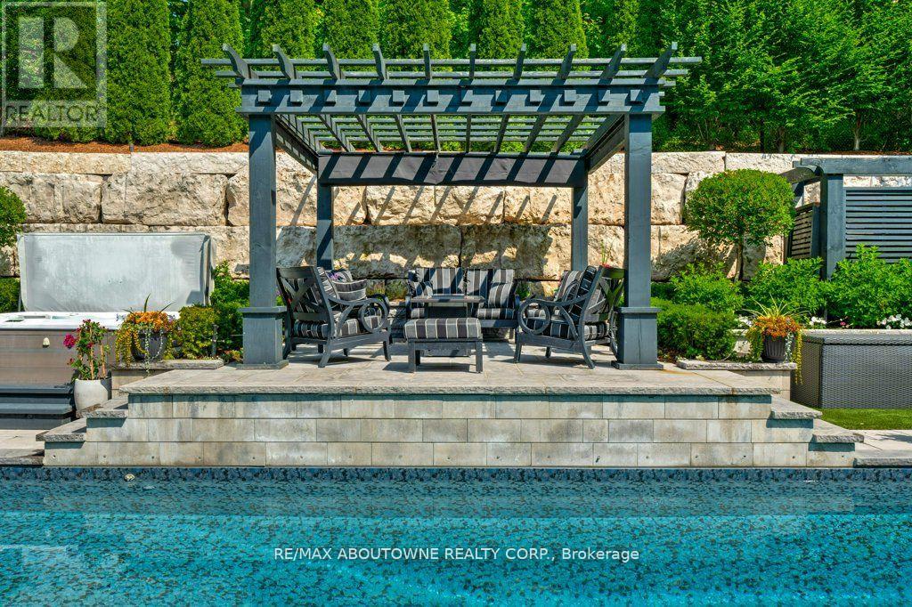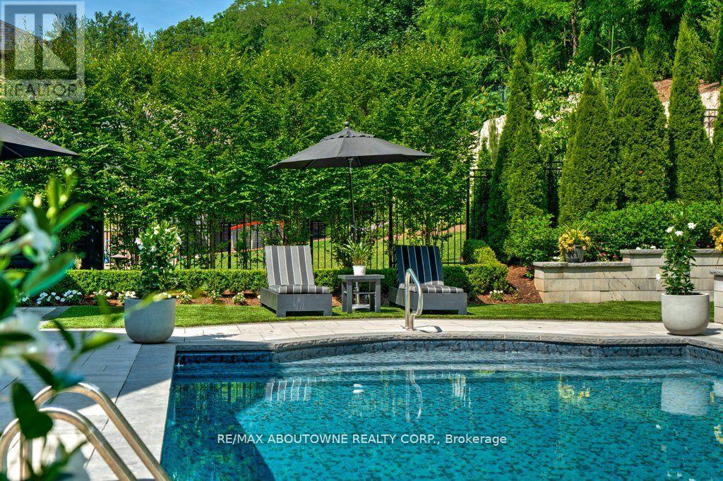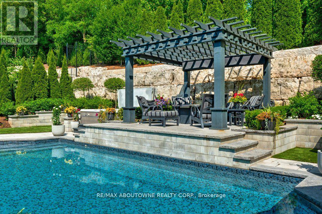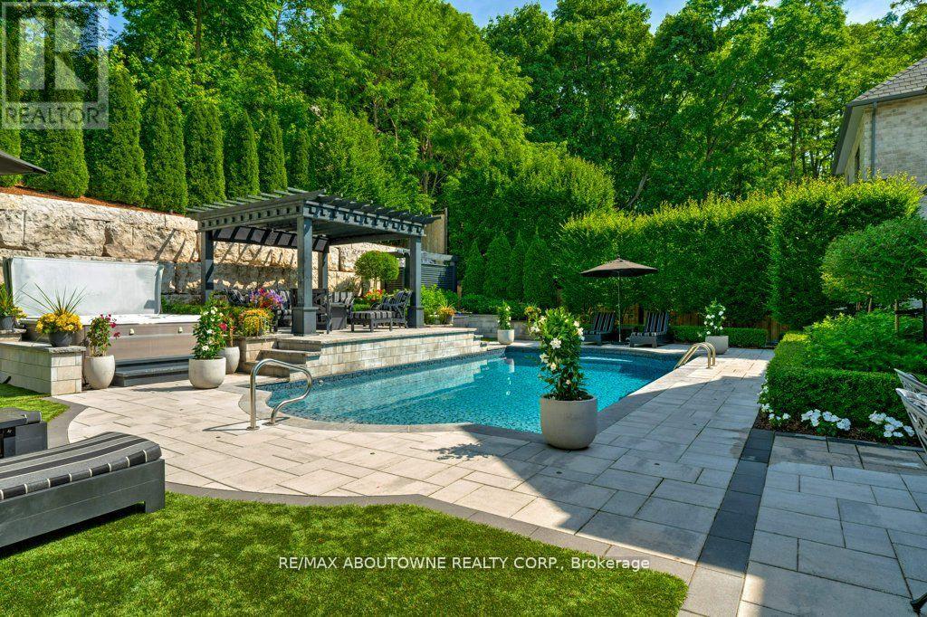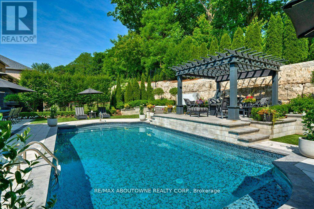 Welcome to 47 Legacy Lane a true gem nestled in the heart of Ancaster within an exclusive, private gated community. This stunning home is the perfect blend of luxury, craftsmanship, and functionality, offering a thoughtfully curated lifestyle both inside and out. From the moment you arrive, the quality of this home is unmistakable. The exterior has been transformed into a private resort-like oasis featuring concrete stone inlays, a hot tub, a pergola with a fire table, a fully equipped outdoor kitchen with built-in BBQ, and a breathtaking saltwater pool. Surrounded by mature trees, professional landscaping, perennial gardens, artificial turf, and a built-in irrigation system, the grounds offer beauty and ease of maintenance year-round. Inside, the home continues to impress with oversized doors and trim, hardwood flooring throughout, and 10-ft ceiling's that enhance the sense of space and elegance. The open-concept layout includes grand principal rooms, a dramatic two-storey family room, and a dreamy chefs kitchen perfect for entertaining. The MAIN FLOOR PRIMARY SUITE offers comfort and privacy, while the additional four bedroomsand3.5 bathrooms provide ample space for family and guests. The expansive lower level features above-grade windows and is brimming with potential ideal for creating a custom gym, media room, or in-law suite. Perfectly located near conservation areas, walking trails, golf courses, top-rated schools, shops, and major highways, this is a rare opportunity to own a turnkey luxury home in one of Ancaster's most coveted communities. Move in and start enjoying everything this exceptional property has to offer. (id:64974)